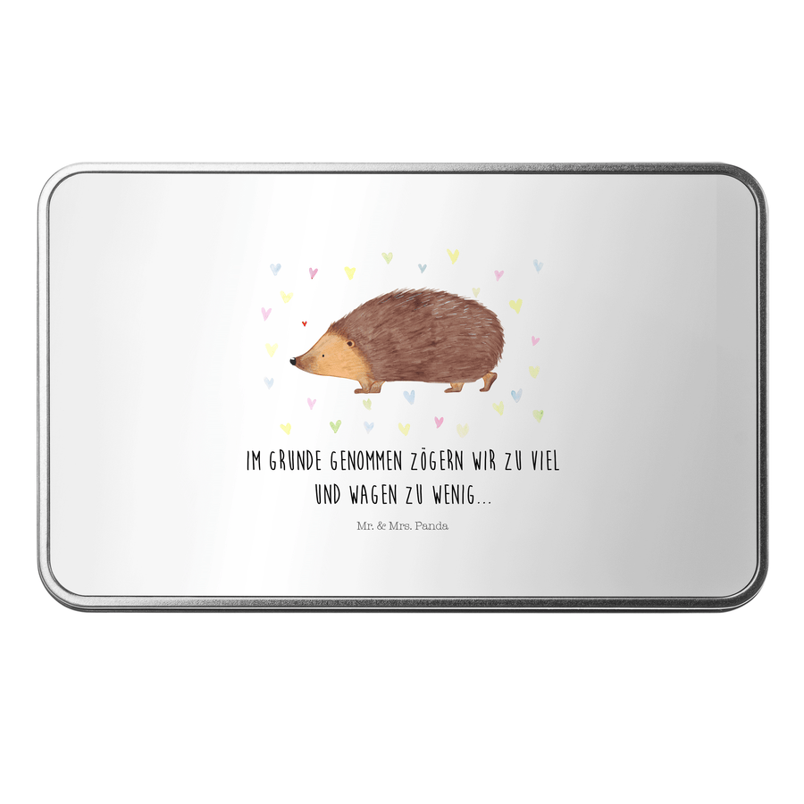 Metalldose rechteckig Igel Herzen - mit Spruch - Weiß