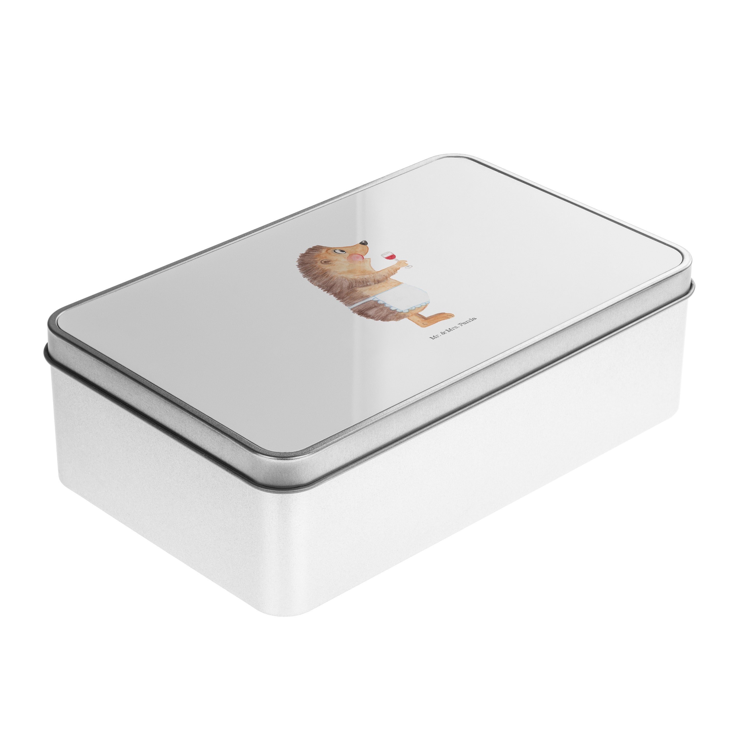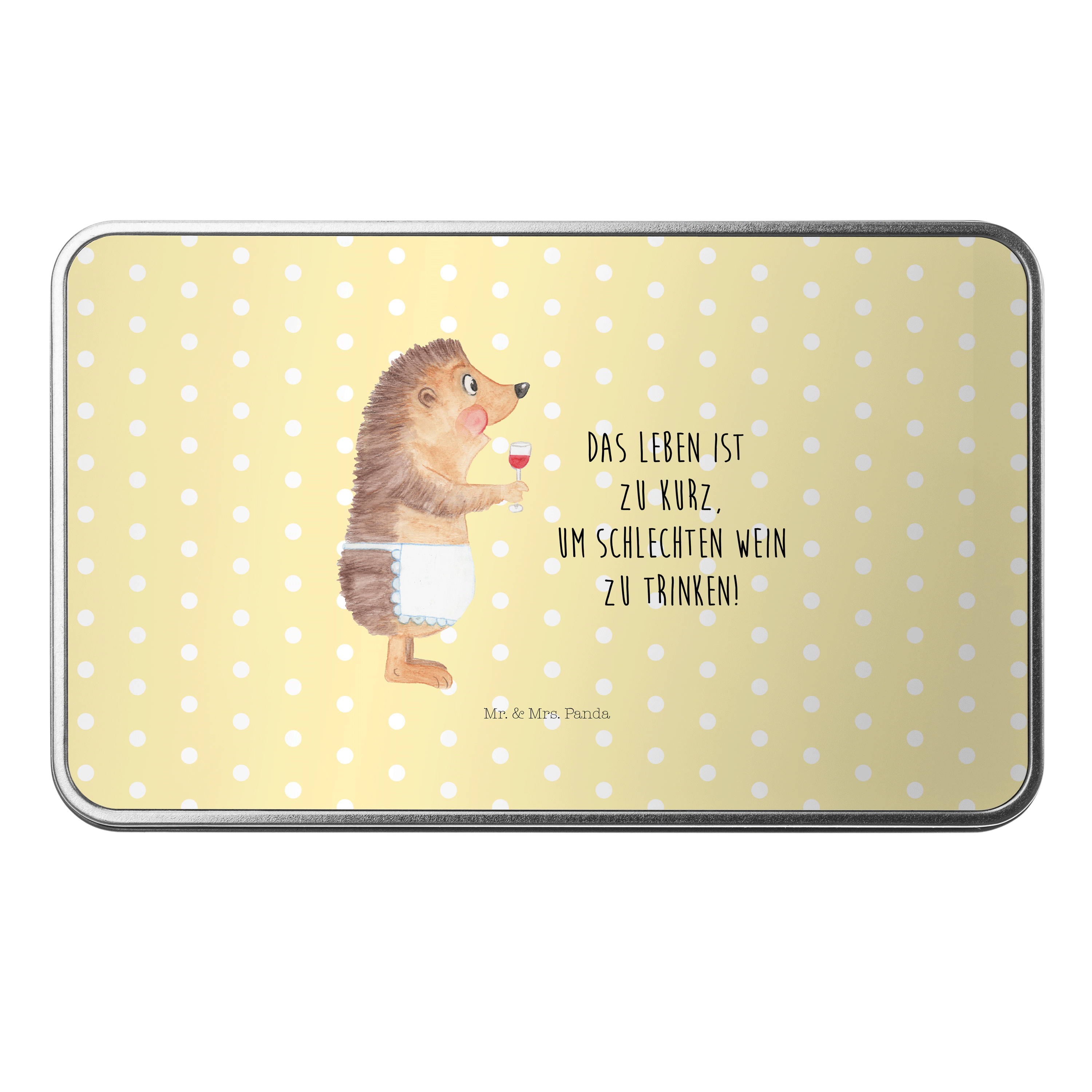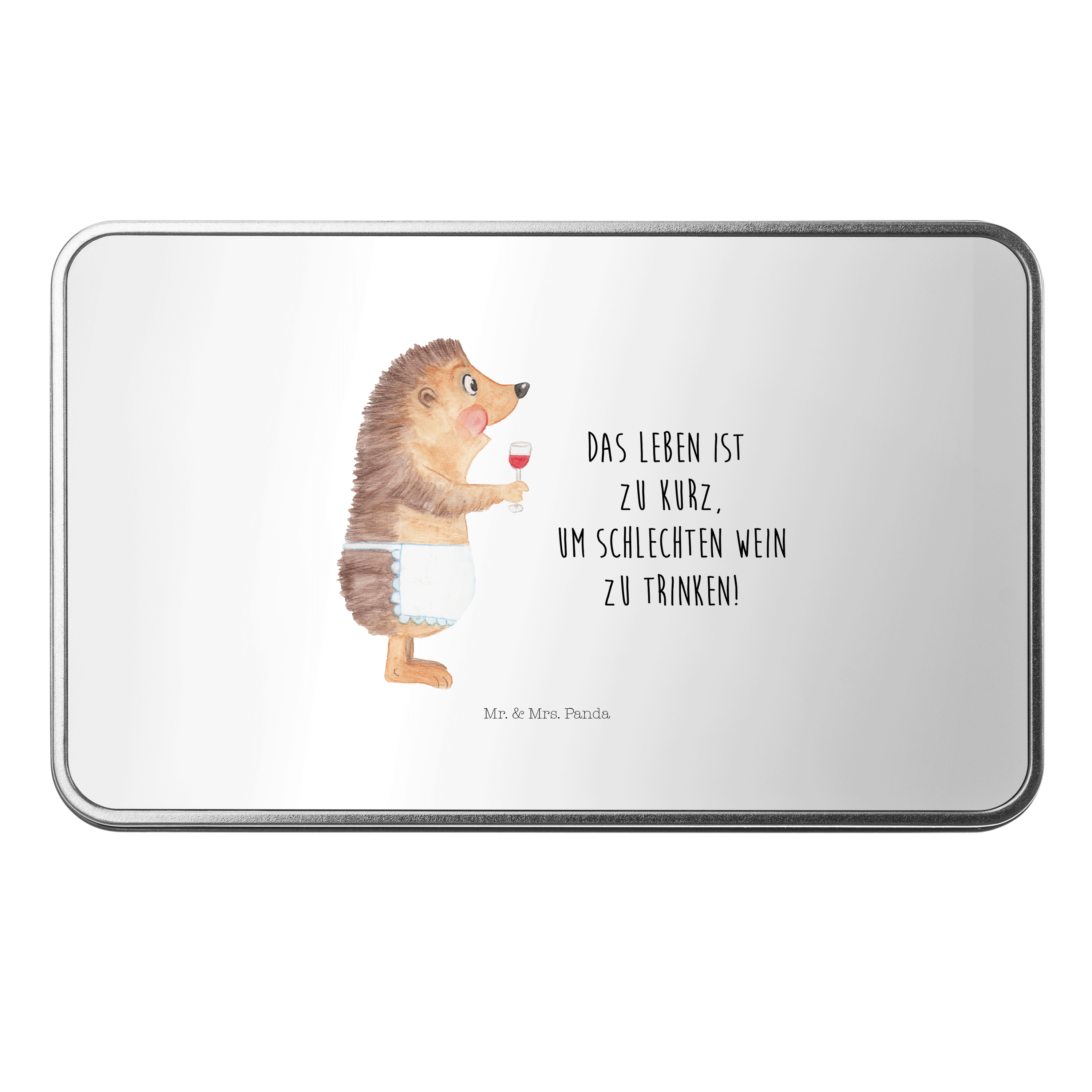 Metalldose rechteckig Igel mit Wein - mit Spruch - Weiß