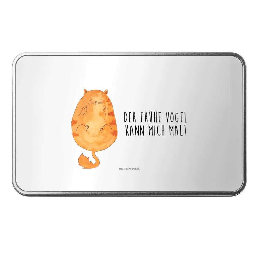 Metalldose rechteckig Katze Frühaufsteher - mit Spruch - Weiß