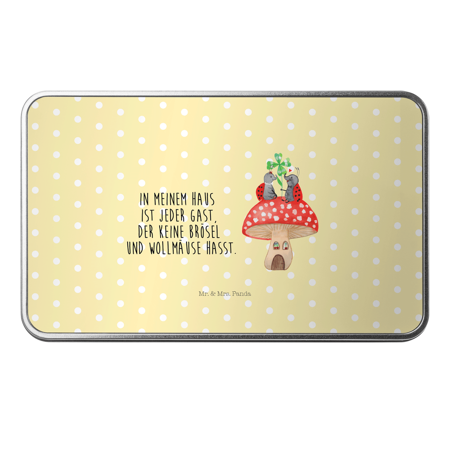 Metalldose rechteckig Marienkäfer Paar Fliegenpilz - mit Spruch - Gelb Pastell