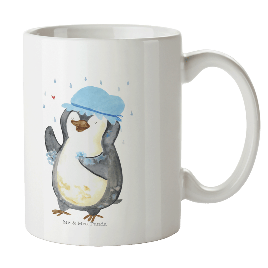 Tasse Pinguin duscht - ohne Spruch - Weiß