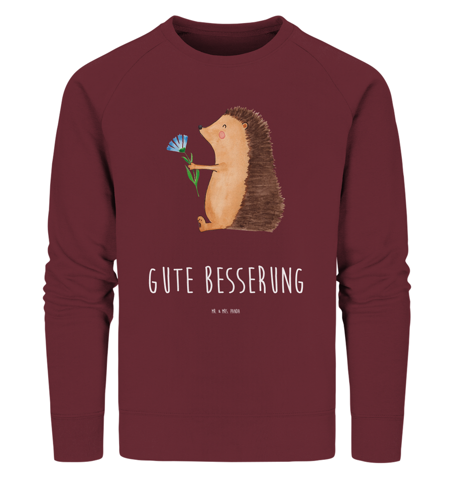 Organic Pullover Igel mit Blume - Größe M - mit Spruch - Burgundy