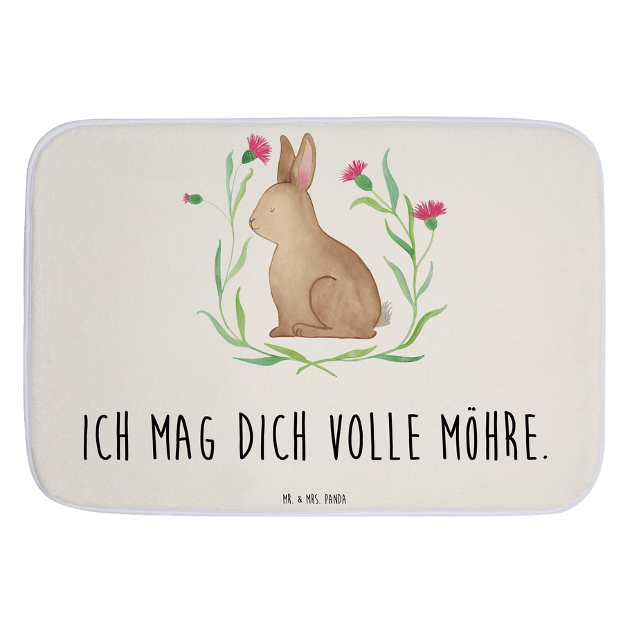 Badvorleger Hase sitzend - mit Spruch - Weiß