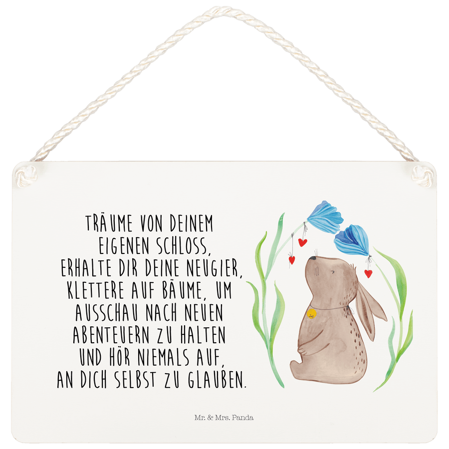 Deko Schild Hase Blume - DIN A5 - mit Spruch - Weiß