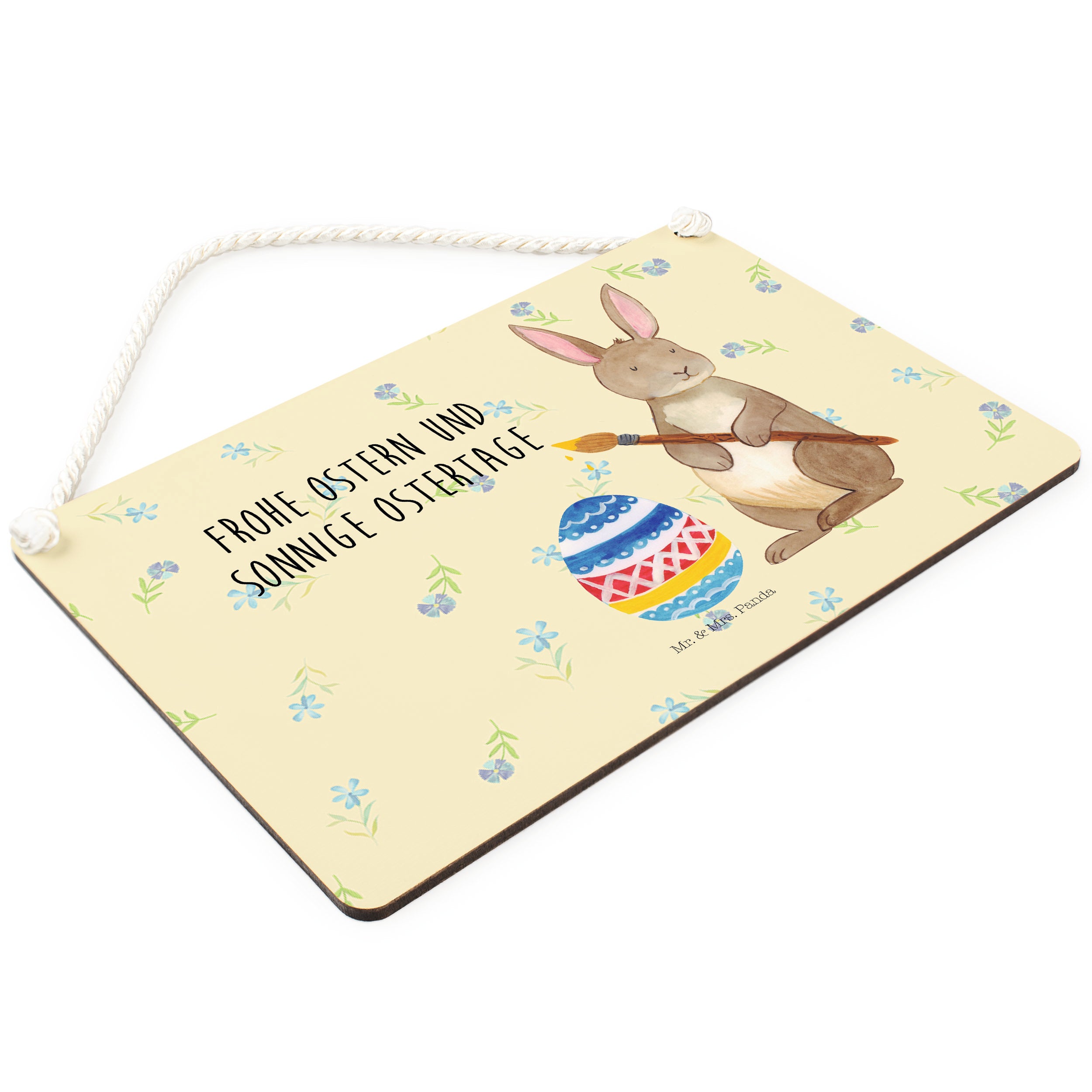Deko Schild Hase Eiermalen - mit Spruch - Blumig