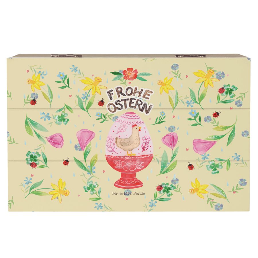 Holzkiste Frohe Ostern Ei - Blumig - 19 x 12 cm