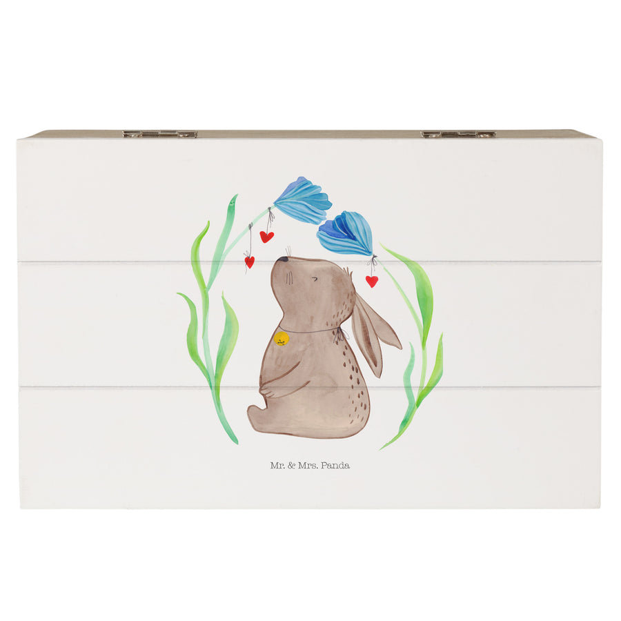 Holzkiste Hase Blume - 19 x 12 cm - ohne Spruch - Weiß