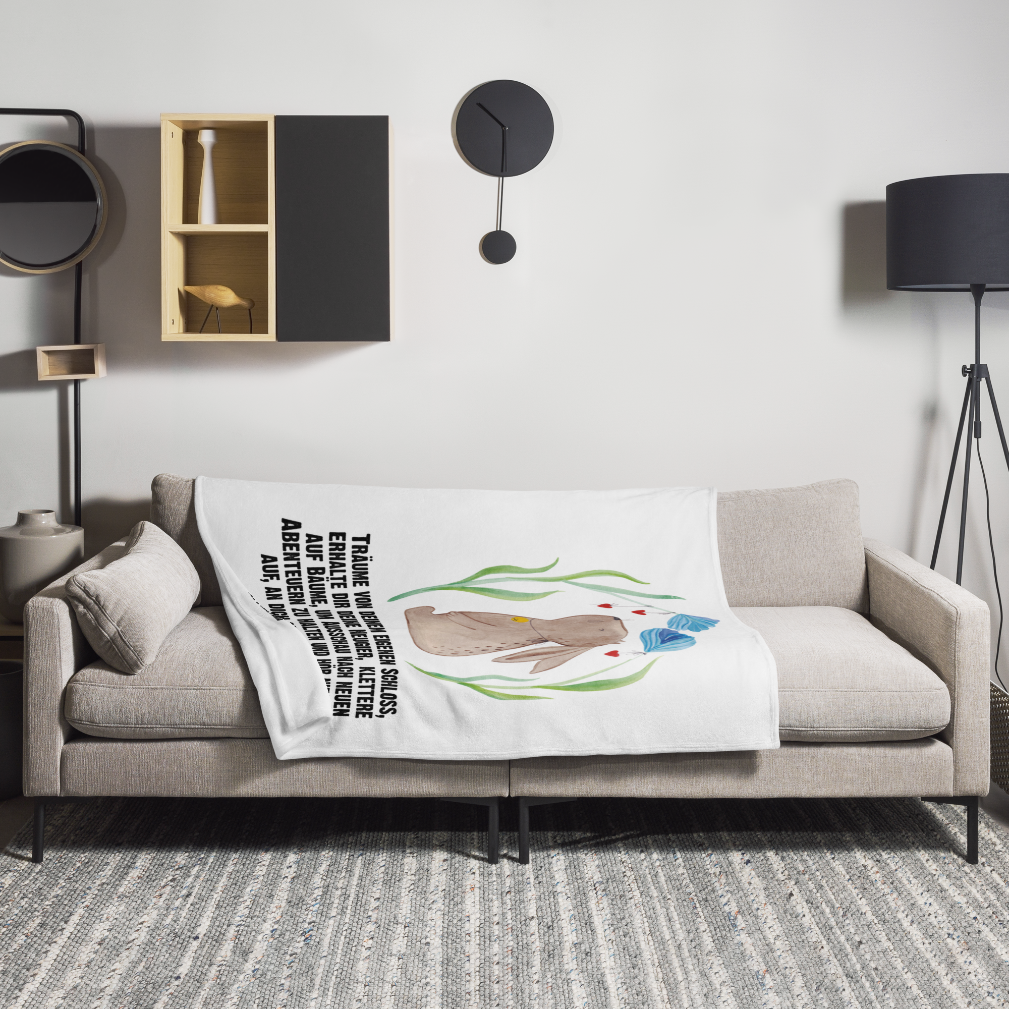 Die super flauschige Kuscheldecke von Mr. & Mrs. Panda, ist ideal für kalte Monate und Tage. Die Größe der Kuscheldecke beträgt 127 x 153 cm und ist somit perfekt, um es sich im Wohnzimmer auf dem Sofa oder im Schlafzimmer auf dem Bett gemütlich zu machen.Die Sofadecke besteht aus Kuschel Fleece Mikrofaser und ist extrem flauschig. Die fellartige Kuscheldecke schmiegt sich herrlich weich an deinen Körper und wärmt außerordentlich gut, so wirst du sicherlich nicht frieren. Die Decke zeichnet sich durch ihre hochwertige und strapazierfähige Qualität aus. Alternativ kannst du die Decke auch 140x200 cm kaufen. Sie eignet sich auch optimal als Tagesdecke für Kinder und Erwachsene.