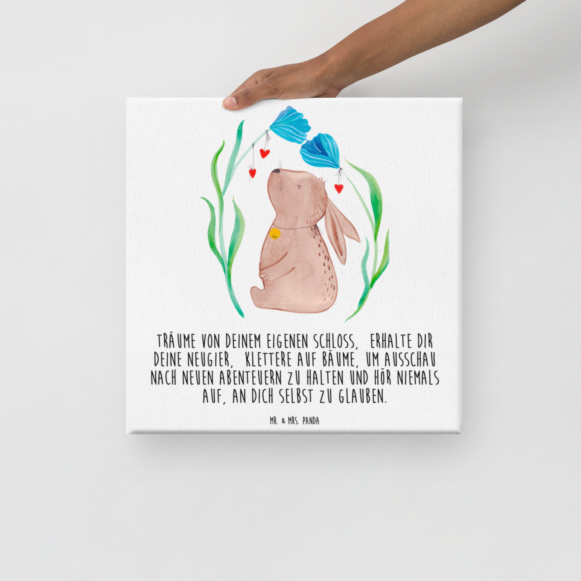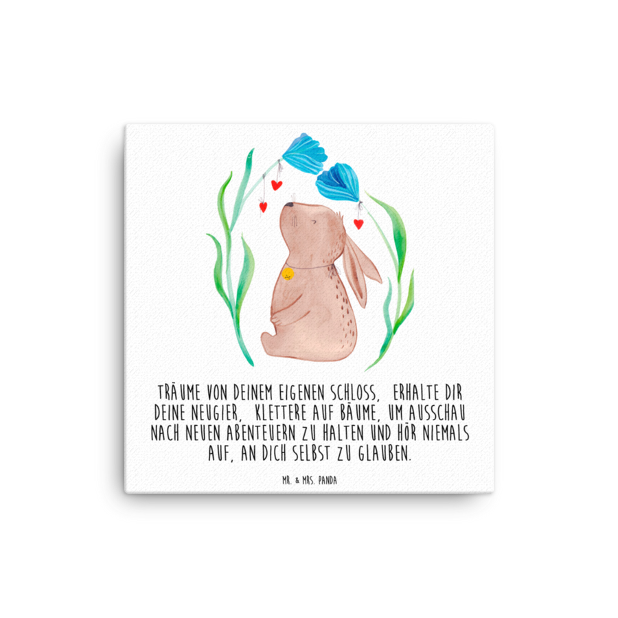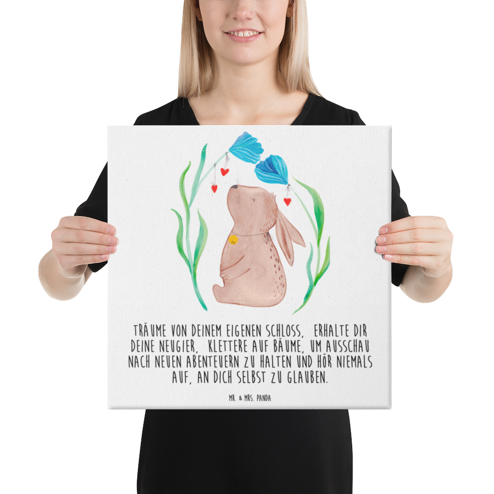 Glöckchenklingelnd hüpft Hase Blume durch die bunten Blumenwiesen. Ob zum Frühlingserwachen oder als Oster-Dekoration - mit ihm holst du dir eine fröhliche Stimmung in dein Zuhause. Das Motiv von Mr. & Mrs. Panda inspiriert dich bei jeder Betrachtung dazu, deine unbeschwerte und verspielte Seite zu zeigen.