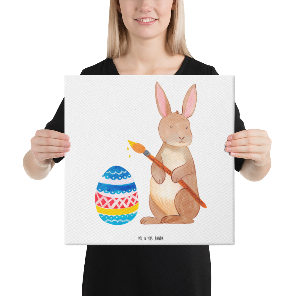 Leinwand Bild Hase Eiermalen - mit Spruch