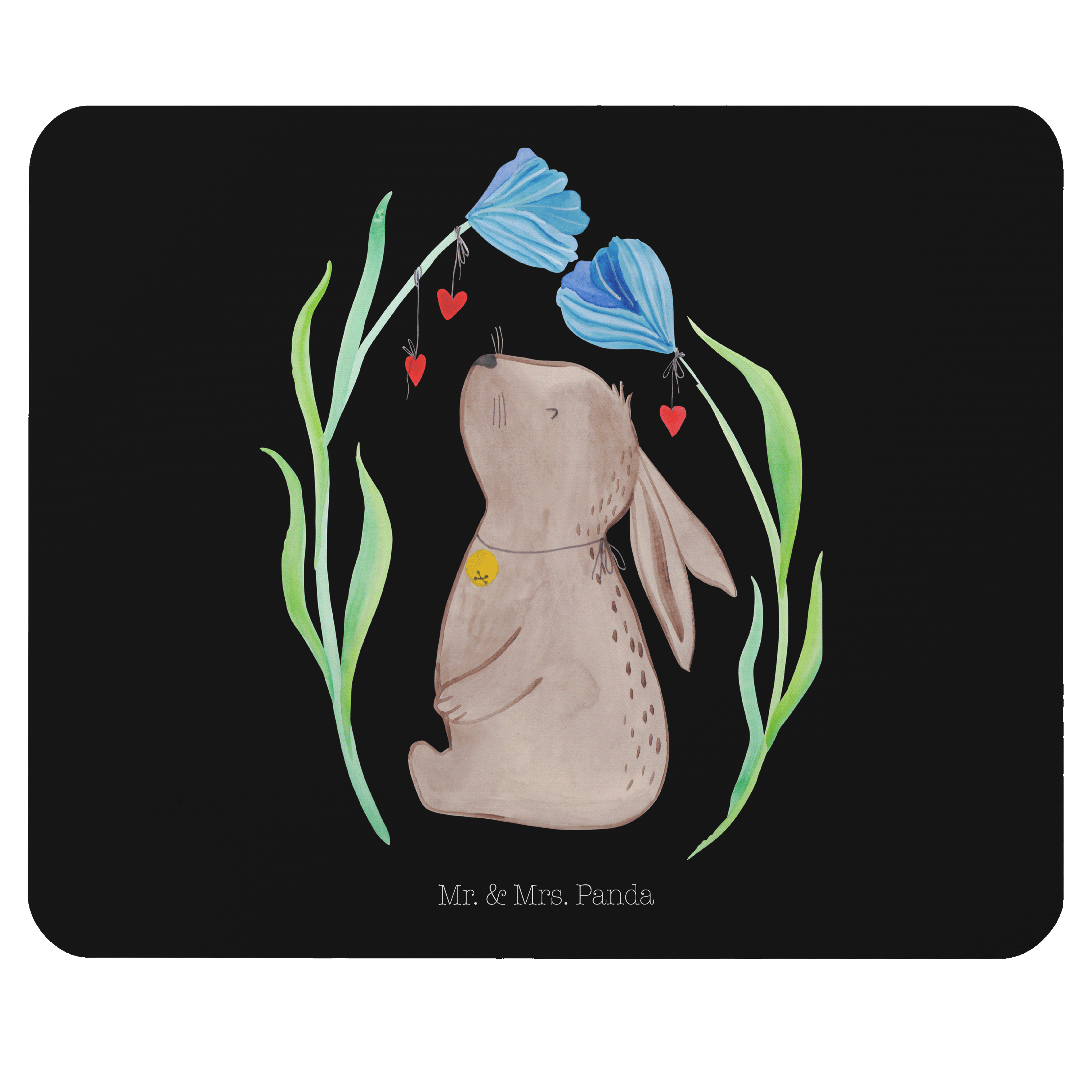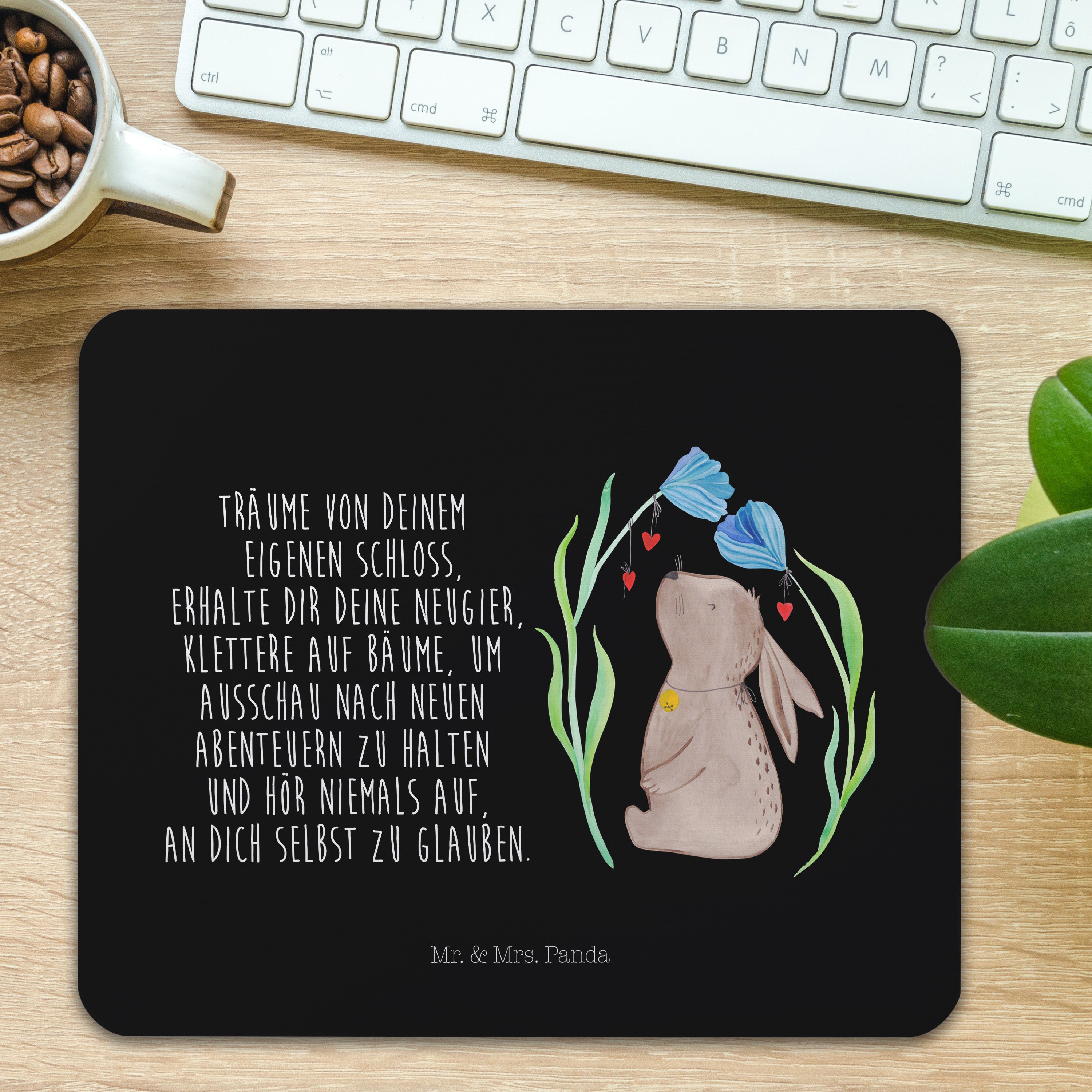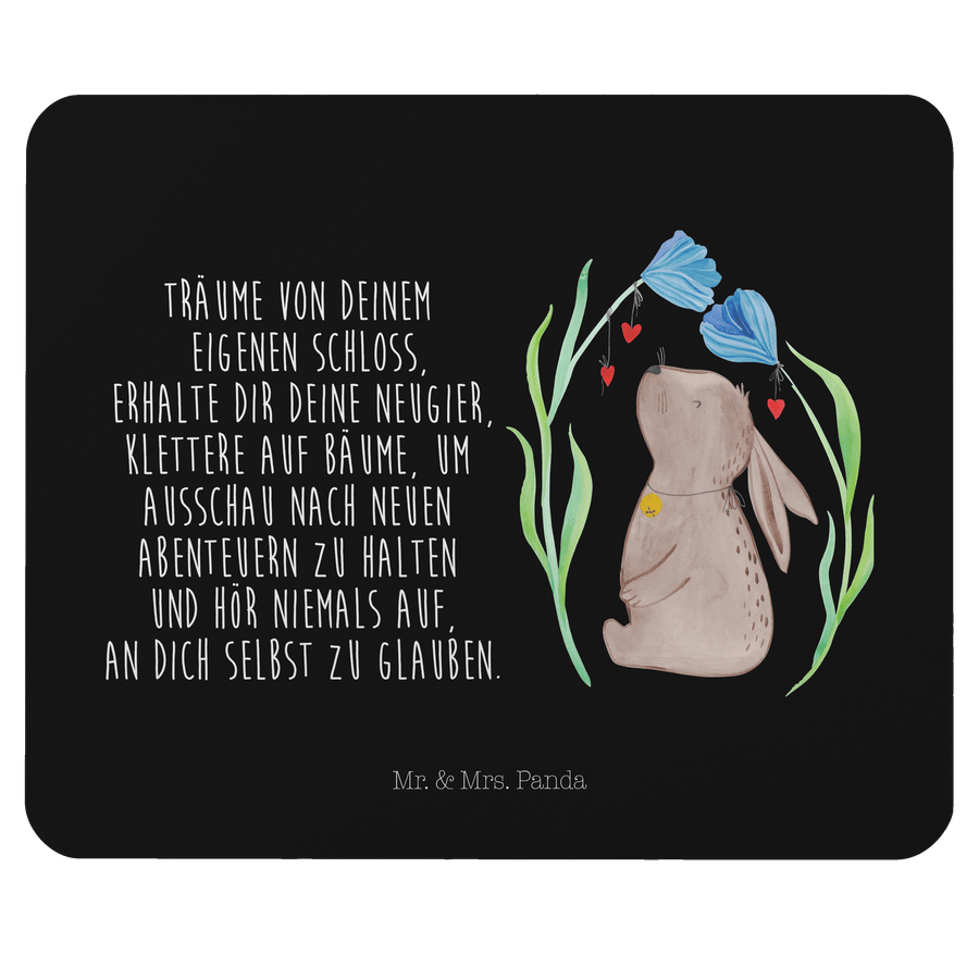 Mauspad Hase Blume - mit Spruch - Schwarz