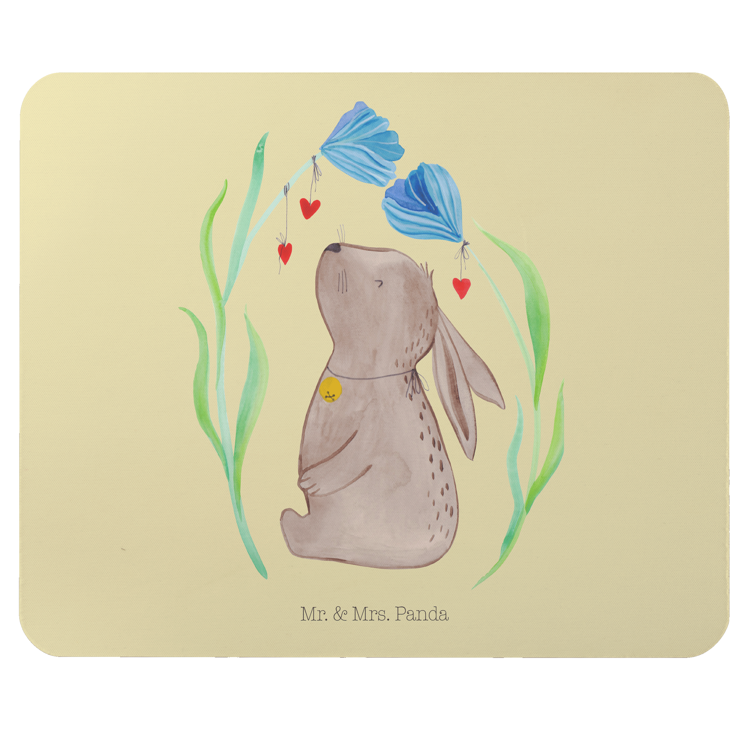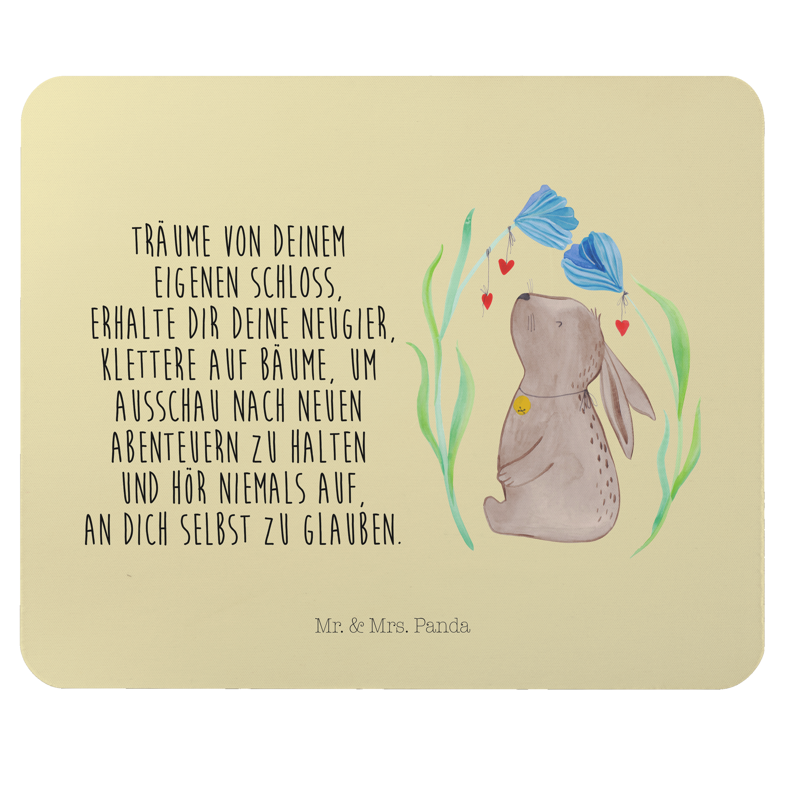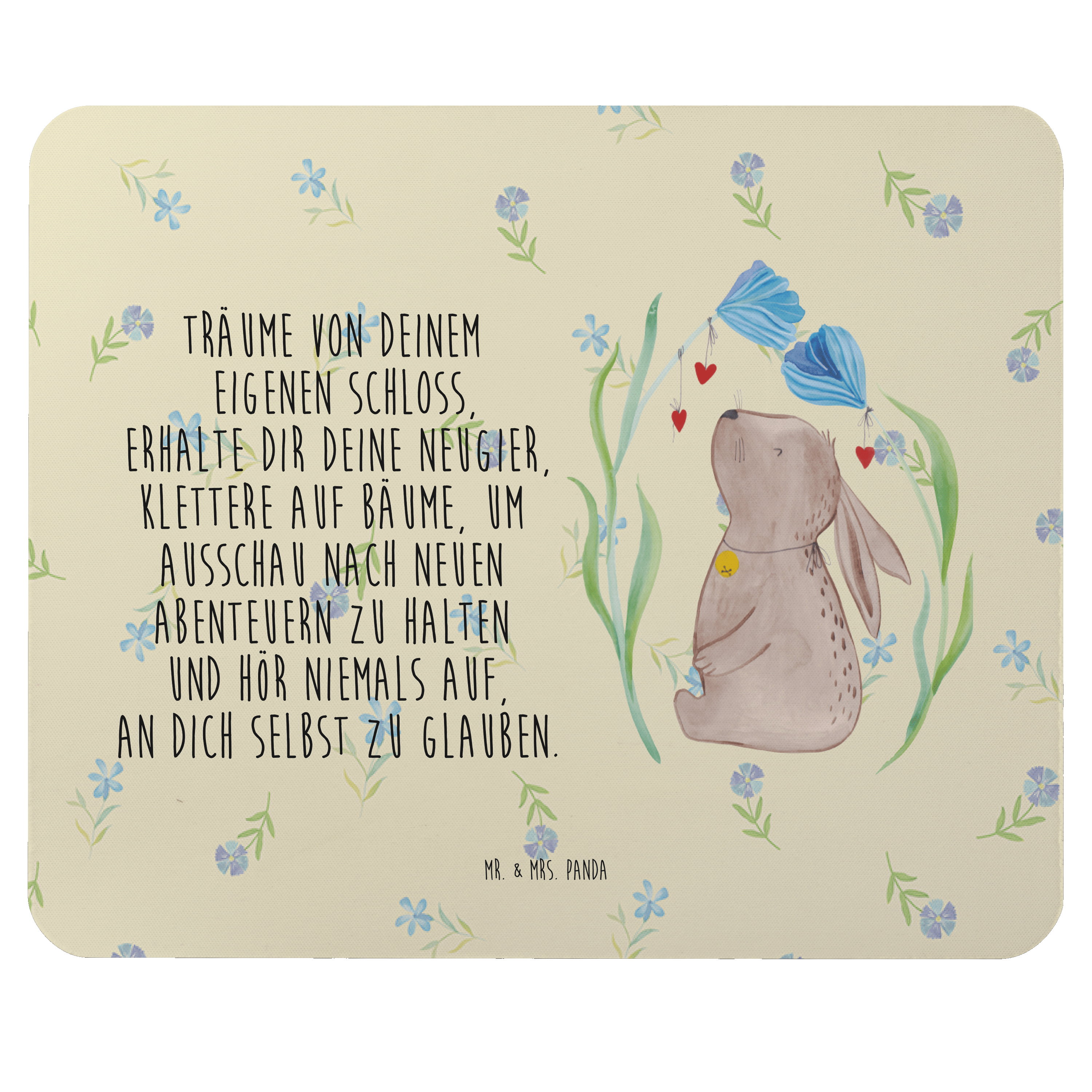 Mauspad Hase Blume - mit Spruch - Schwarz