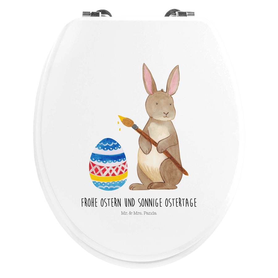 Motiv WC Sitz Hase Eiermalen - mit Spruch - Weiß