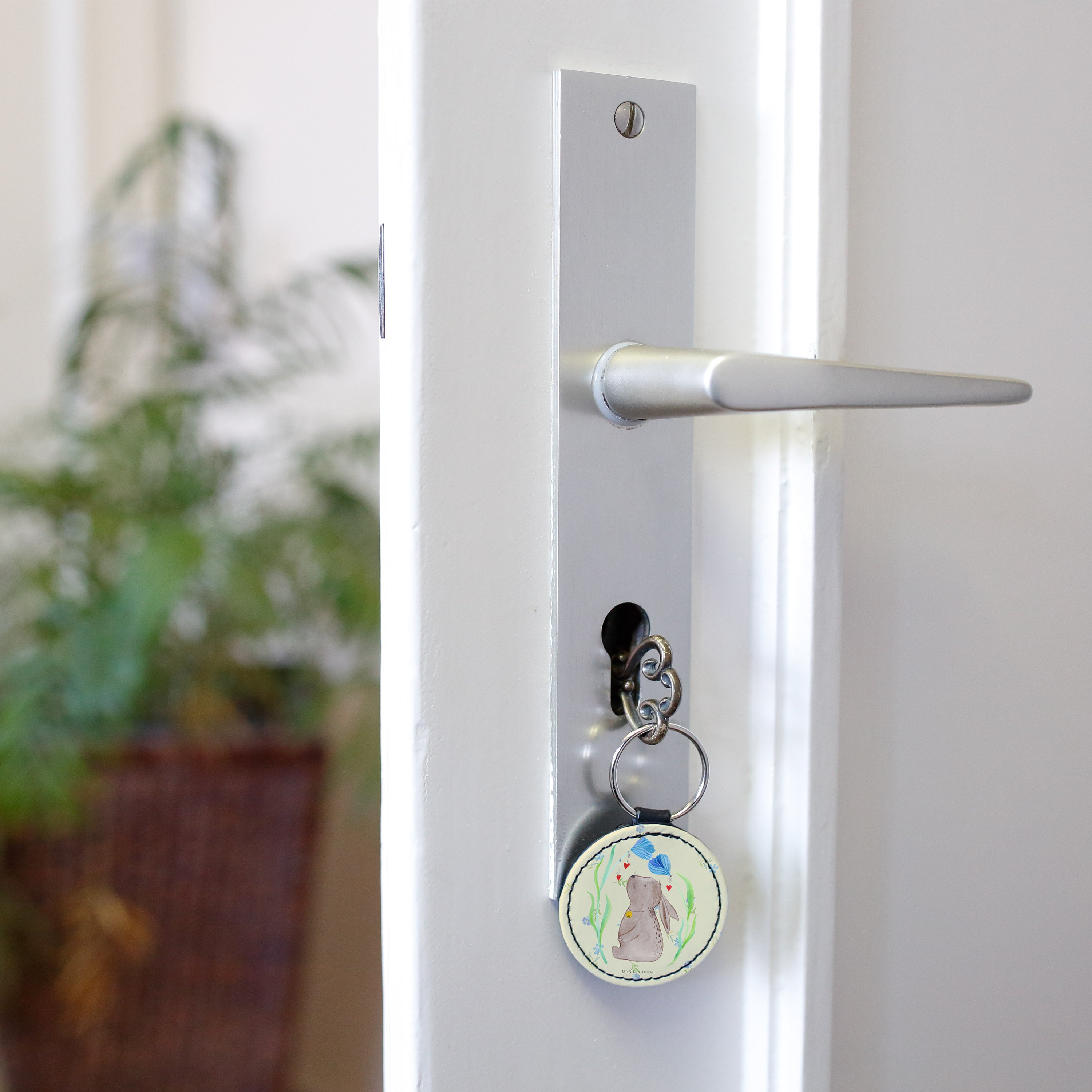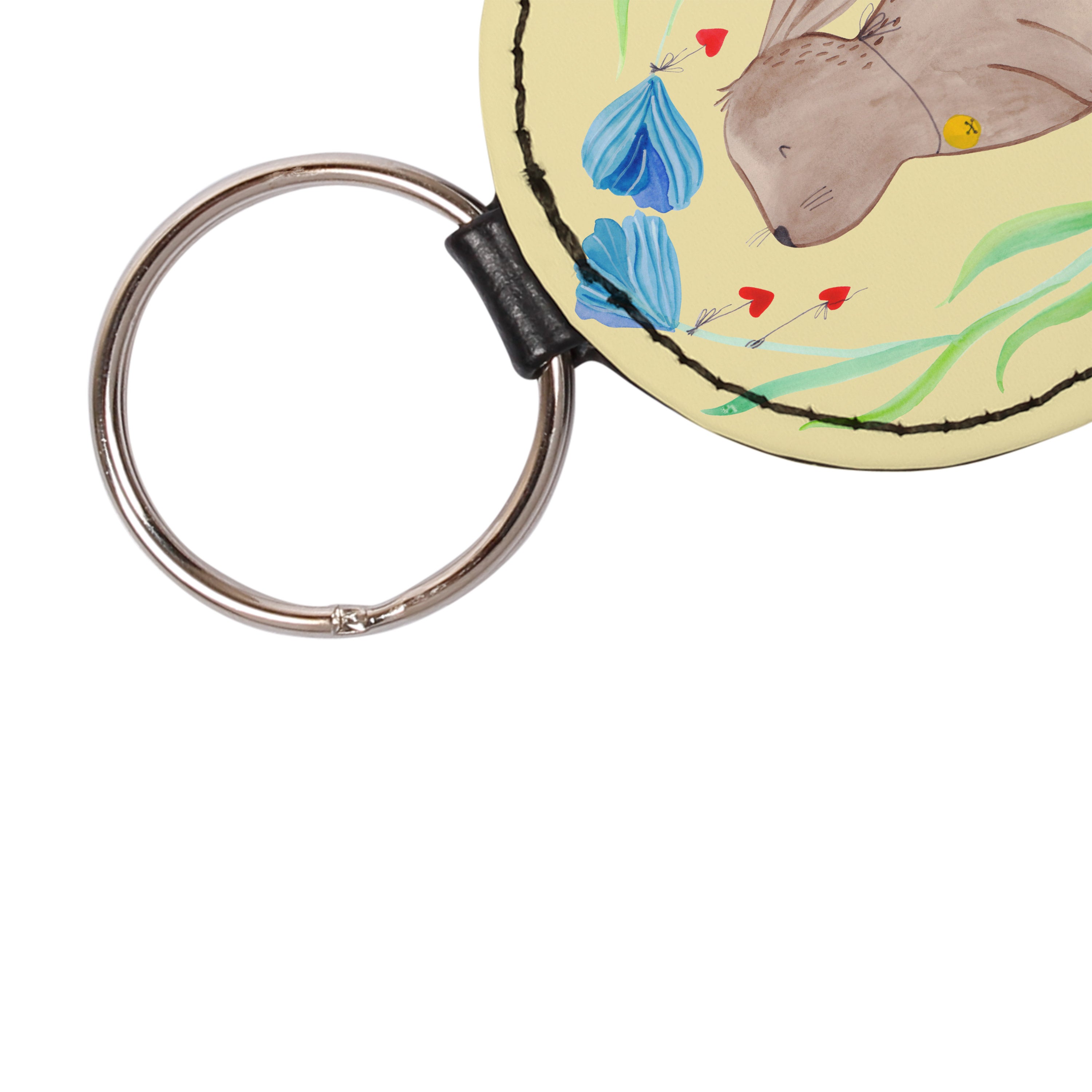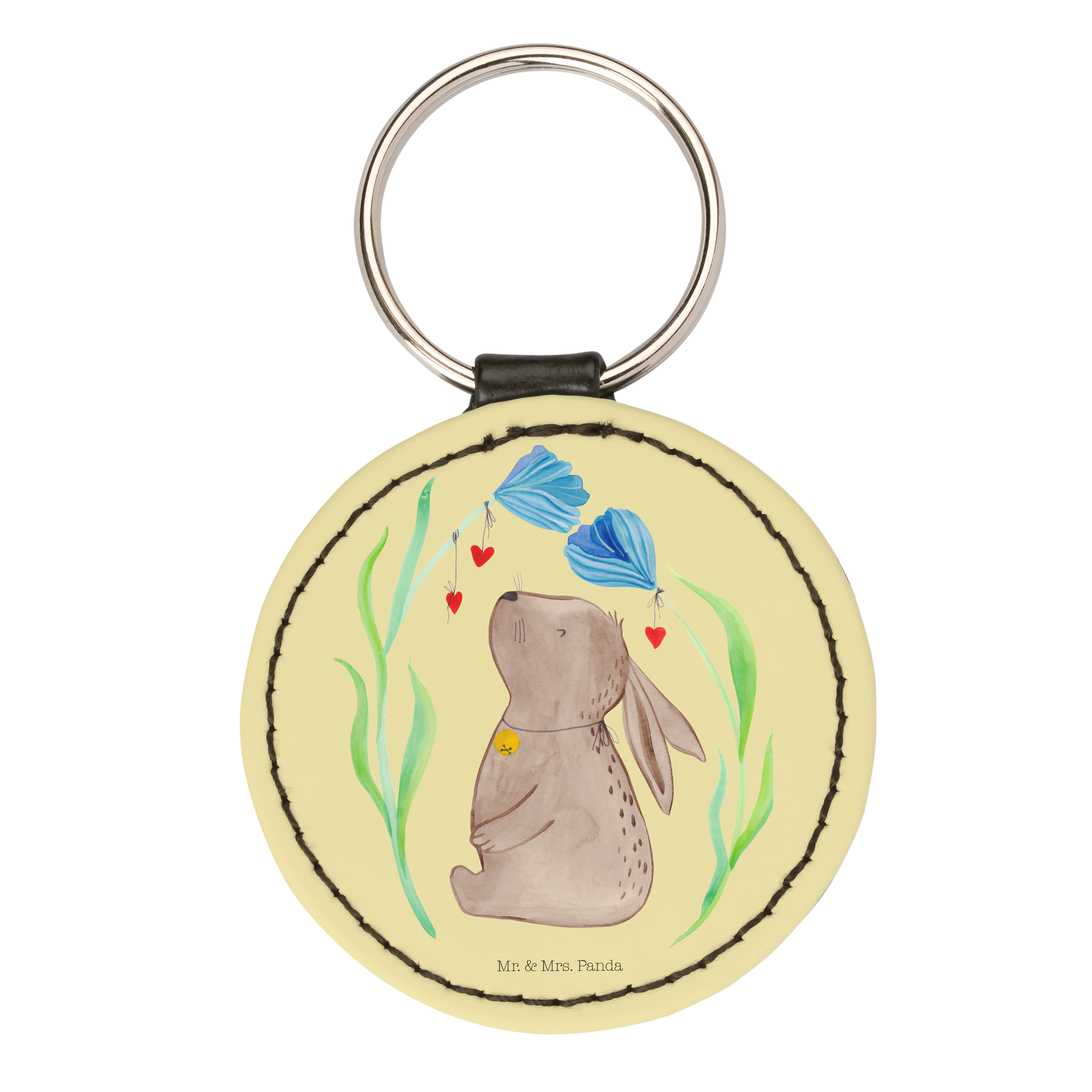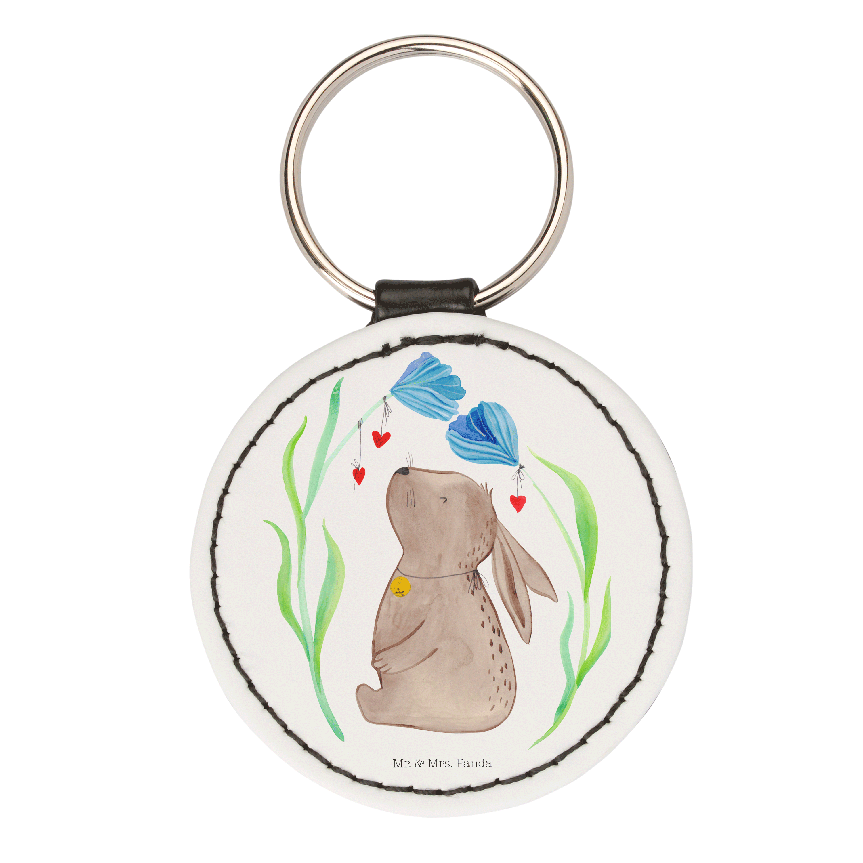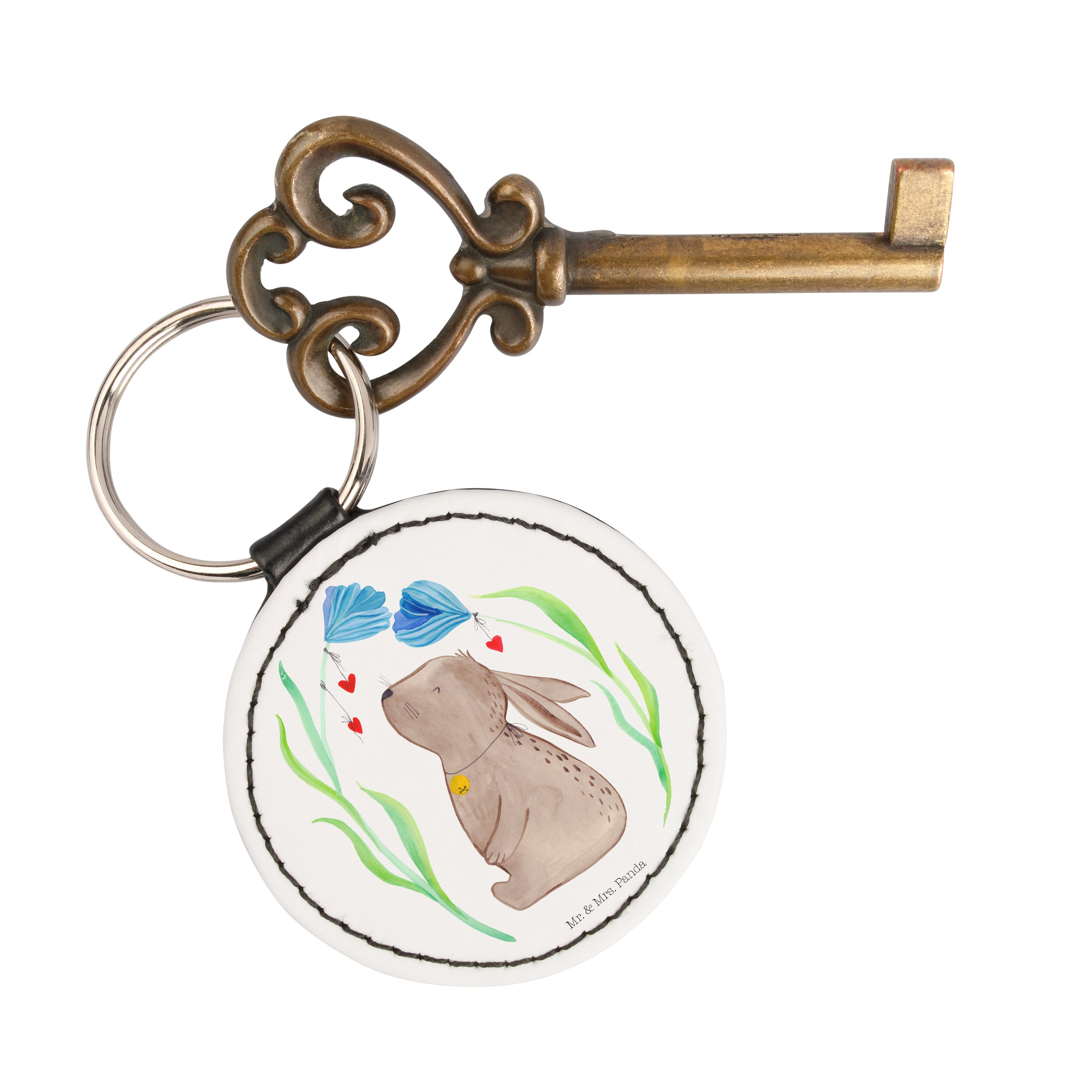 Rund Schlüsselanhänger Hase Blume - Weiß