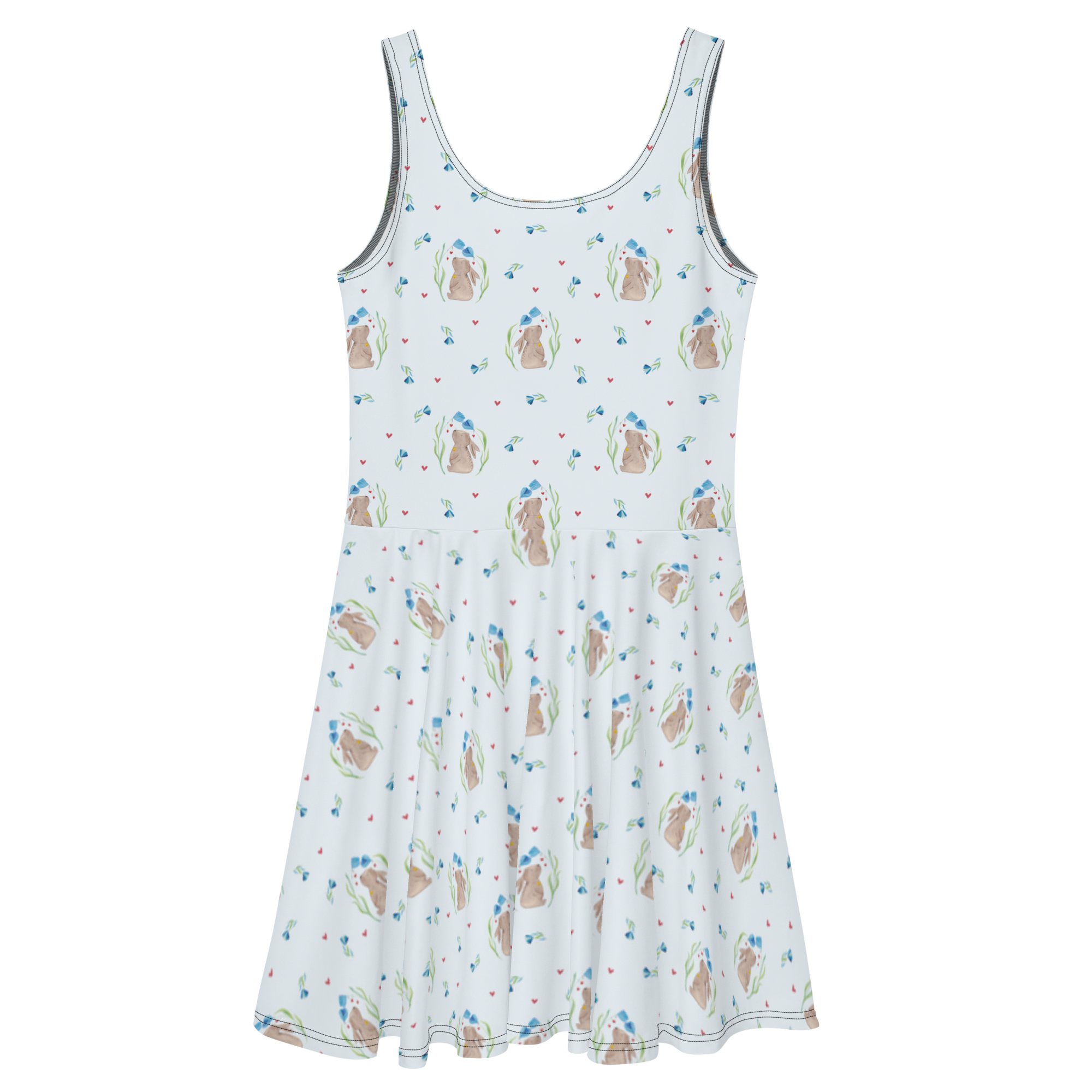 - Das Kleid ist leicht ausgestellt und reicht bis zur Hälfte der Knie.