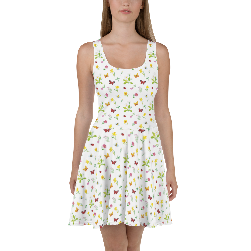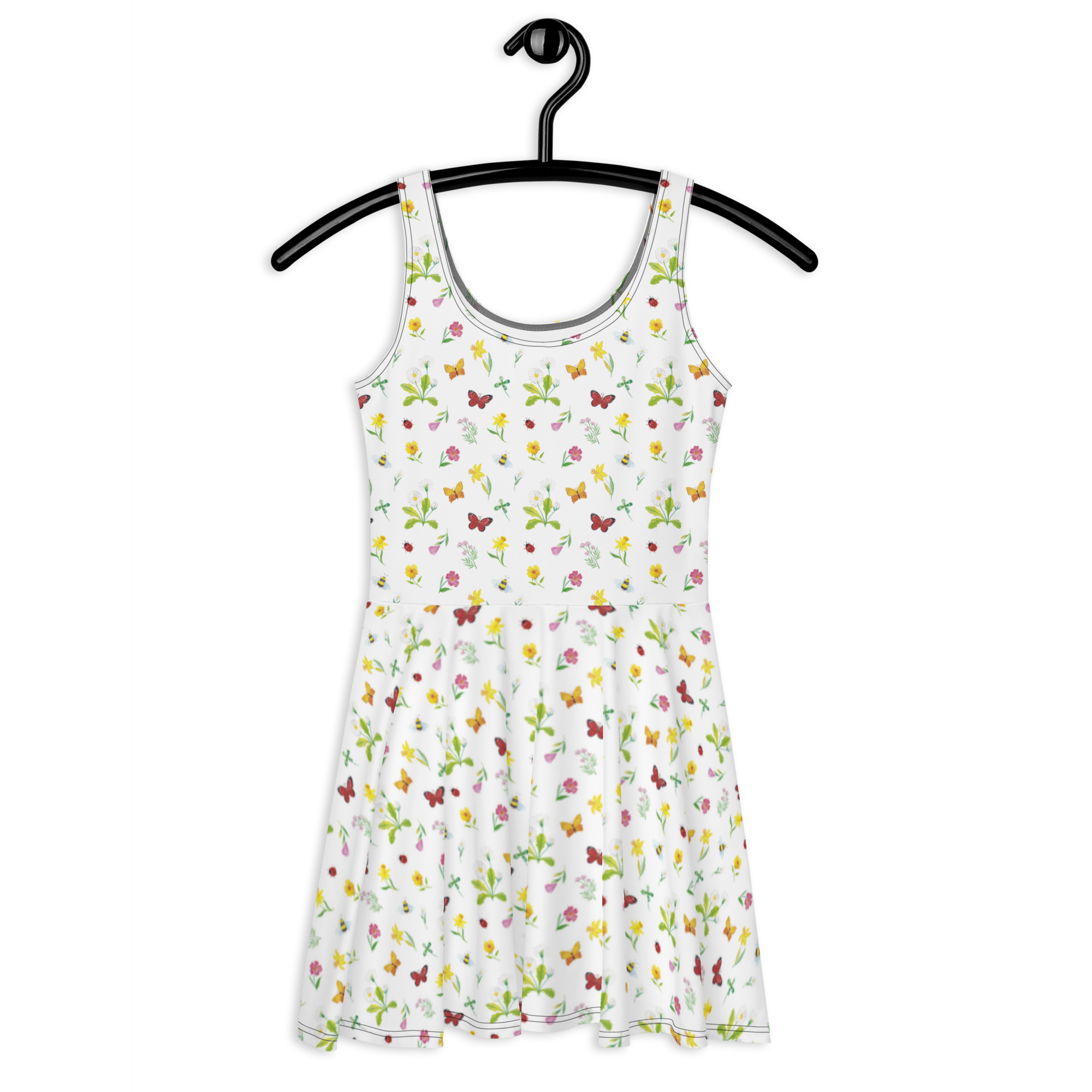 - Das Kleid ist leicht ausgestellt und reicht bis zur Hälfte der Knie.