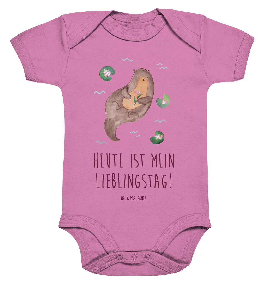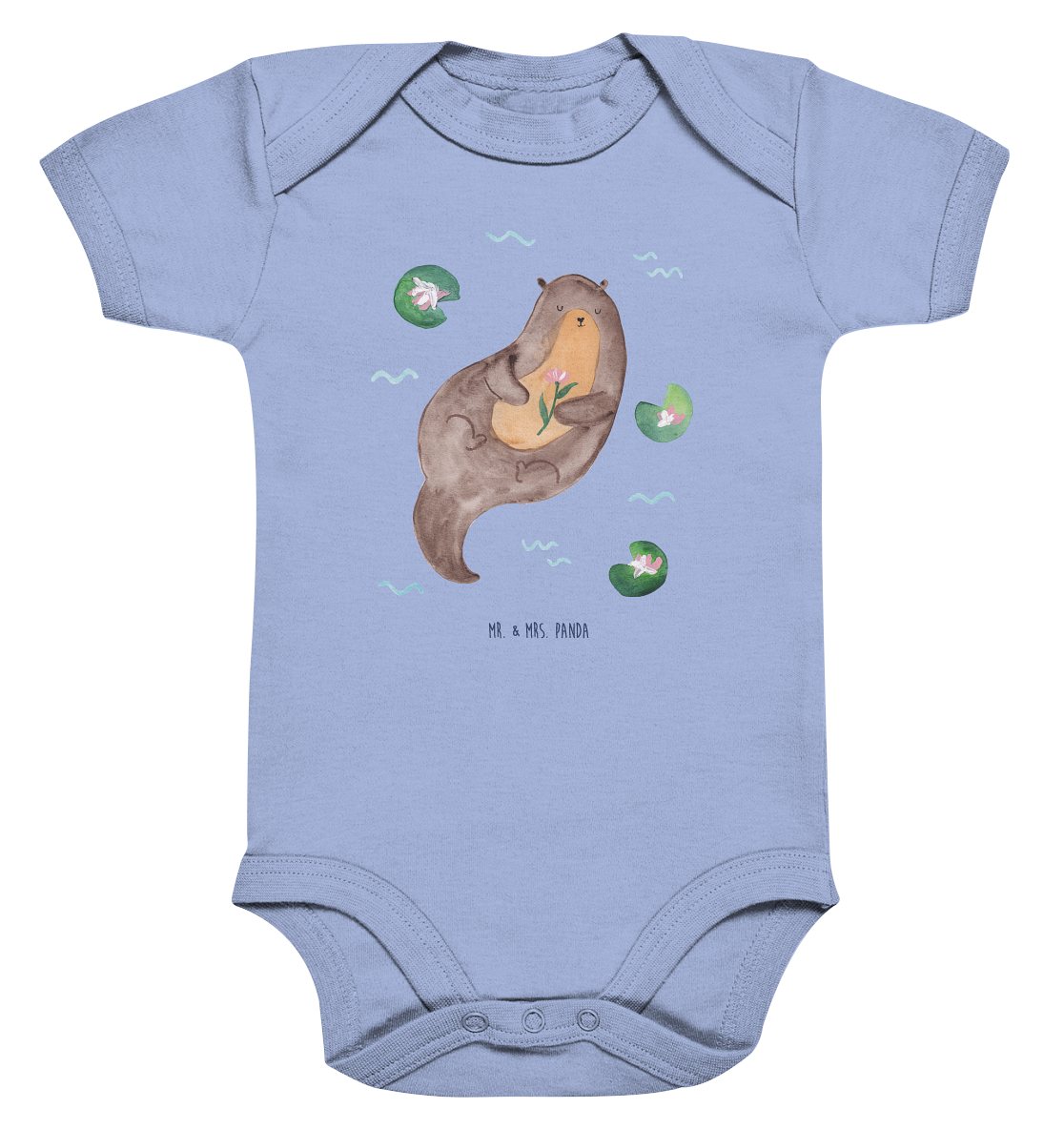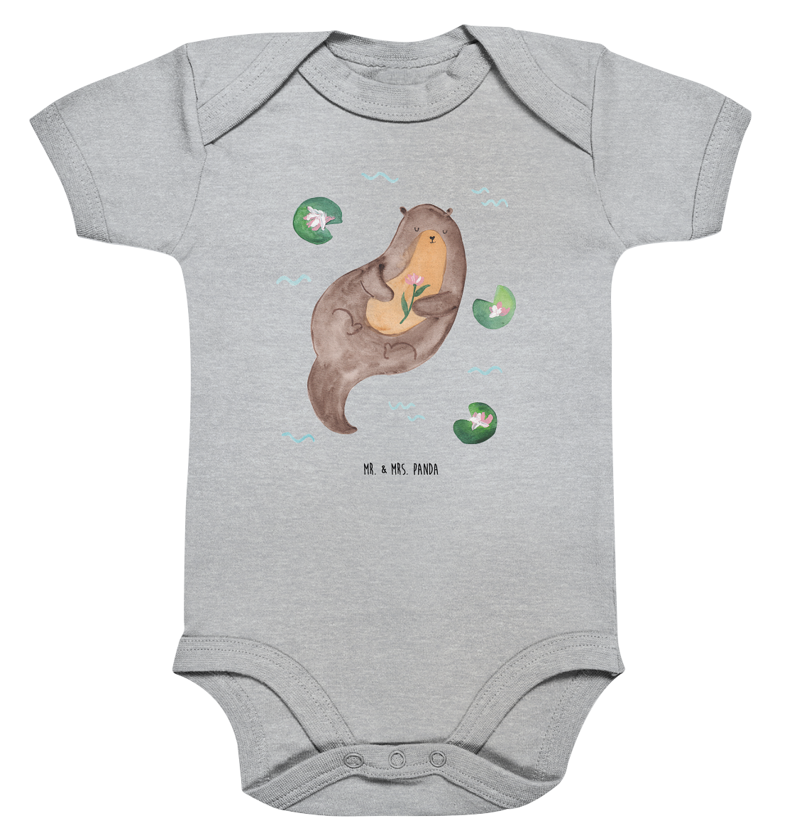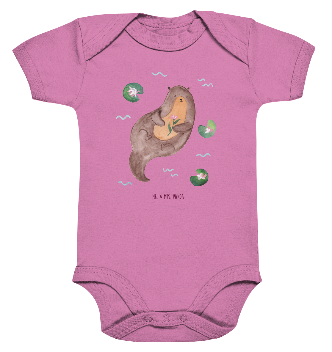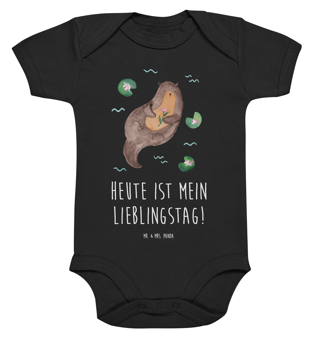 Organic Baby Body Otter mit Seerose - 1. - 3. Monat - mit Spruch - Schwarz