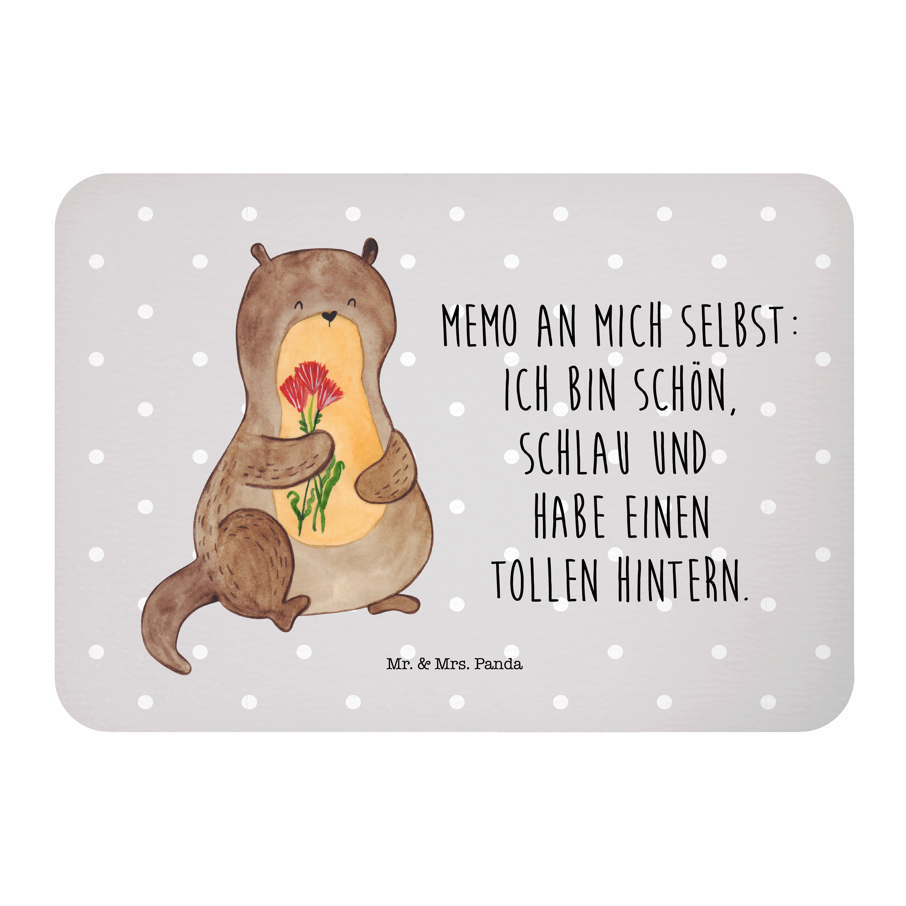 Magnet Otter Blumenstrauß - mit Spruch - Grau Pastell