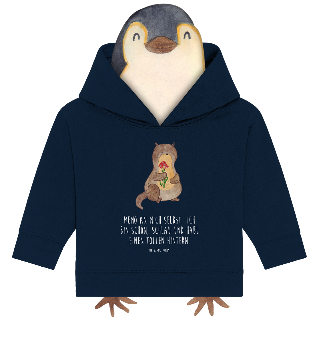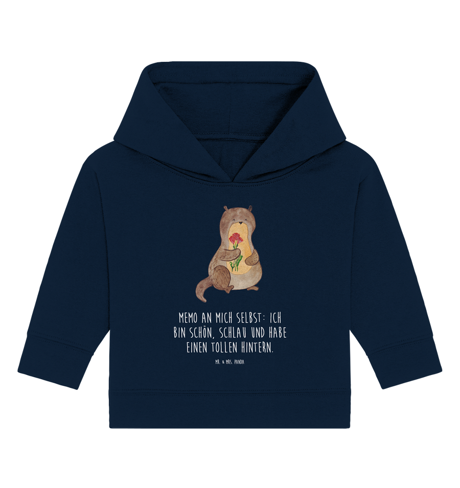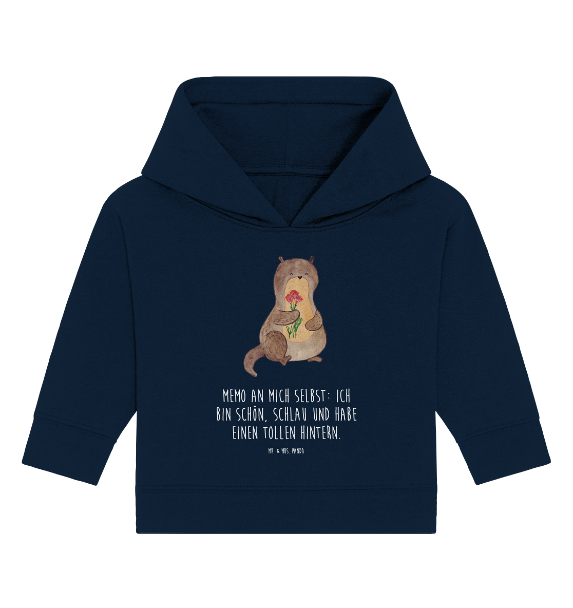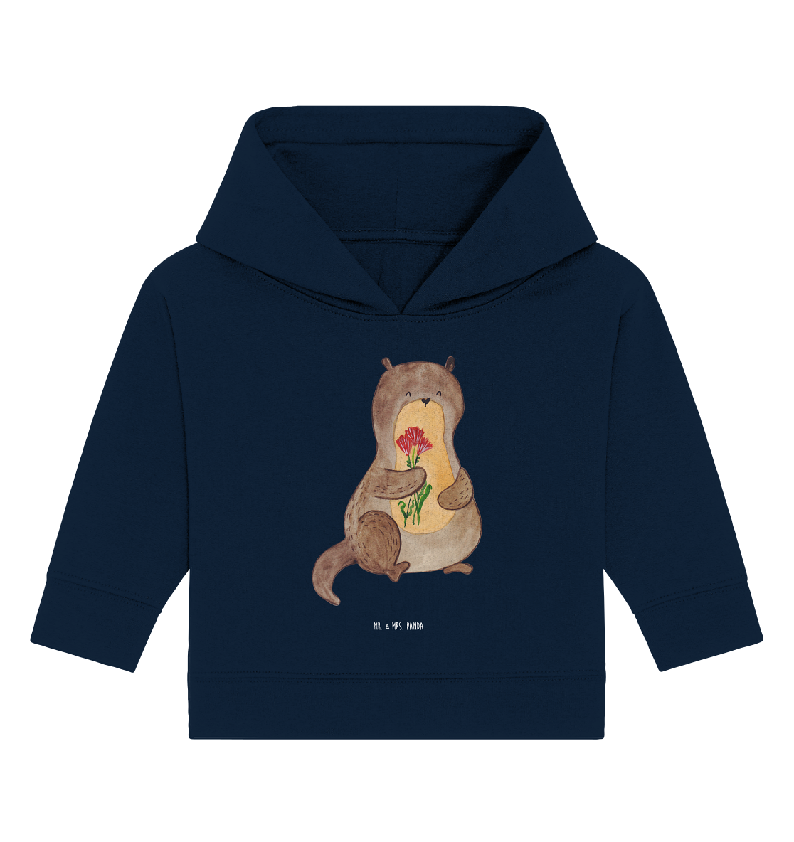 Organic Baby Hoodie Otter Blumenstrauß - 12. - 18. Monat - mit Spruch - French Navy