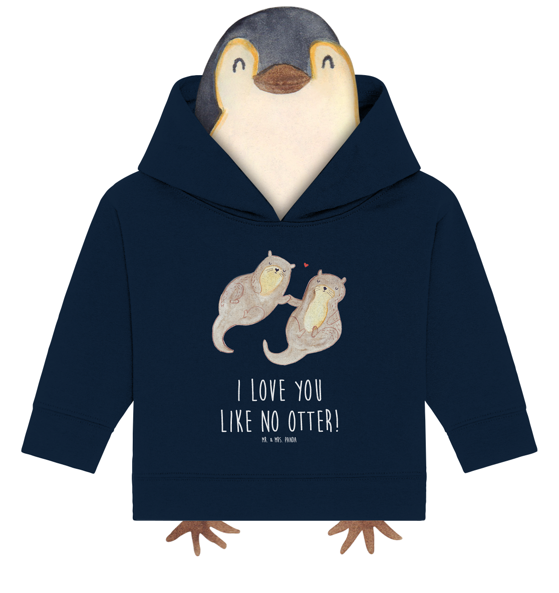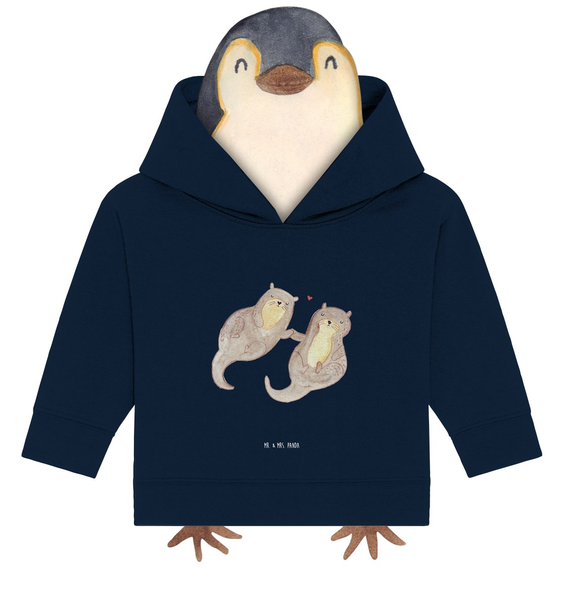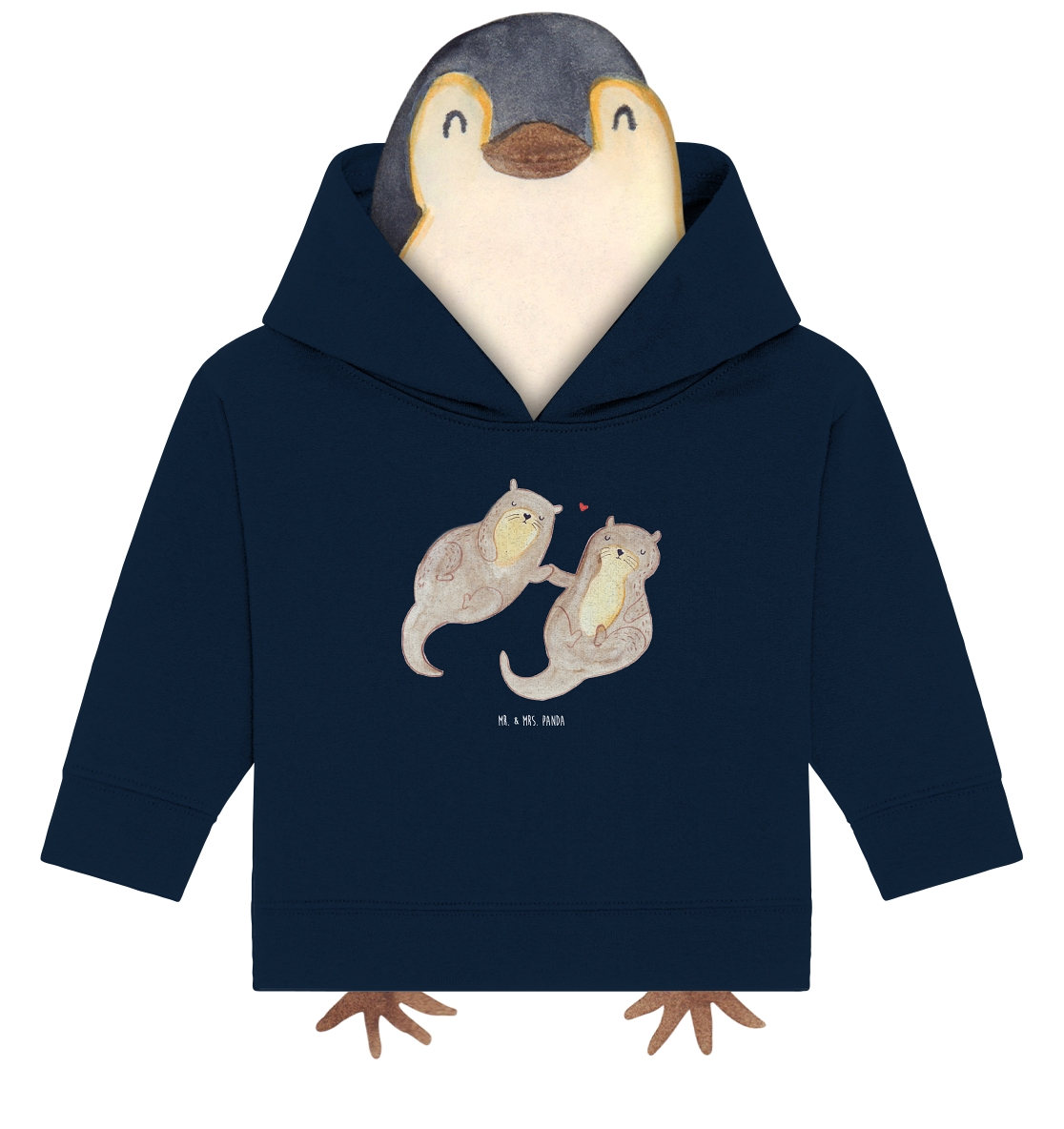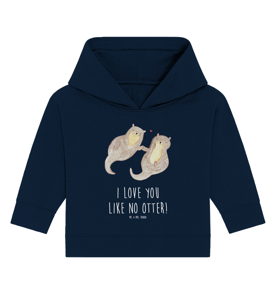 Organic Baby Hoodie Otter händchenhaltend - 12. - 18. Monat - mit Spruch - French Navy