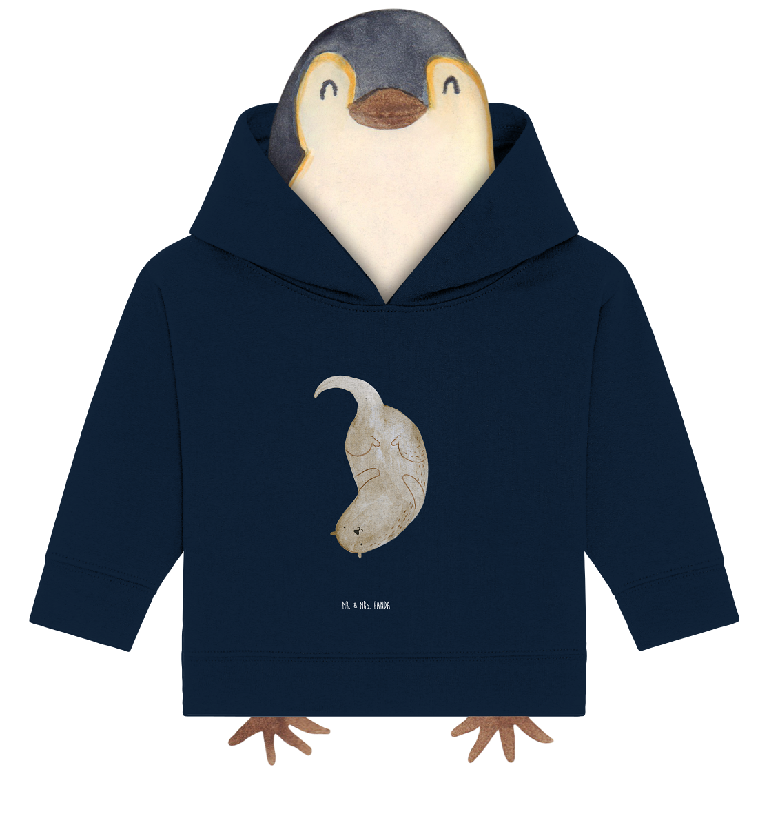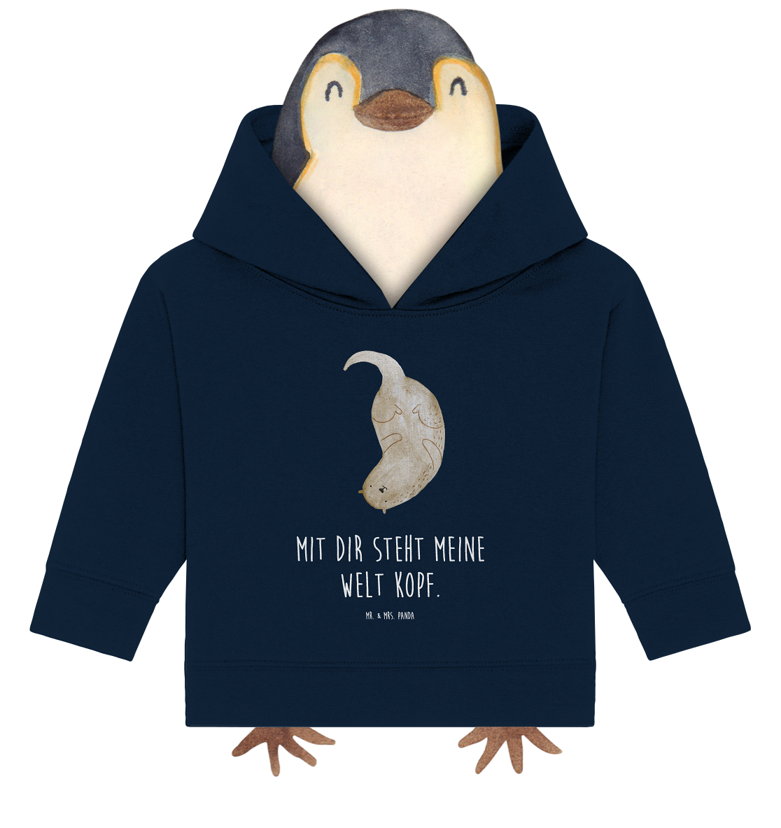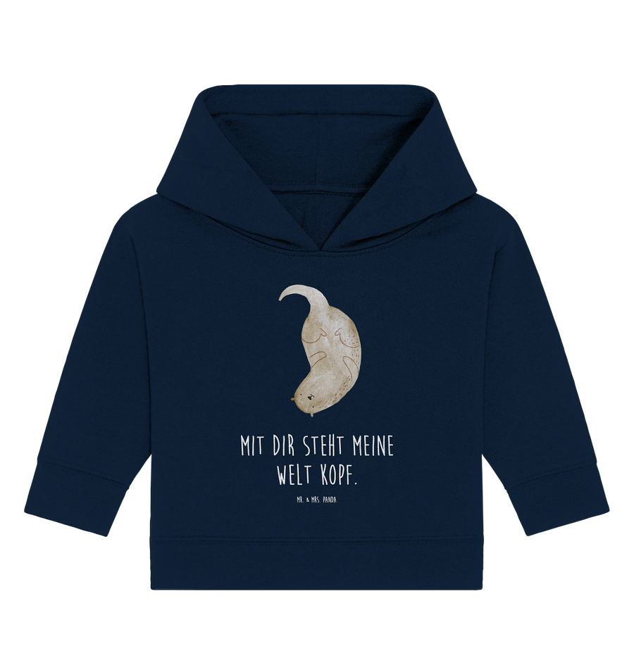 Organic Baby Hoodie Otter kopfüber - 12. - 18. Monat - mit Spruch - French Navy
