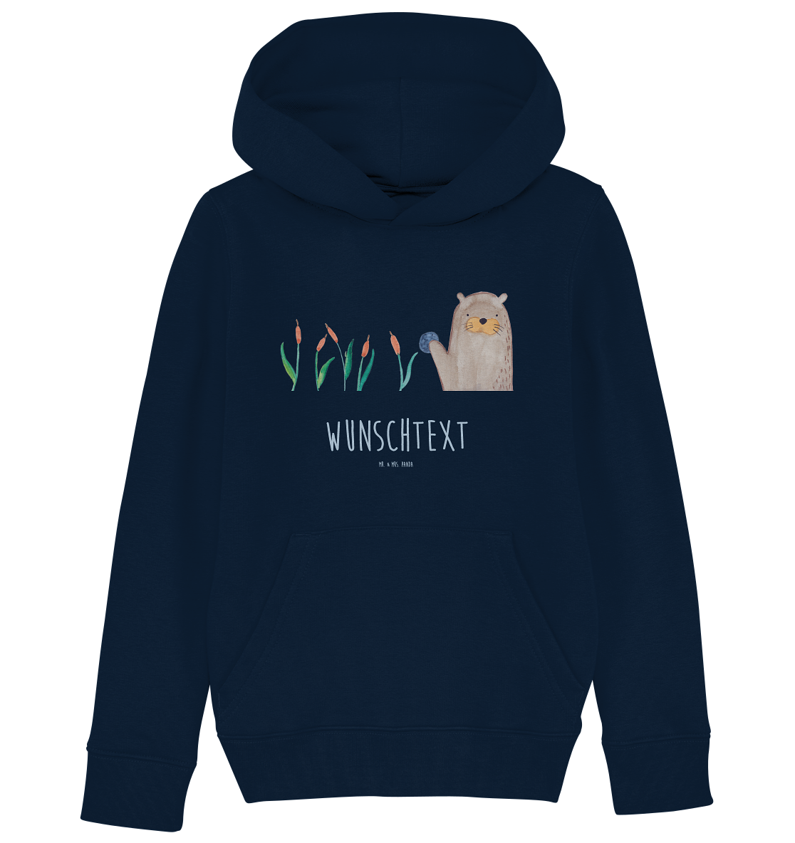 Personalisierter Kinder Hoodie Otter mit Stein - 12-14 Jahre (152/164) - French Navy