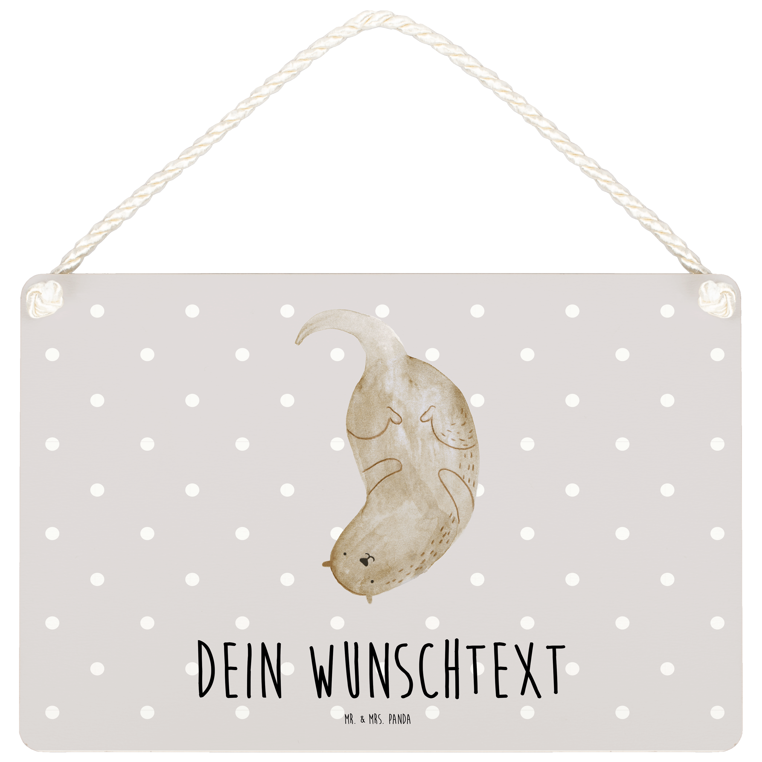 Personalisiertes Deko Schild Otter kopfüber - DIN A6 - Grau Pastell