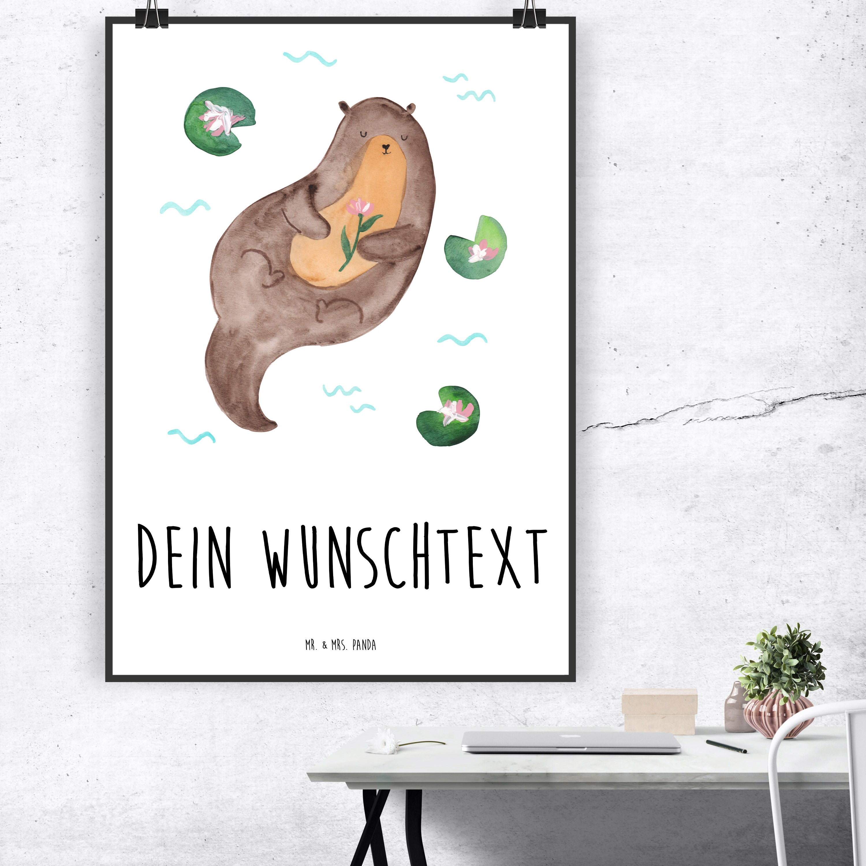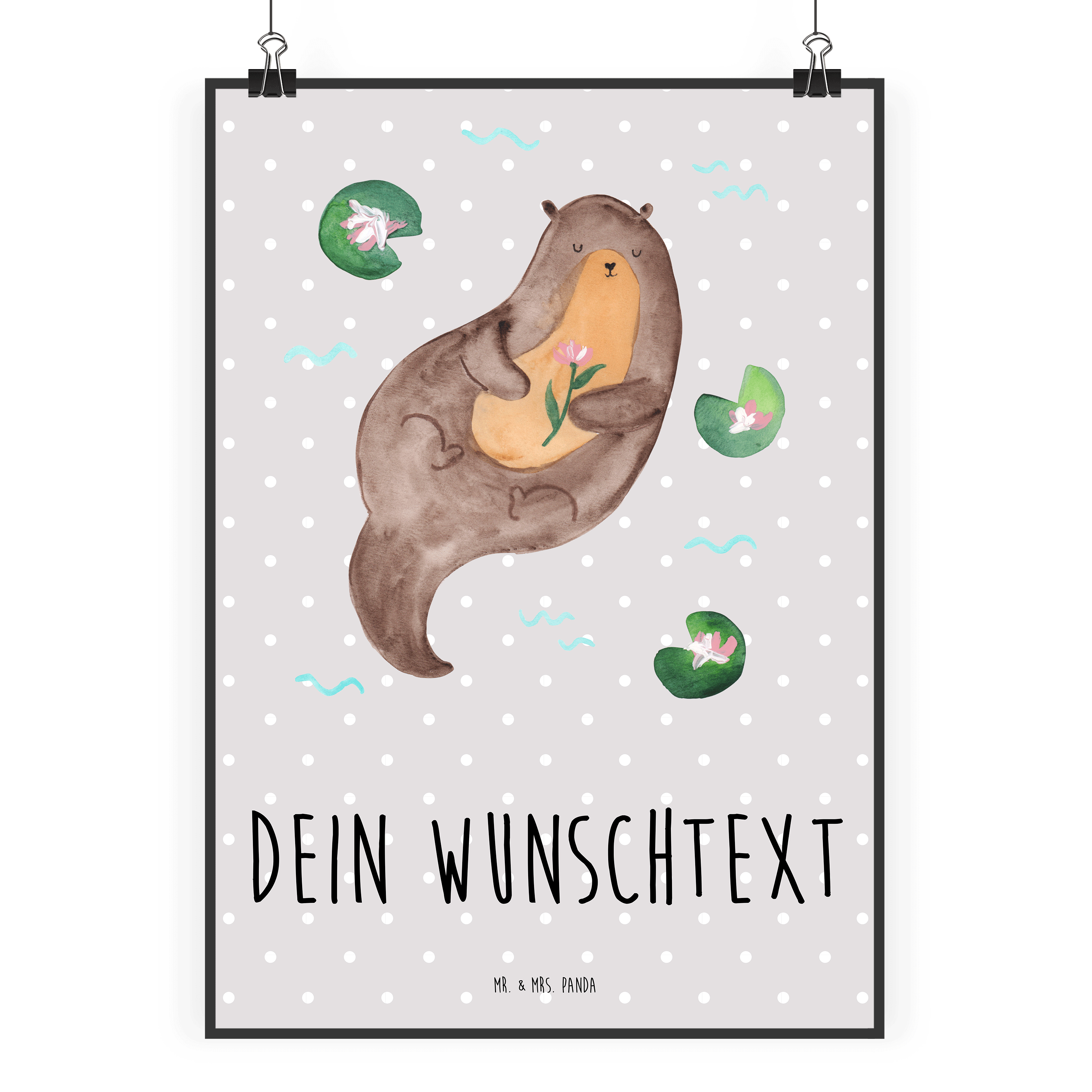 Personalisiertes Poster Otter mit Seerose - DIN A0 - Grau Pastell