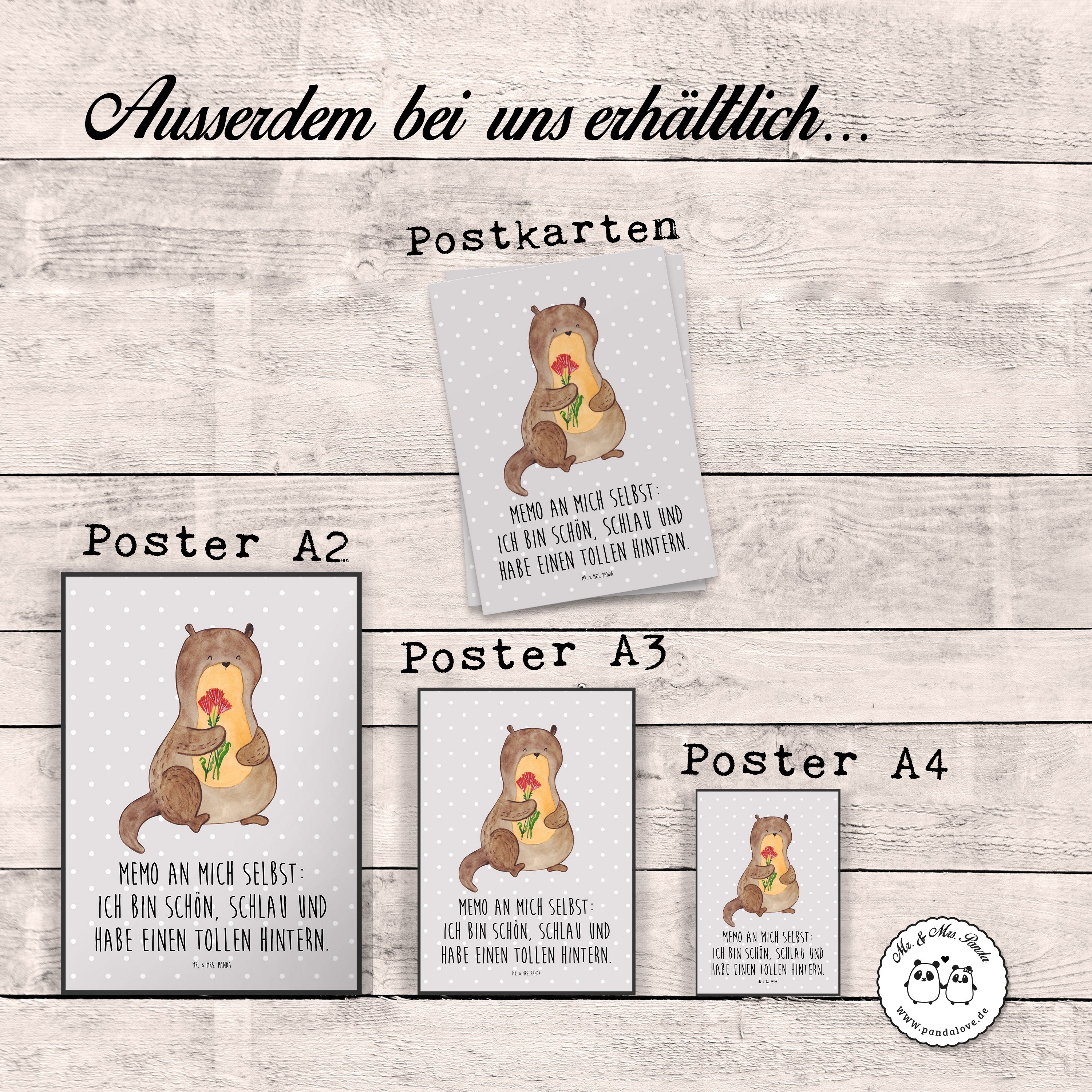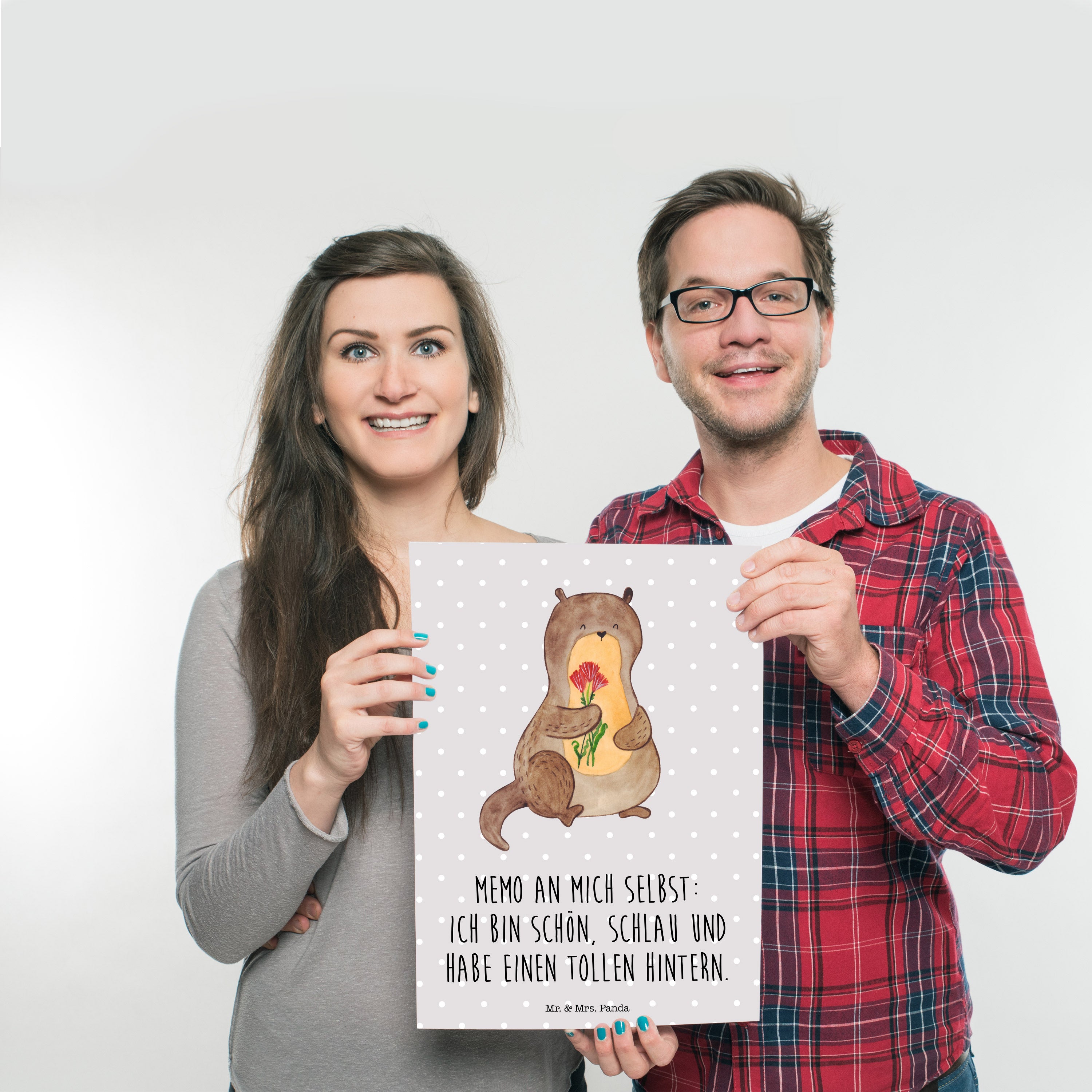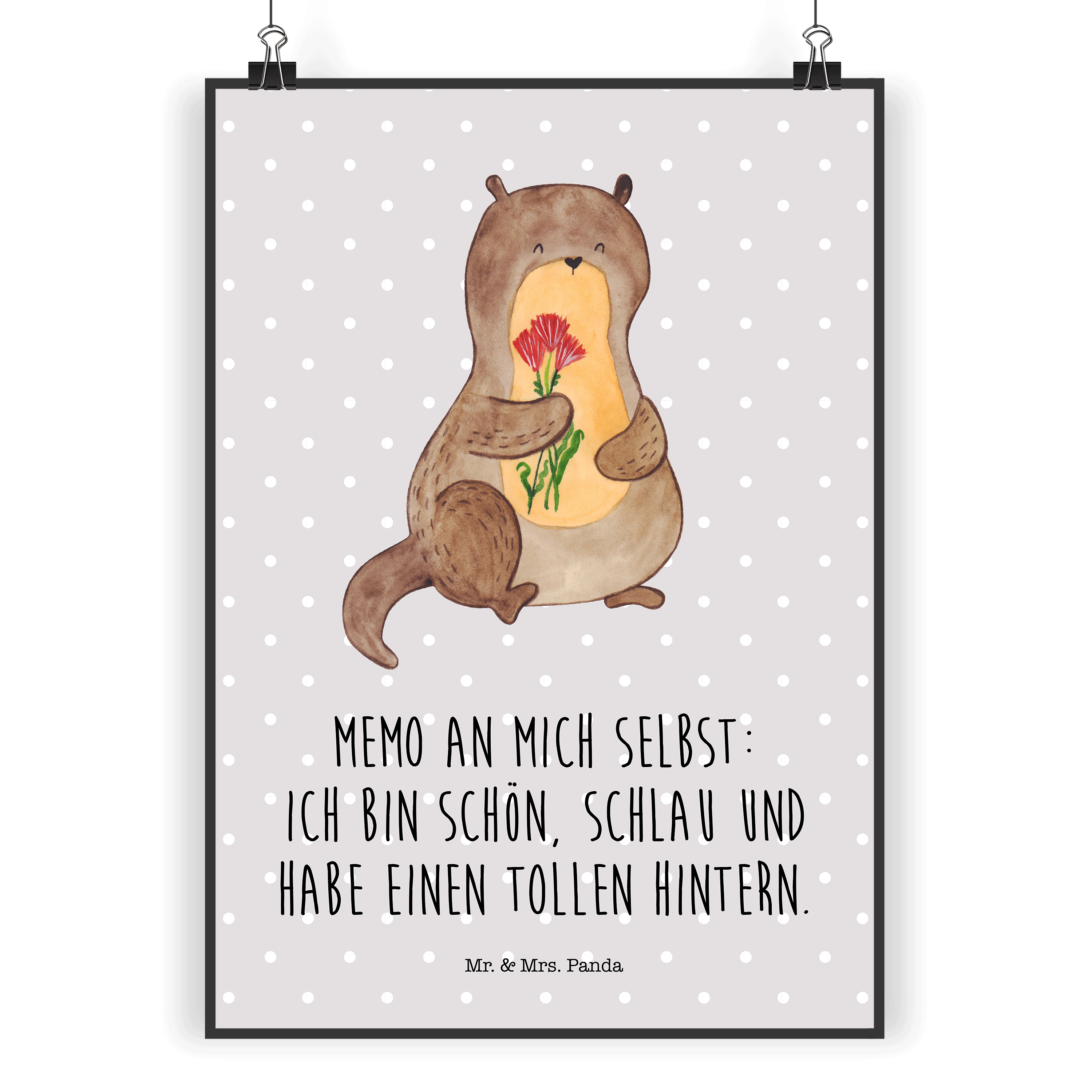 Ein süßer kleiner Otter hält einen kunterbunten Blumenstrauß in seinen Pfötchen und schaut dich glücklich an. Das fröhliche Motiv namens "Otter Blumenstrauß" von Mr. & Mrs. Panda versprüht Leichtigkeit und gute Laune und zaubert mit seinen leuchtenden Farben jedem ein Lächeln ins Gesicht.