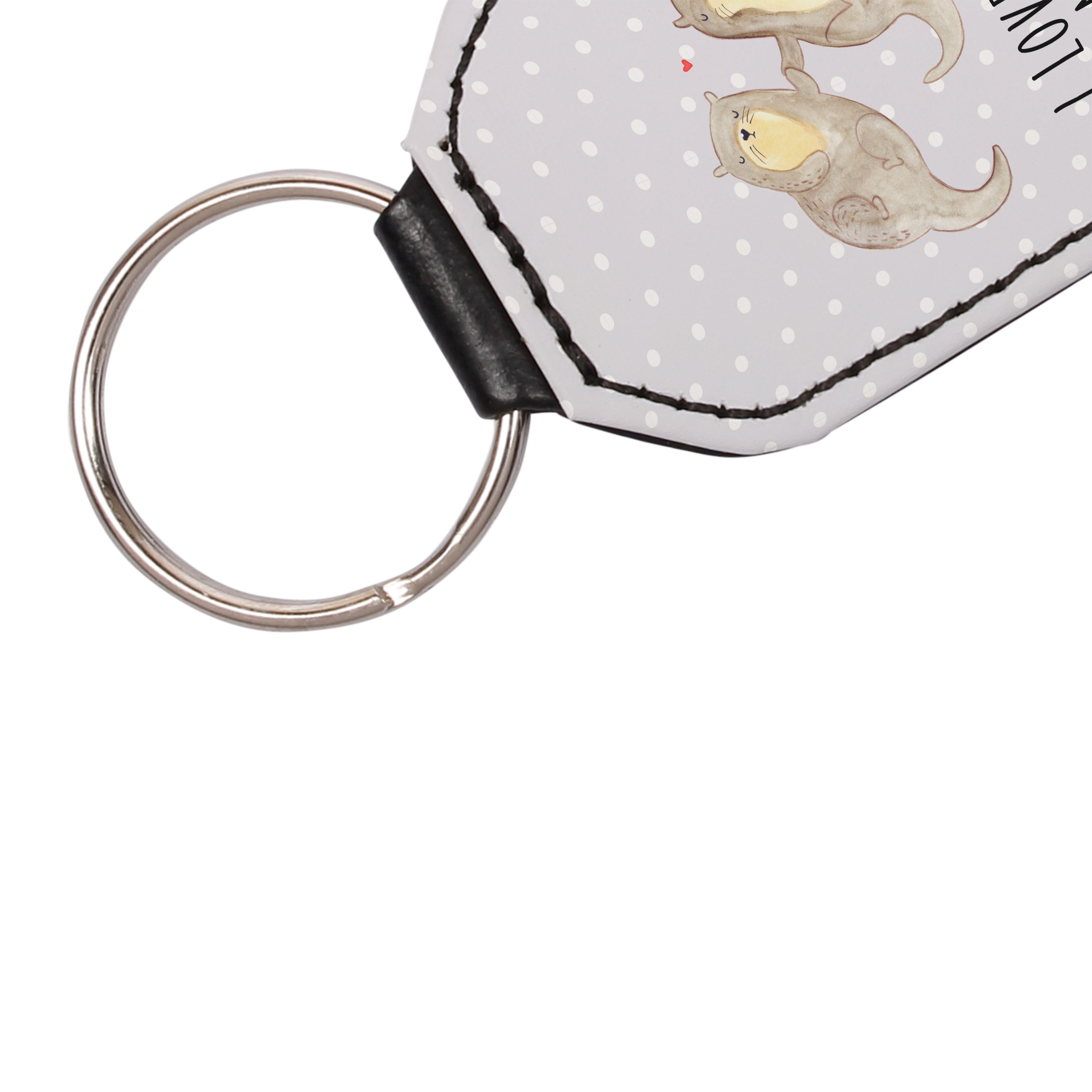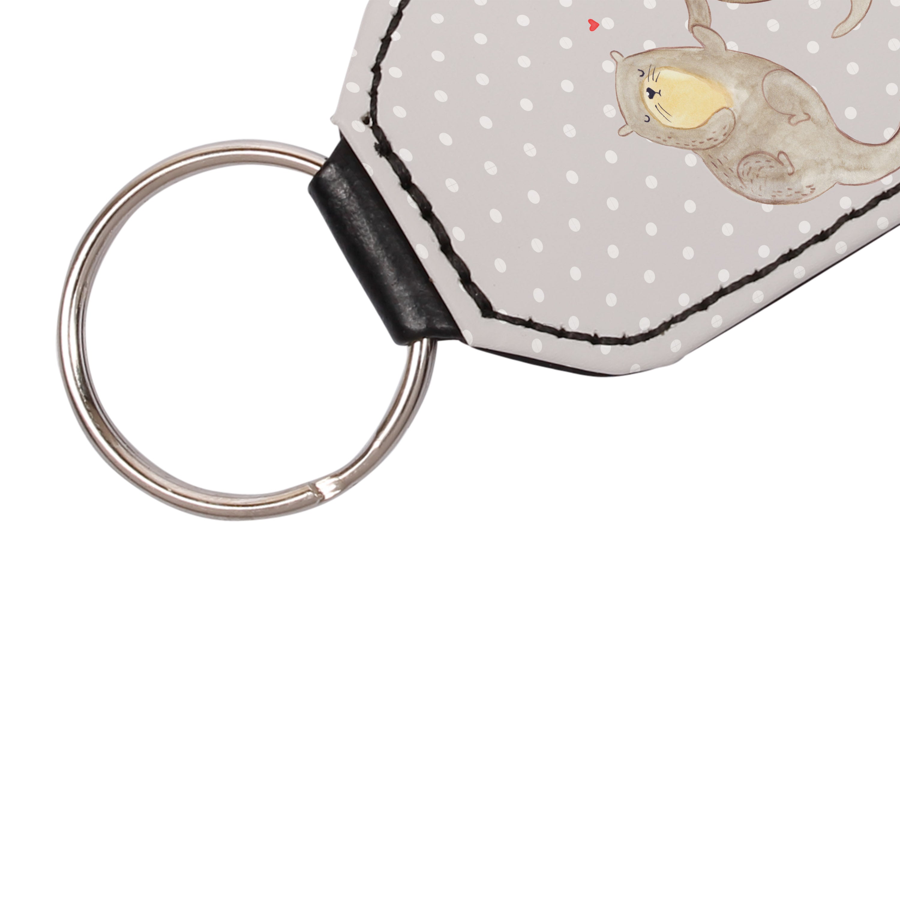 Rechteckig Schlüsselanhänger Otter händchenhaltend - mit Spruch - Grau Pastell