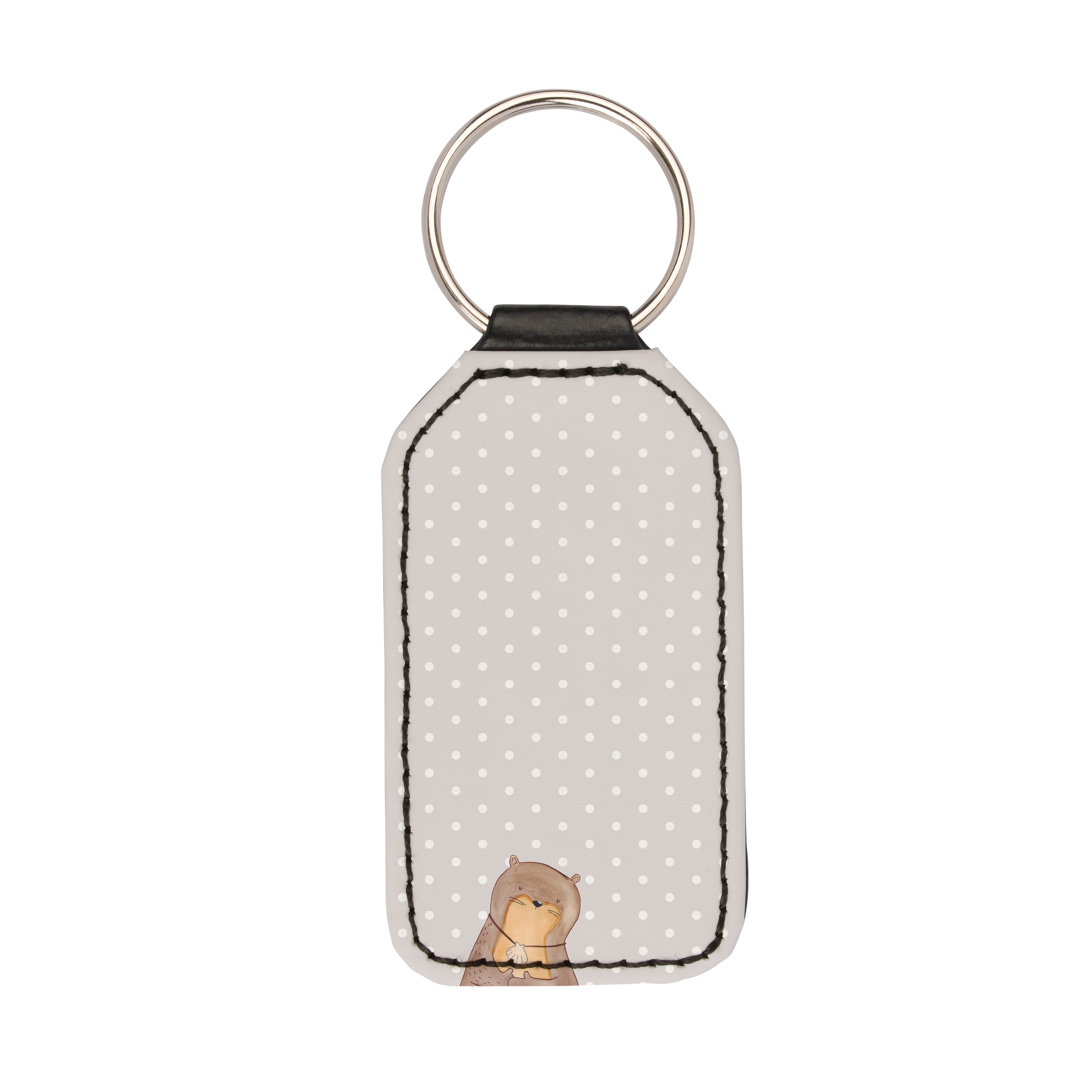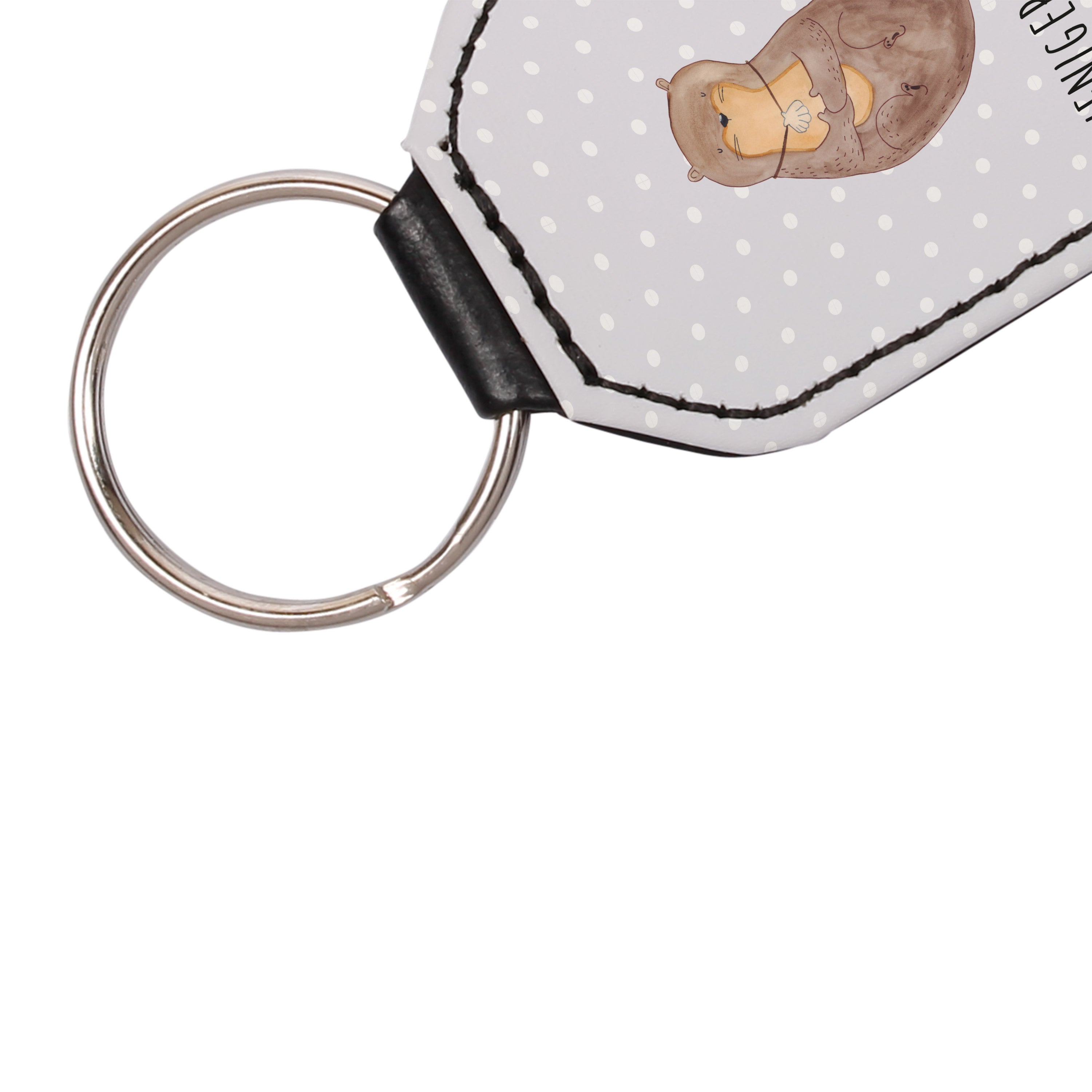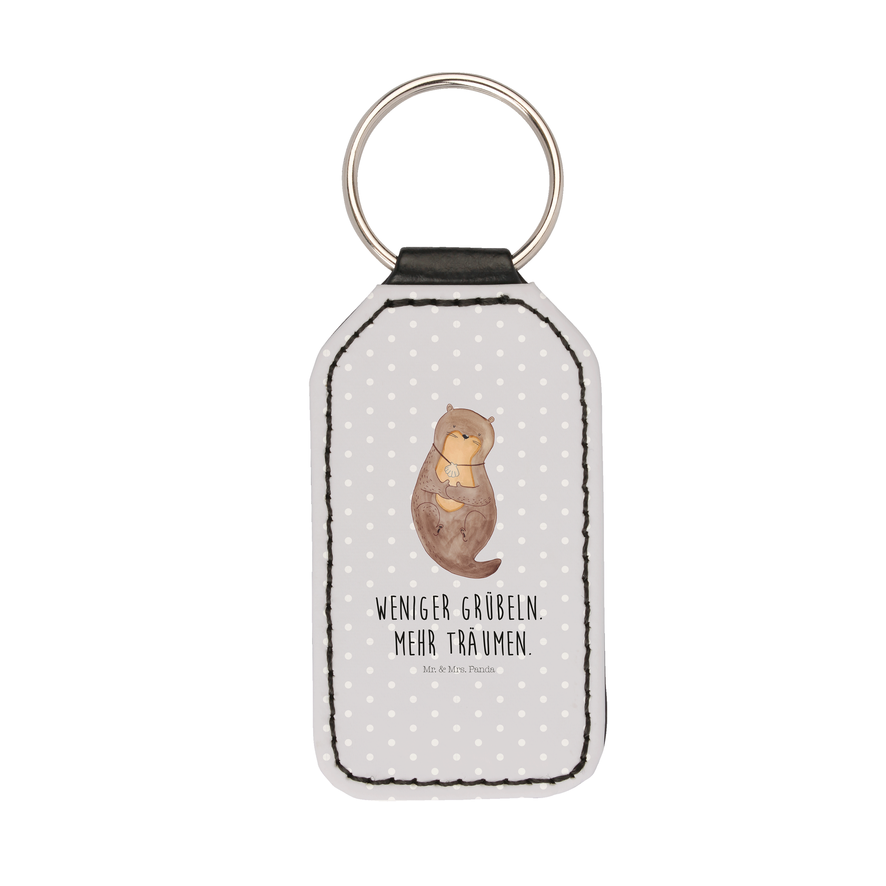 Rechteckig Schlüsselanhänger Otter mit Muschelmedaillon - mit Spruch - Grau Pastell