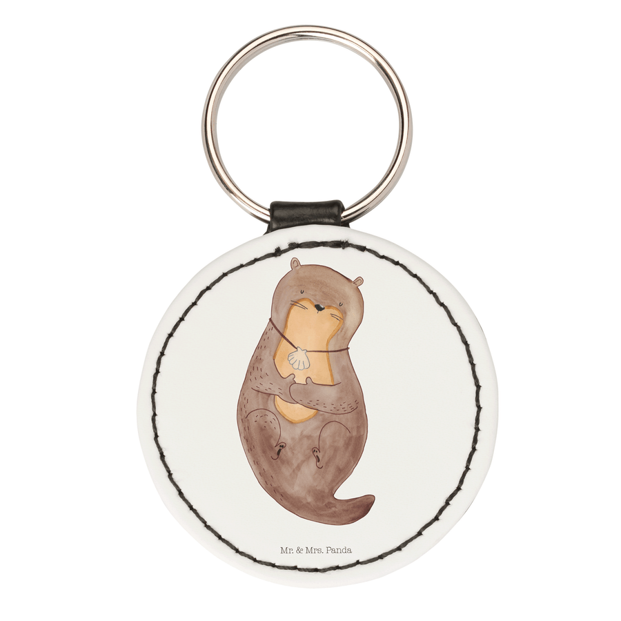 Rund Schlüsselanhänger Otter mit Muschelmedaillon - ohne Spruch - Weiß