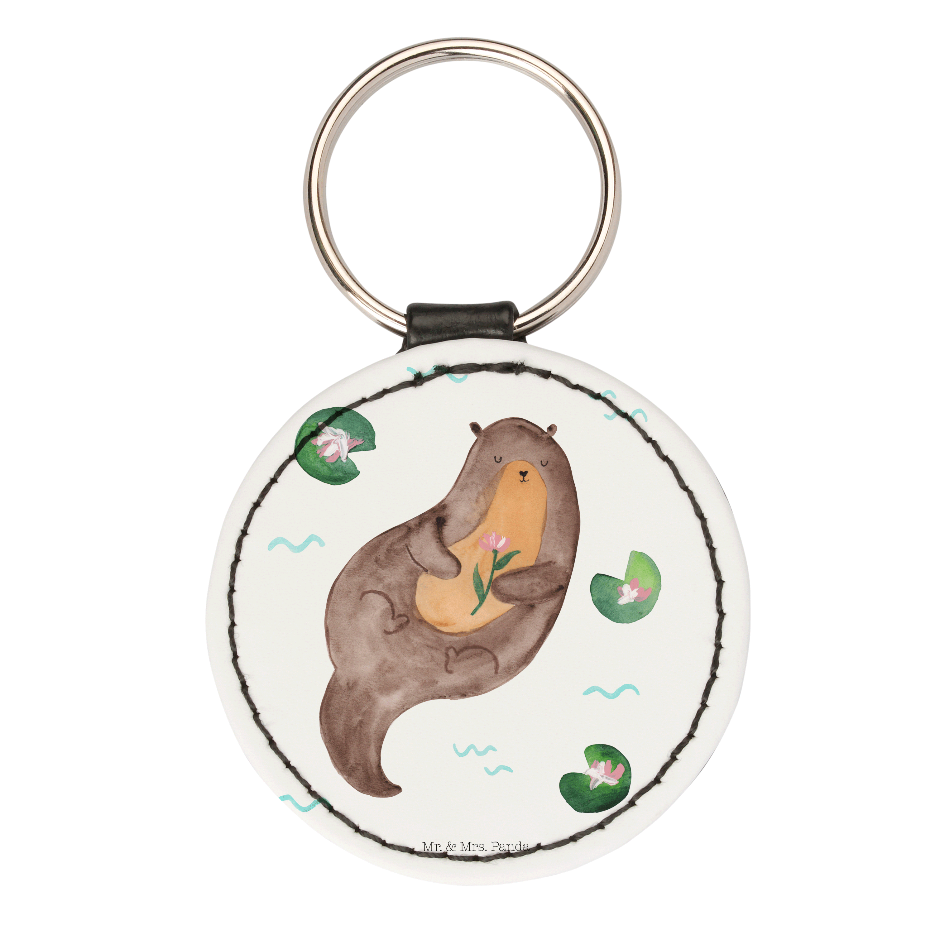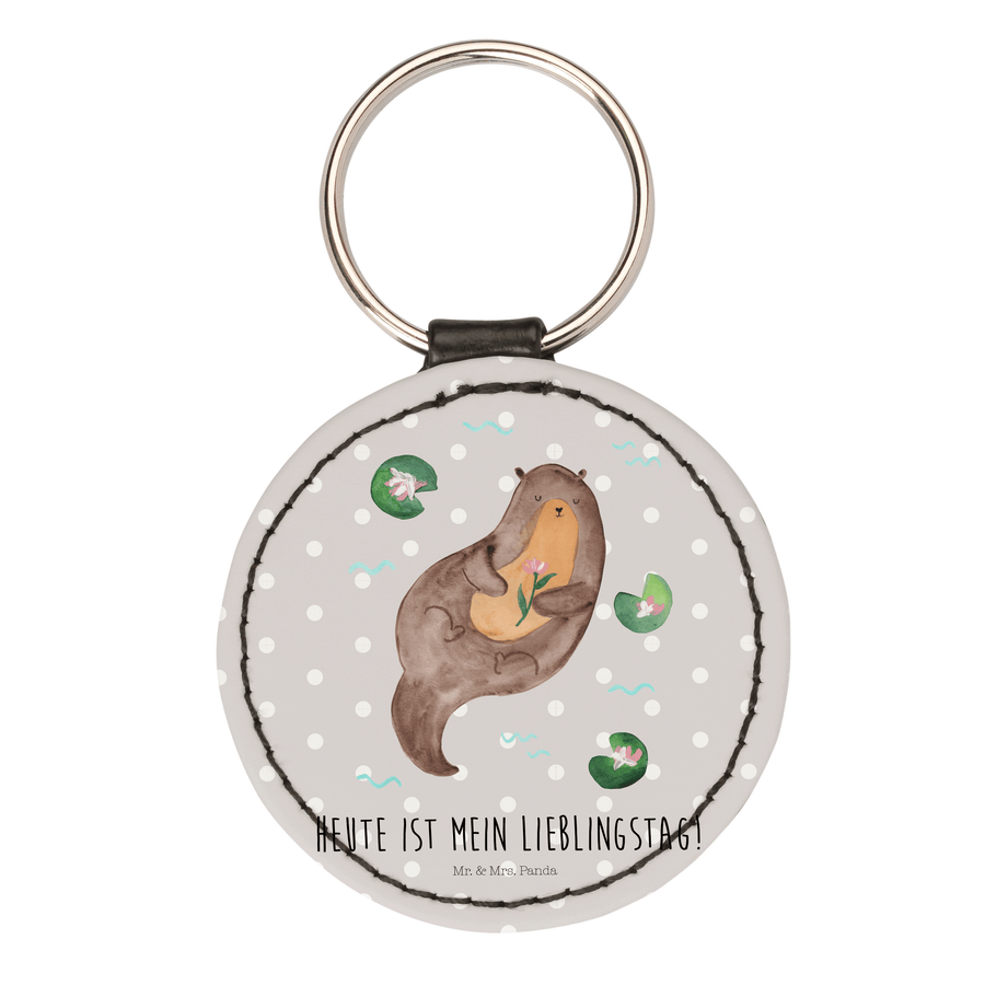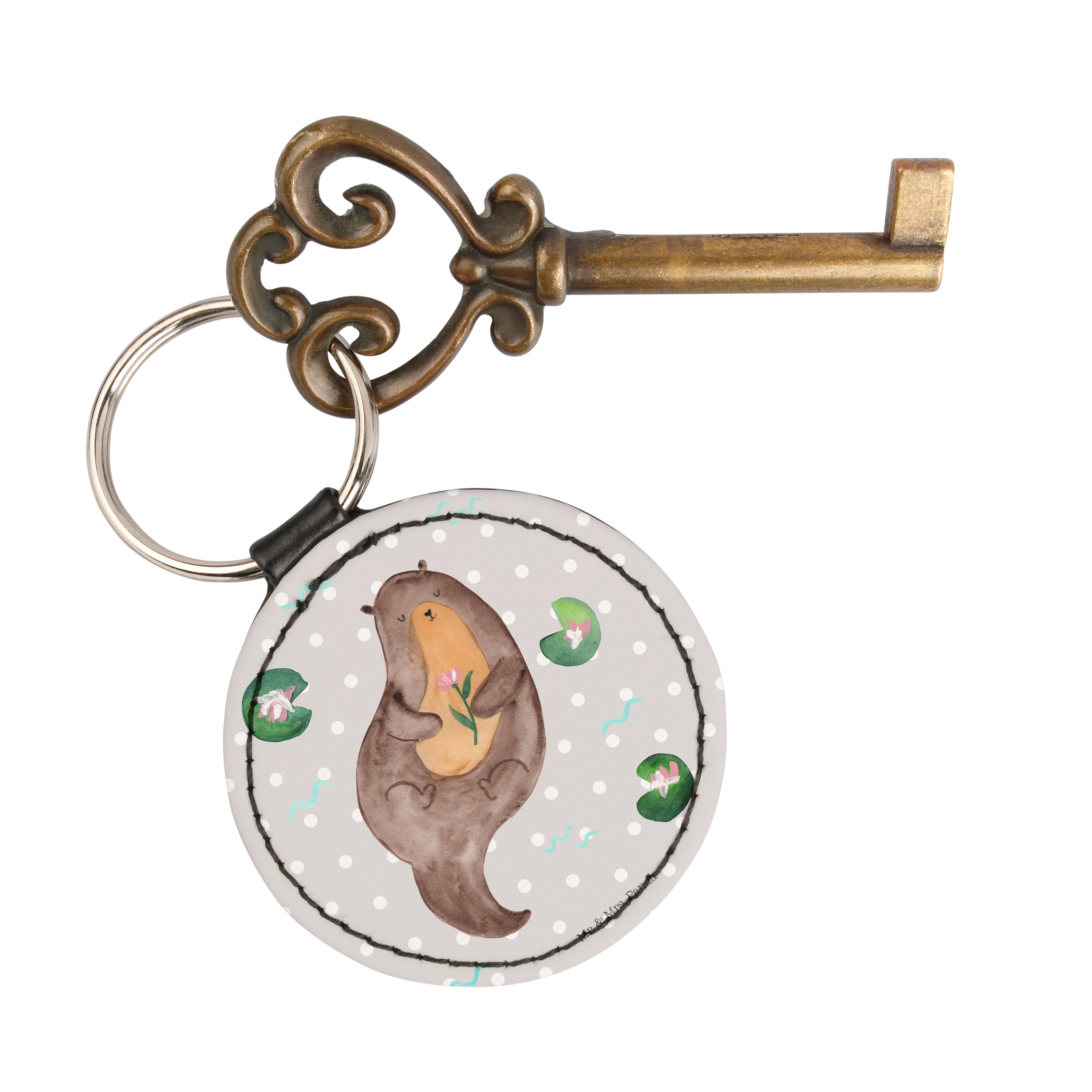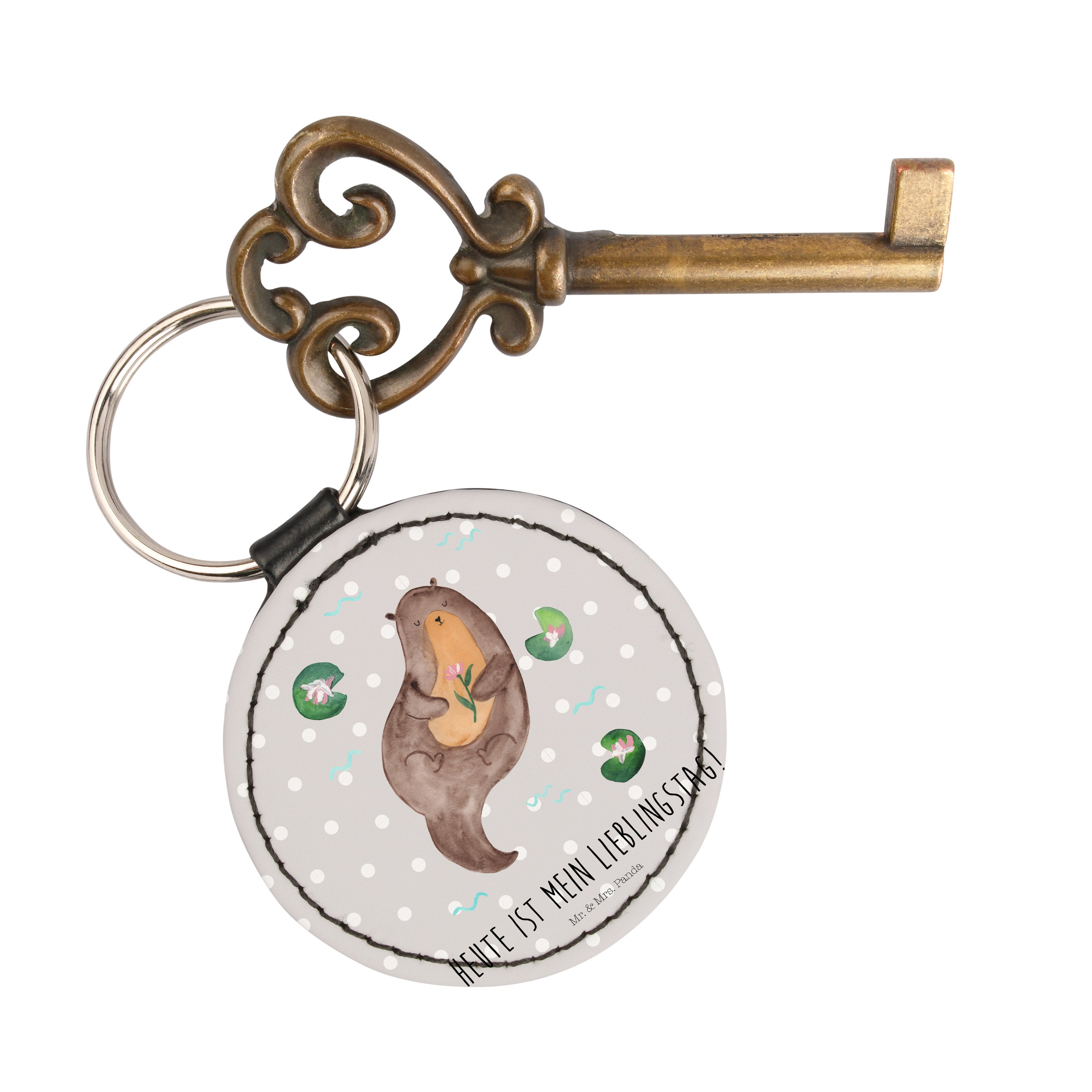 Rund Schlüsselanhänger Otter mit Seerose - mit Spruch - Grau Pastell