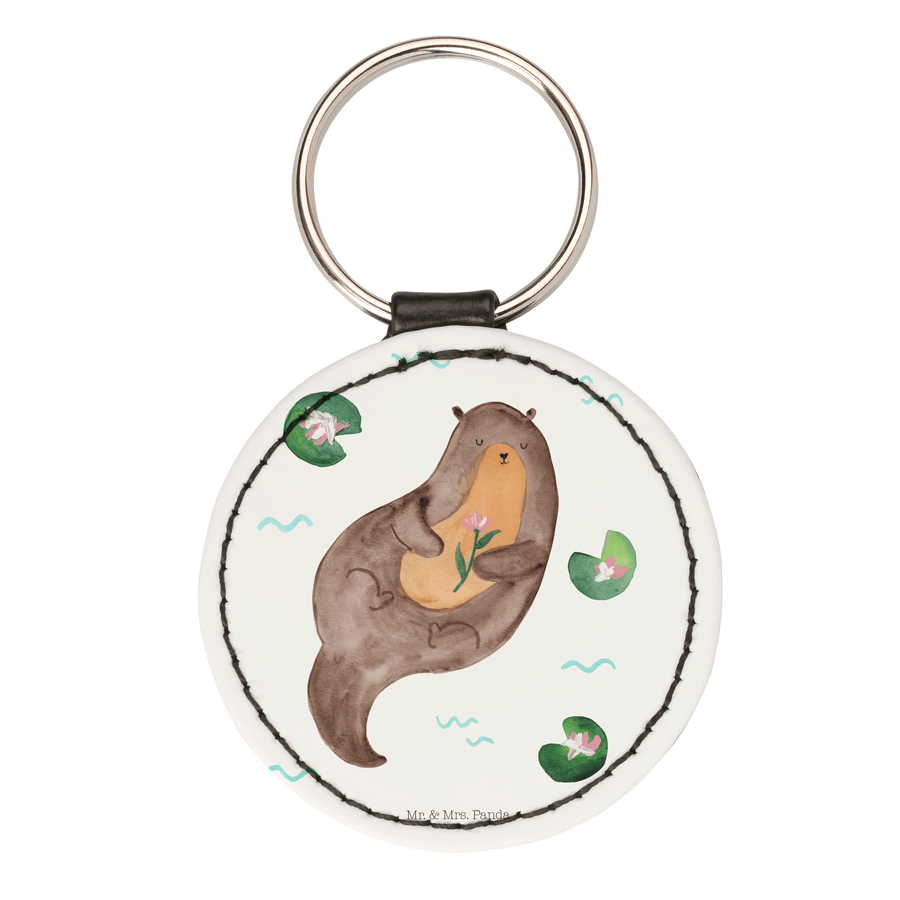 Rund Schlüsselanhänger Otter mit Seerose - ohne Spruch - Weiß