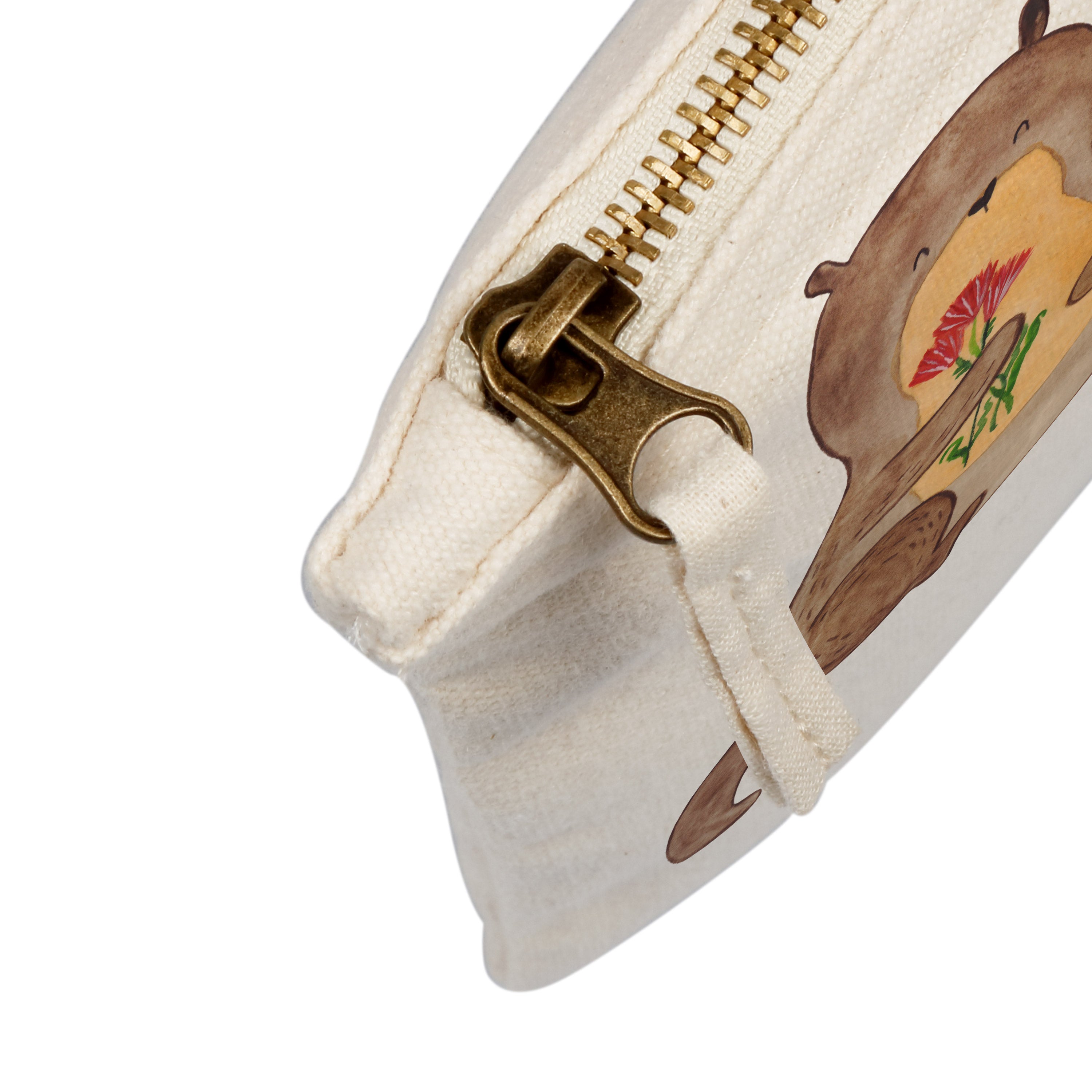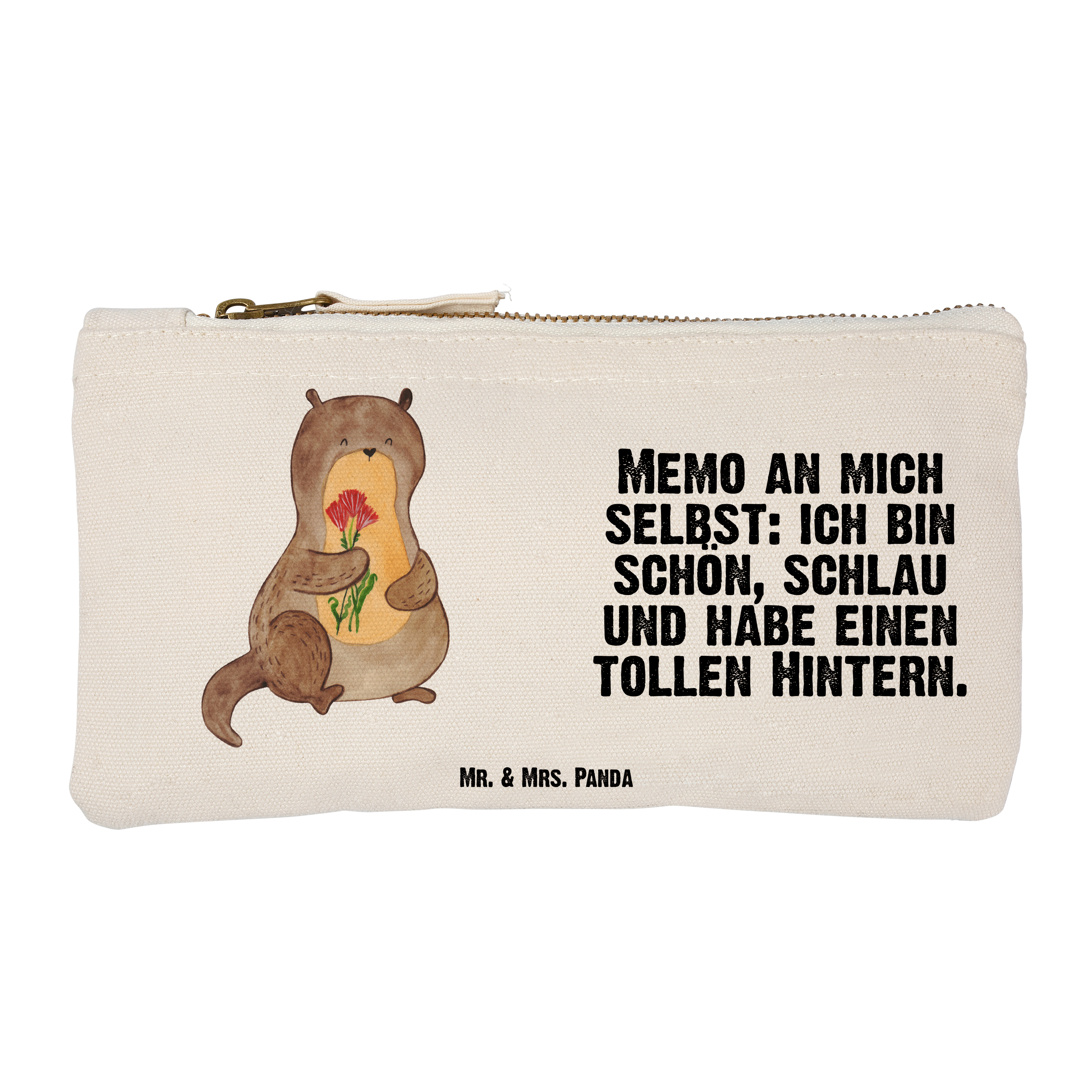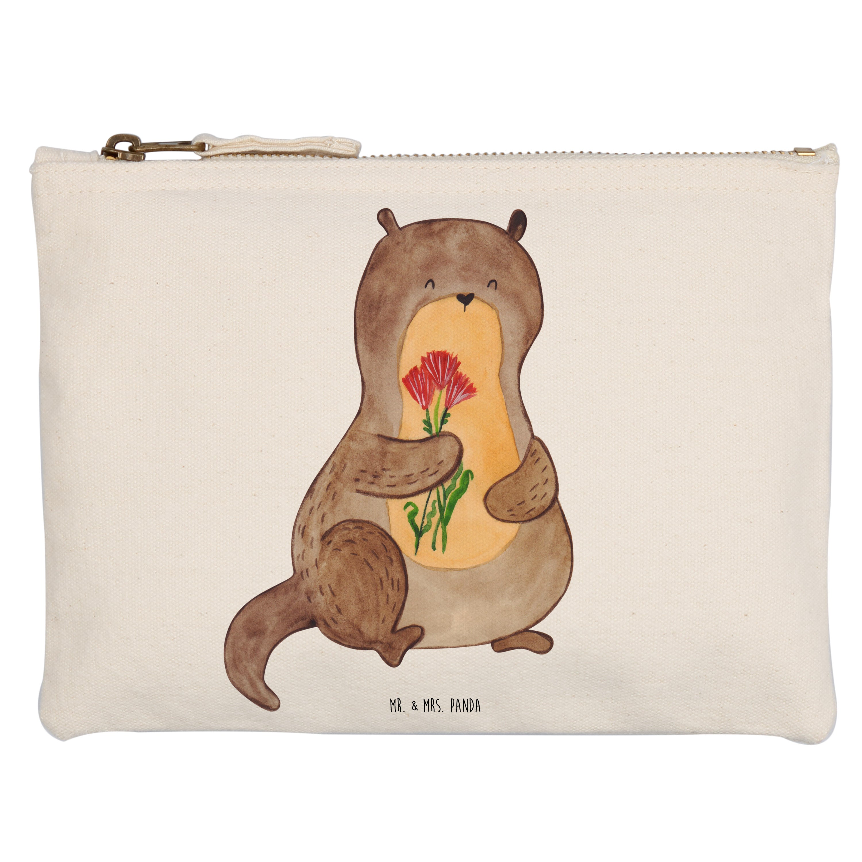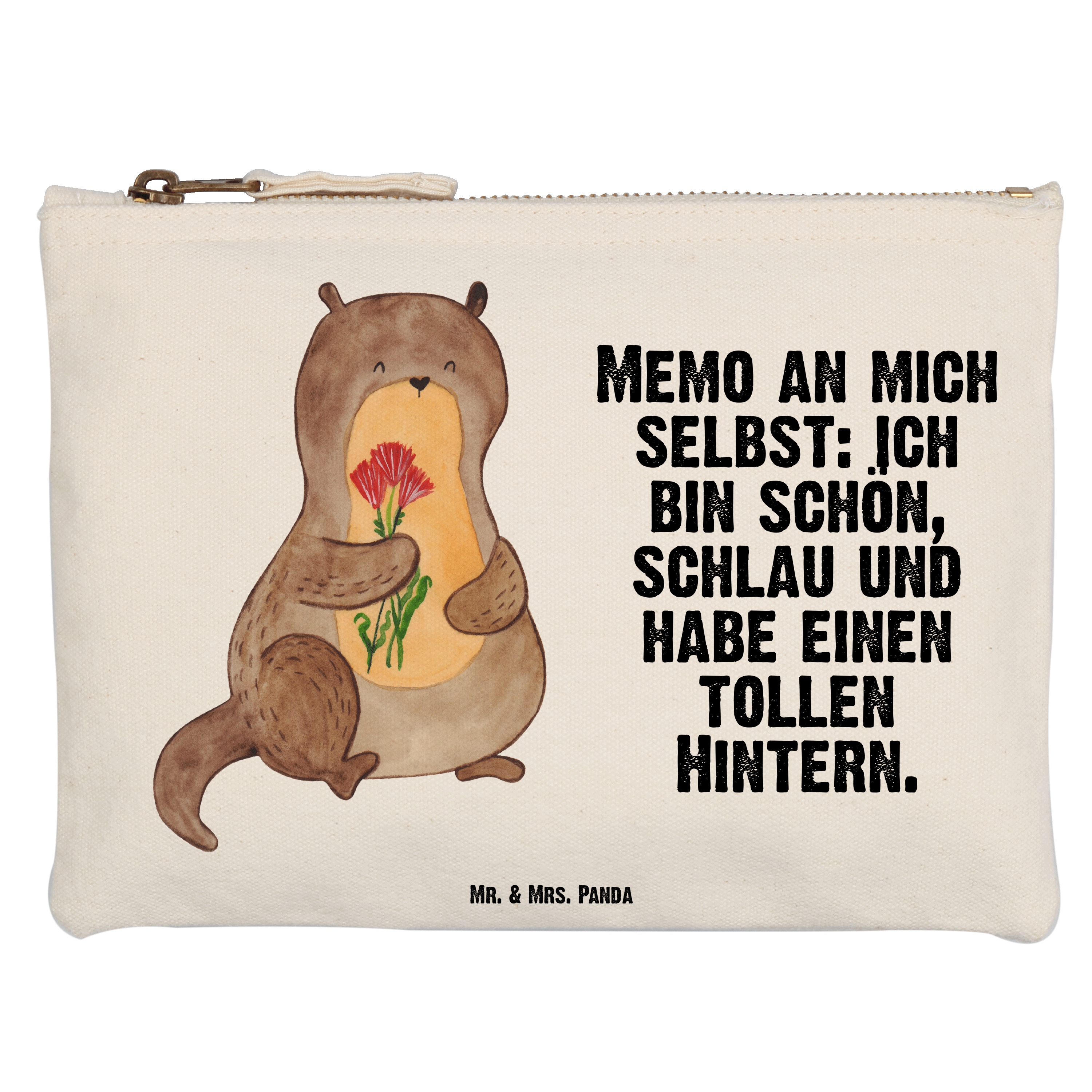 Schminktasche Otter Blumenstrauß - Grösse XL Große - mit Spruch - Weiß