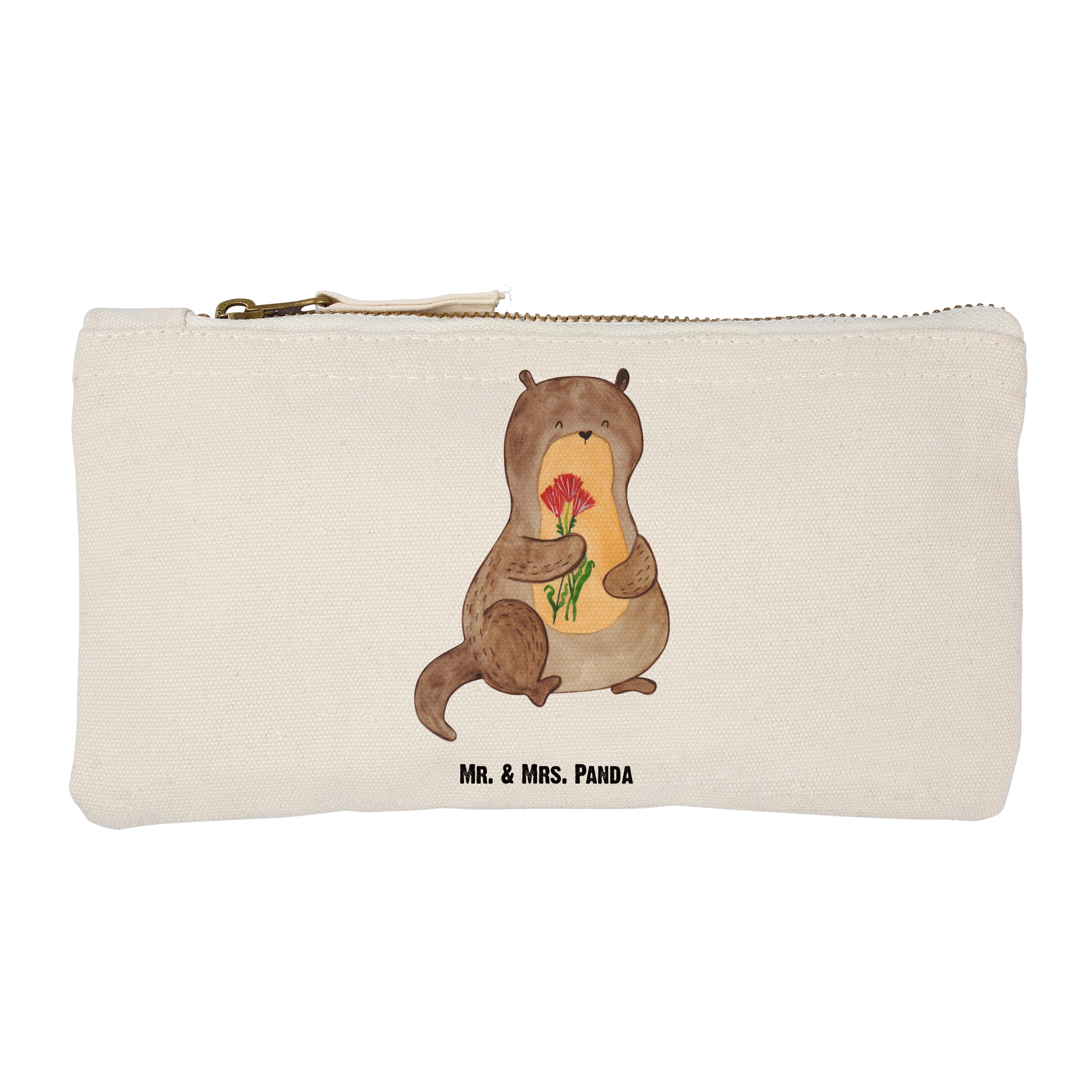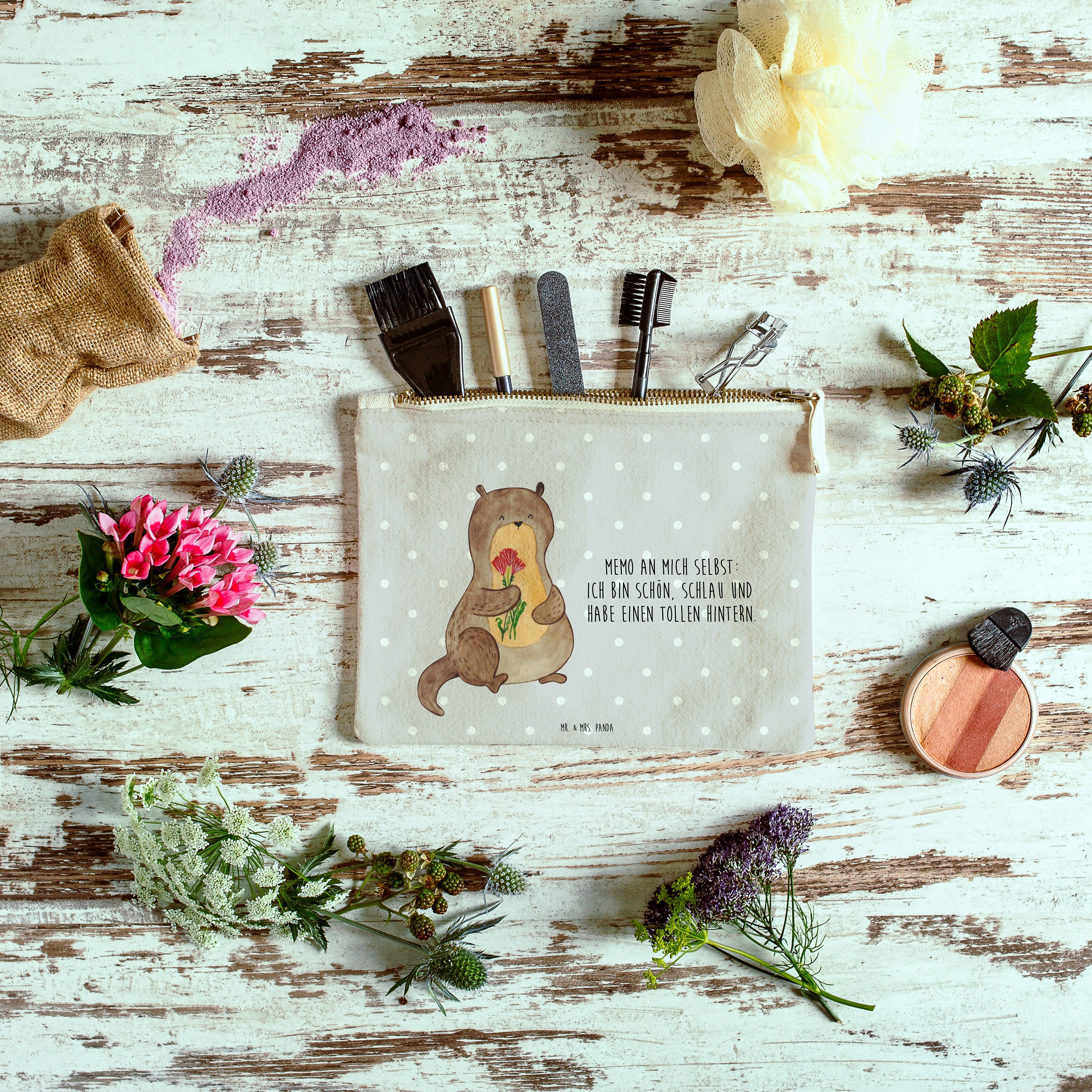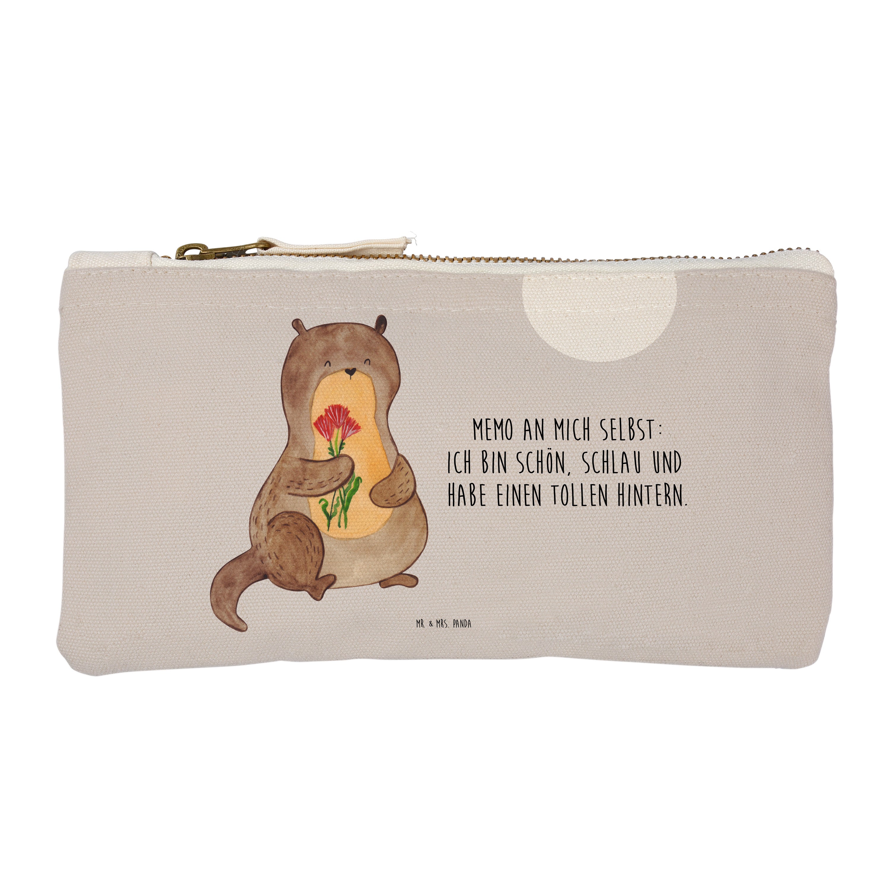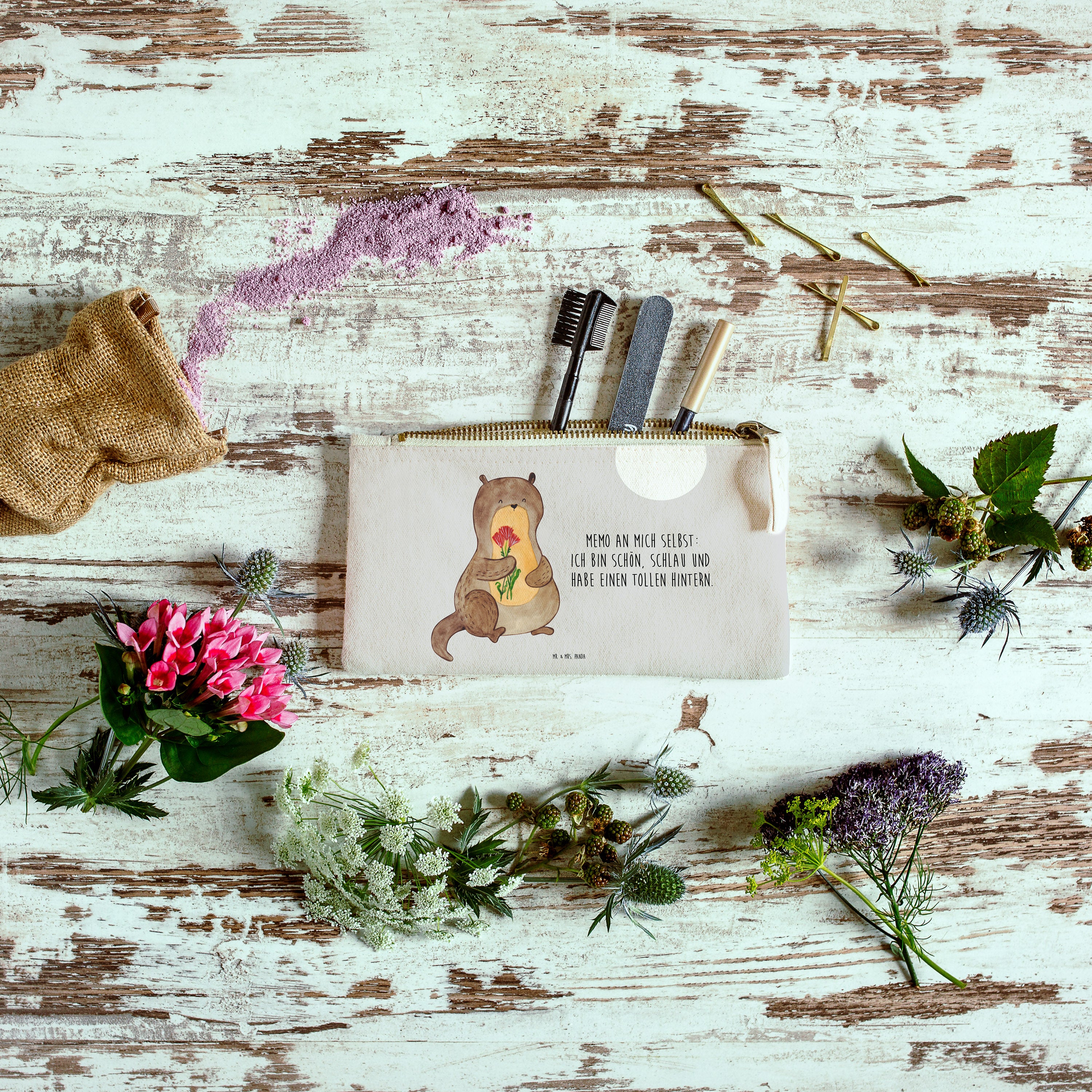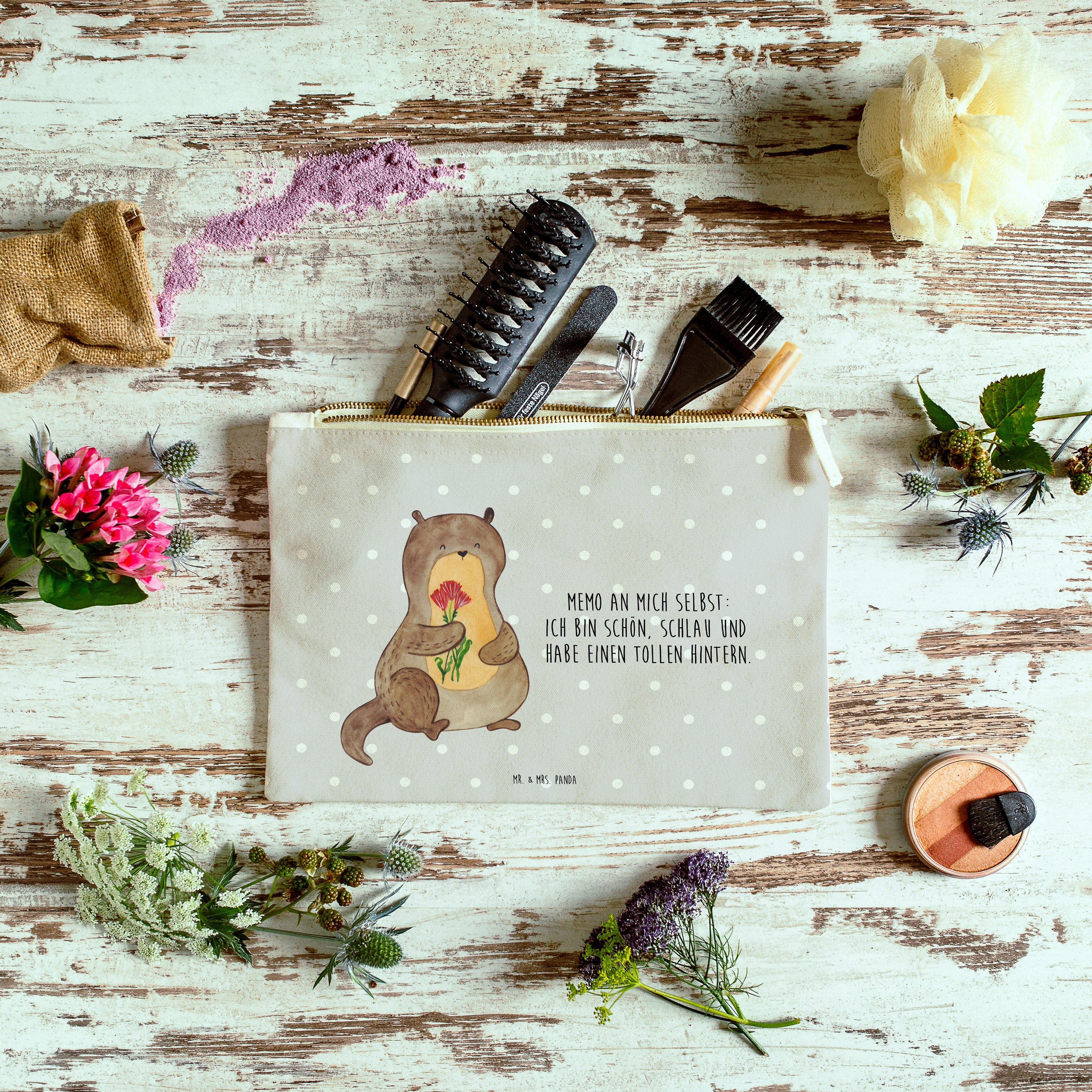 Schminktasche Otter Blumenstrauß - Grösse XL Große - mit Spruch - Weiß