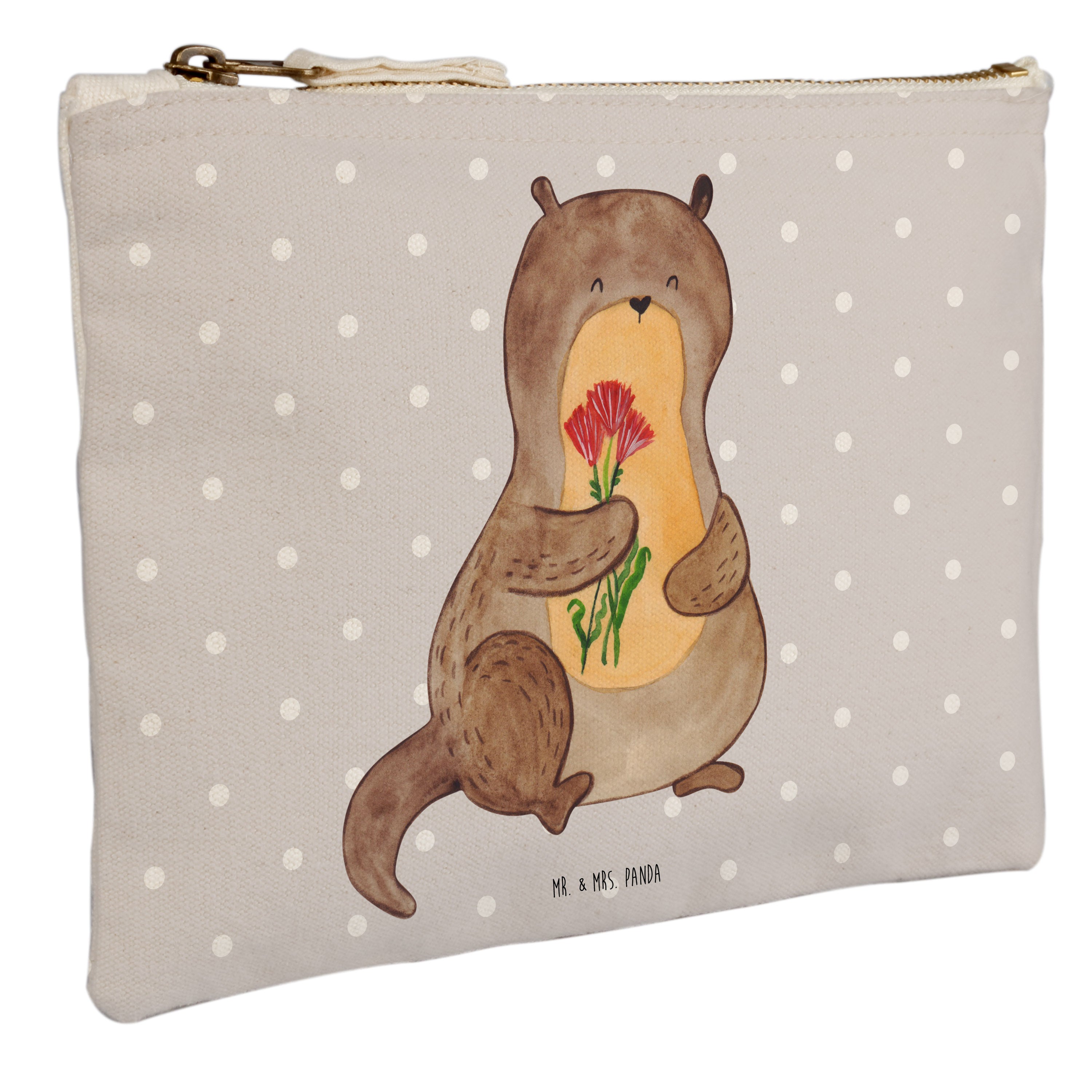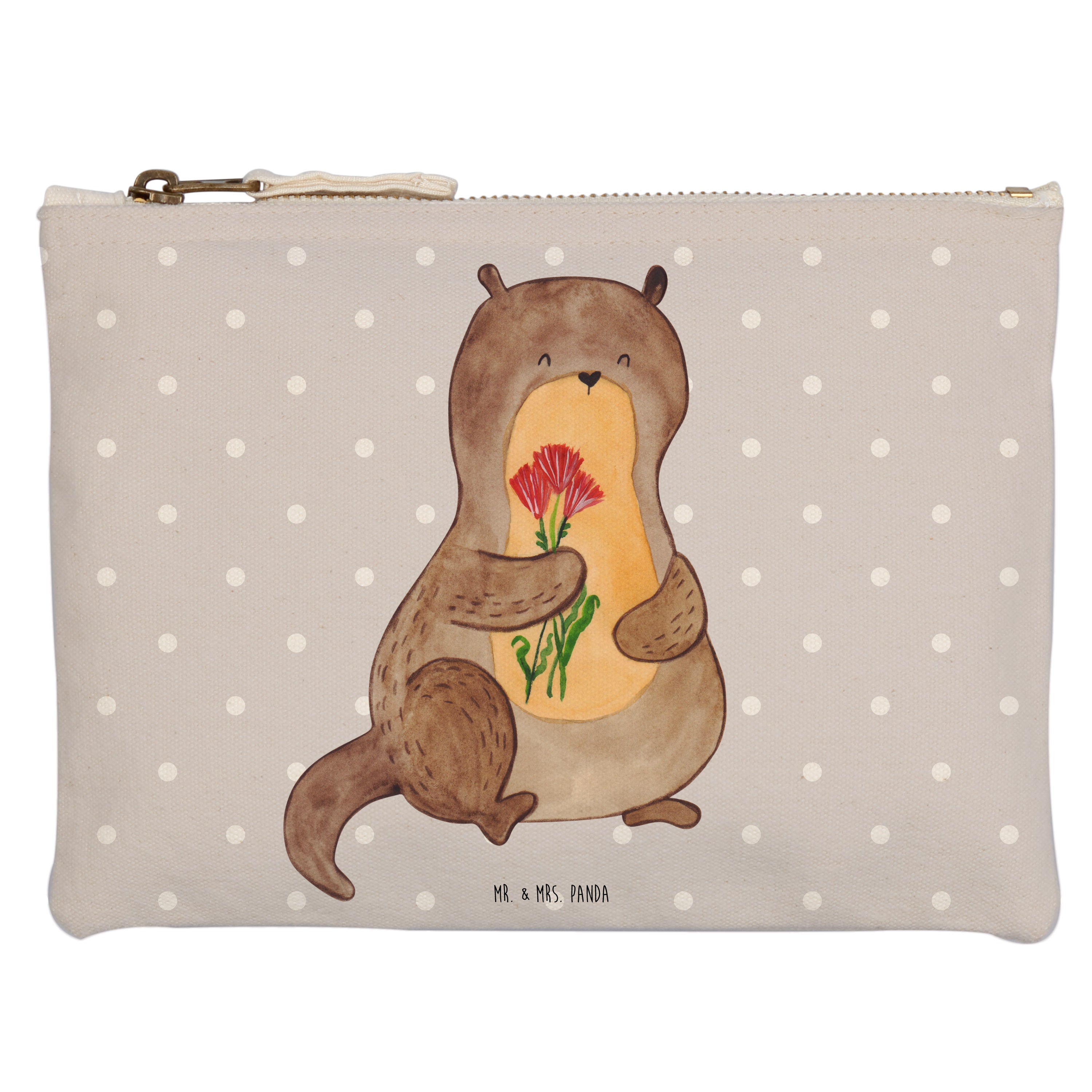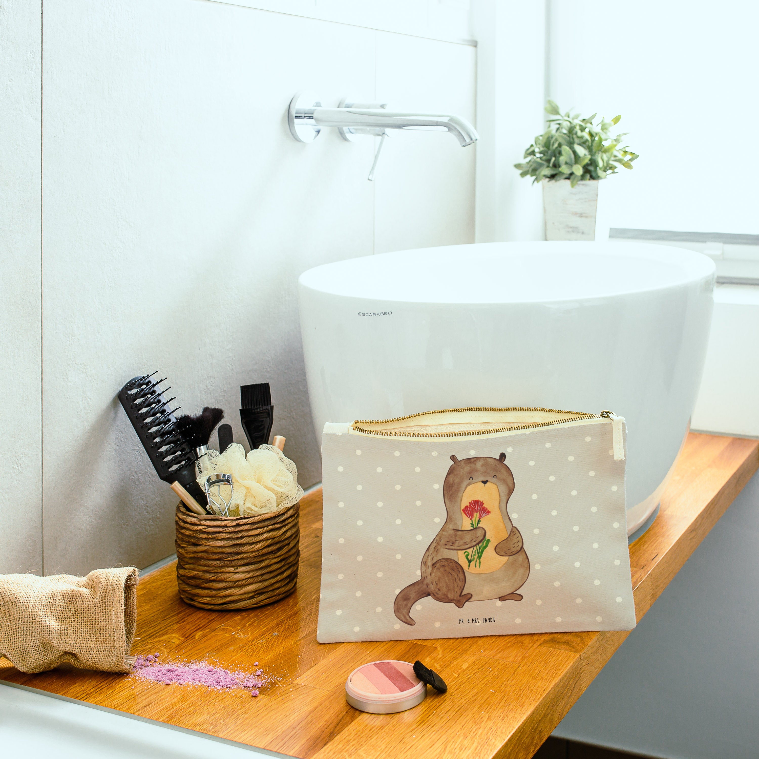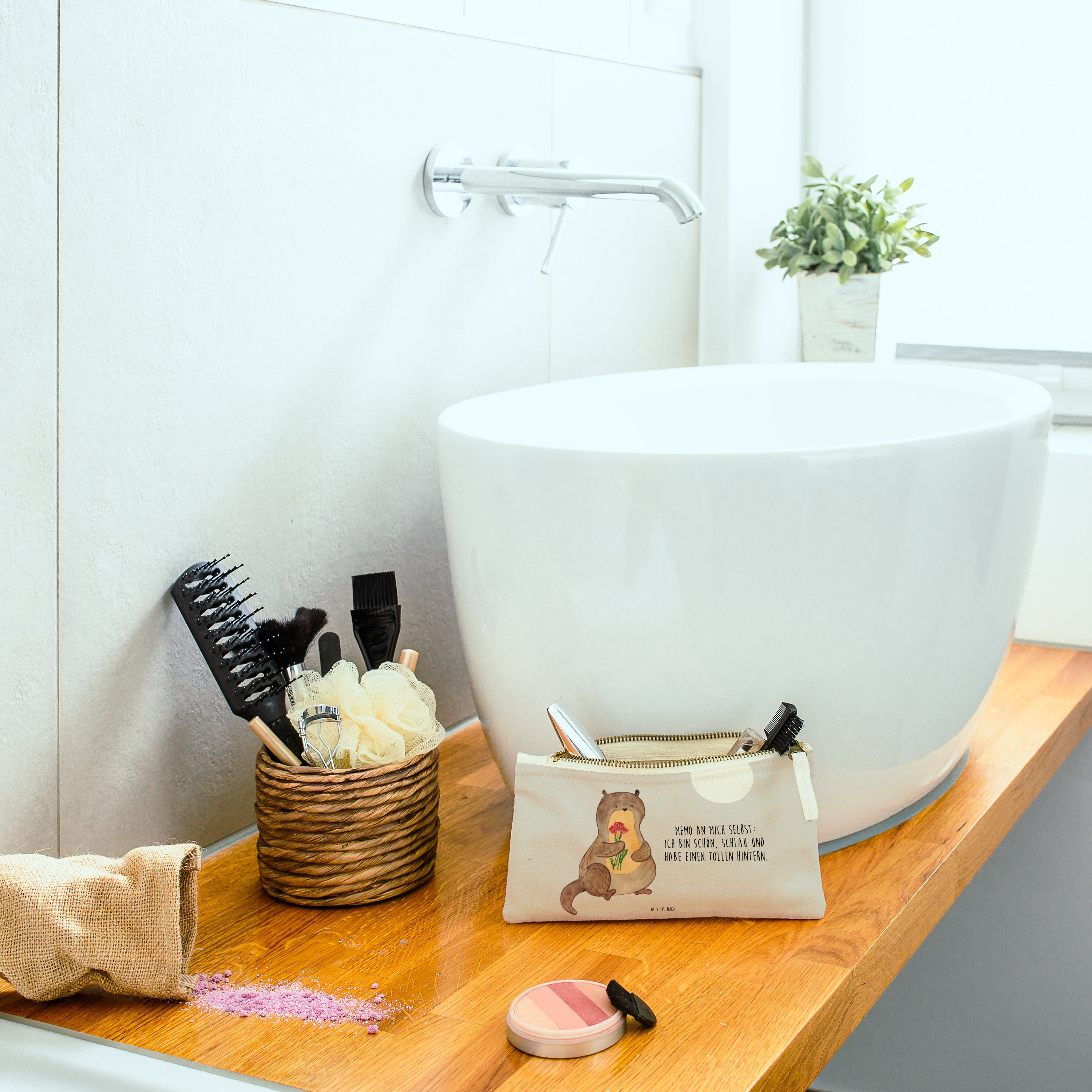 Schminktasche Otter Blumenstrauß - Grösse XL Große - mit Spruch - Weiß