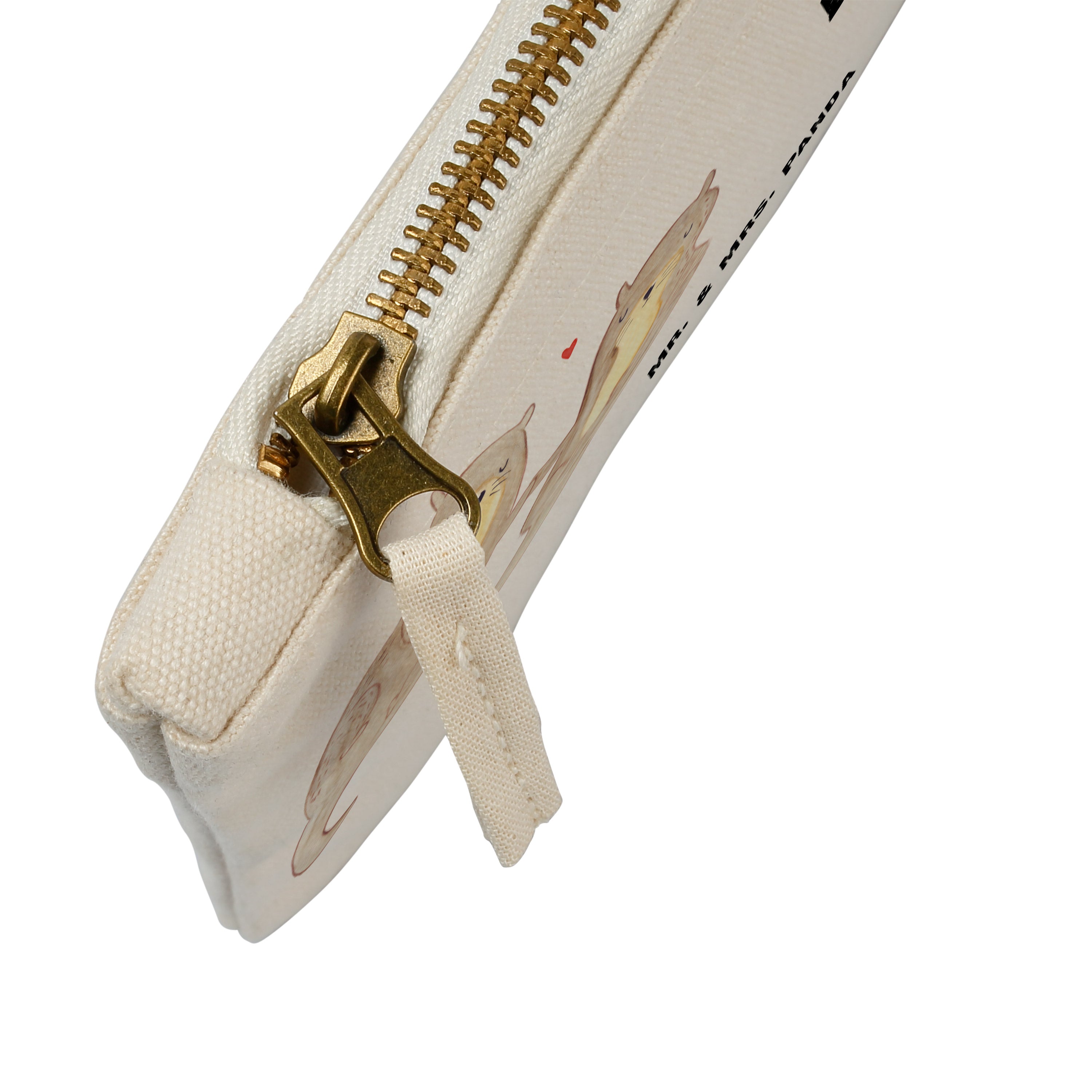 Eine wunderschöne Schminktasche von Mr. & Mrs. Panda mit Reißverschlussfach. Diese Kosmetiktasche oder Kosmetikbeutel ist aus 100% Baumwolle und bedruckt mit unseren wunderschönen handgezeichneten Motiven. Hol dir dieses einzigartige Etui direkt nach Hause - du kannst die Tasche auch perfekt als Stiftemäppchen, Federmappe, Schlamper oder Etui verwenden.