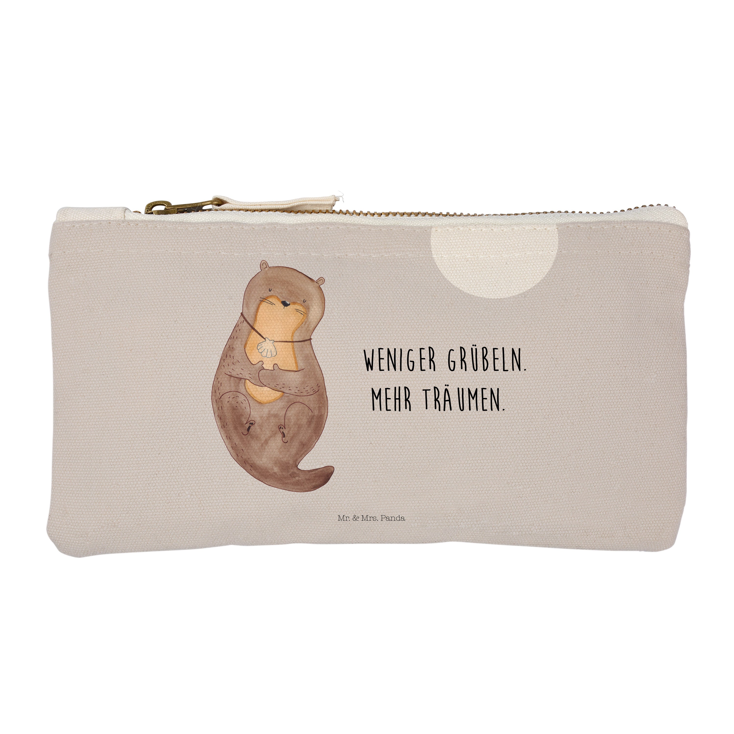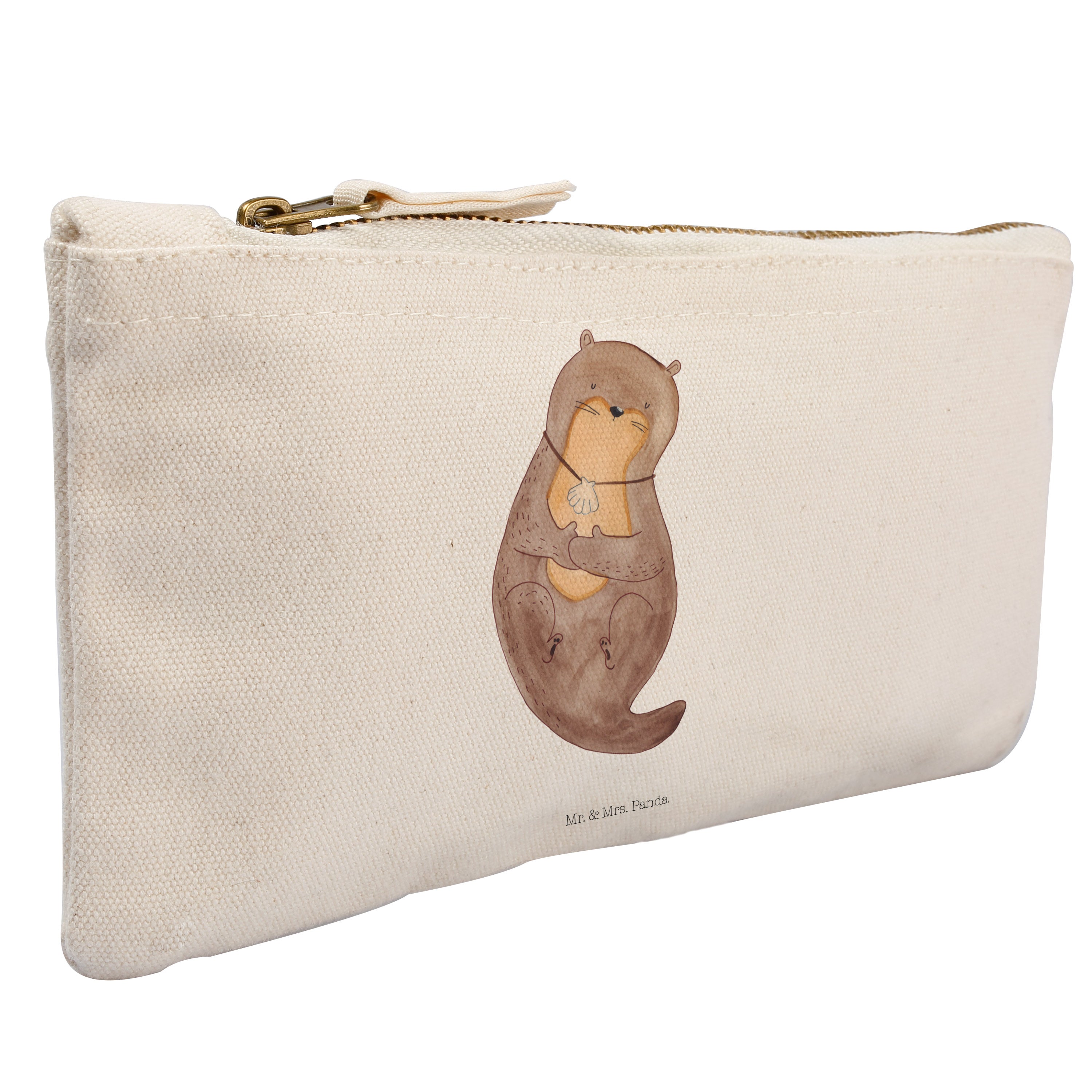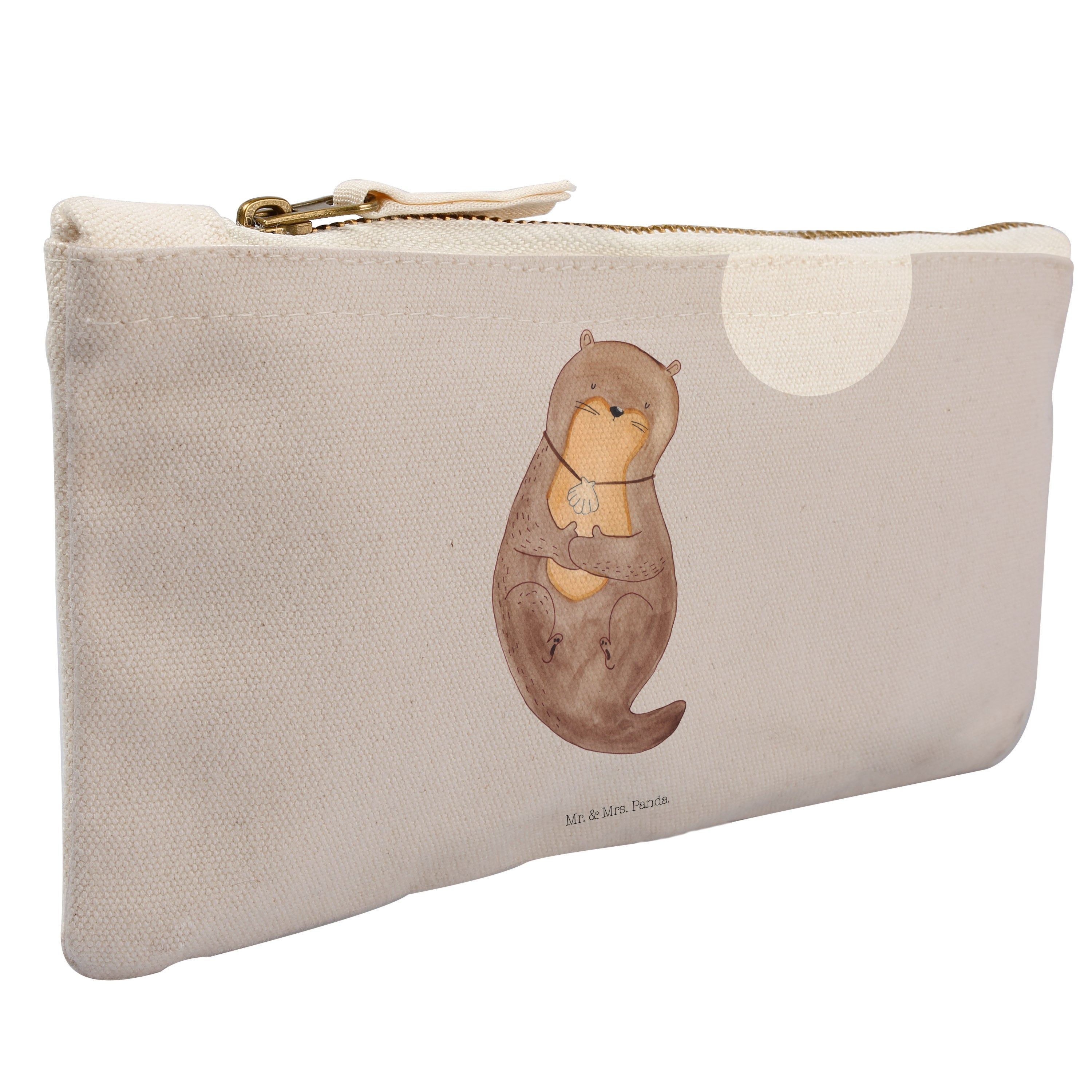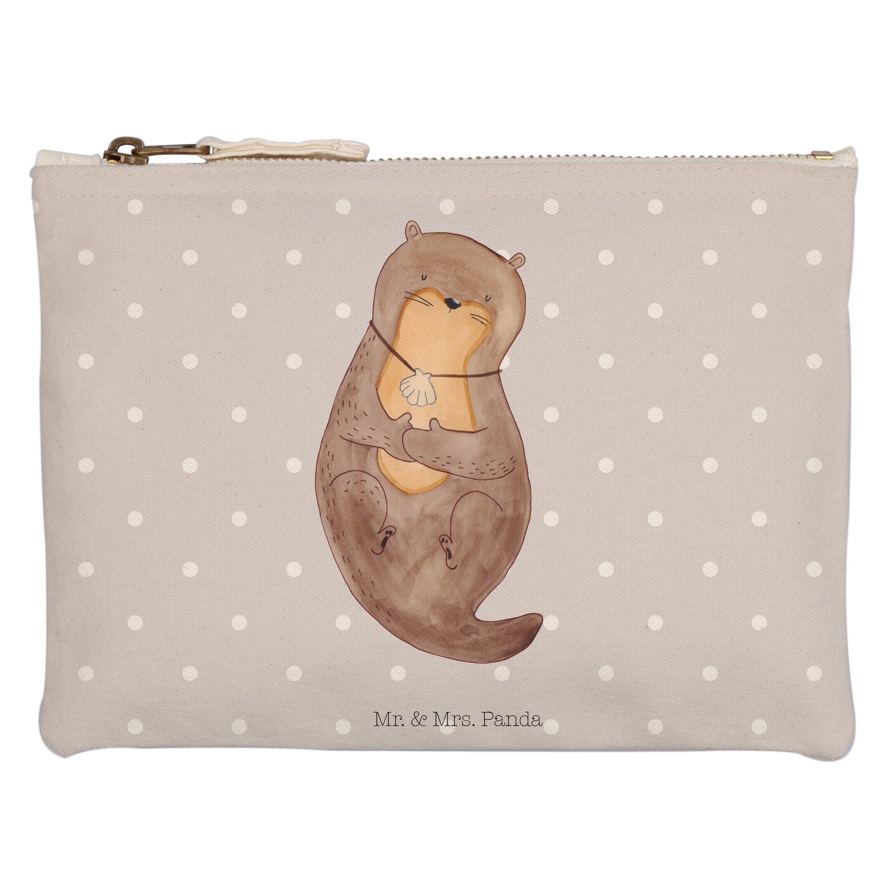 Schminktasche Otter mit Muschelmedaillon - L Schminktasche - Ohne Text Quer INT - Grau