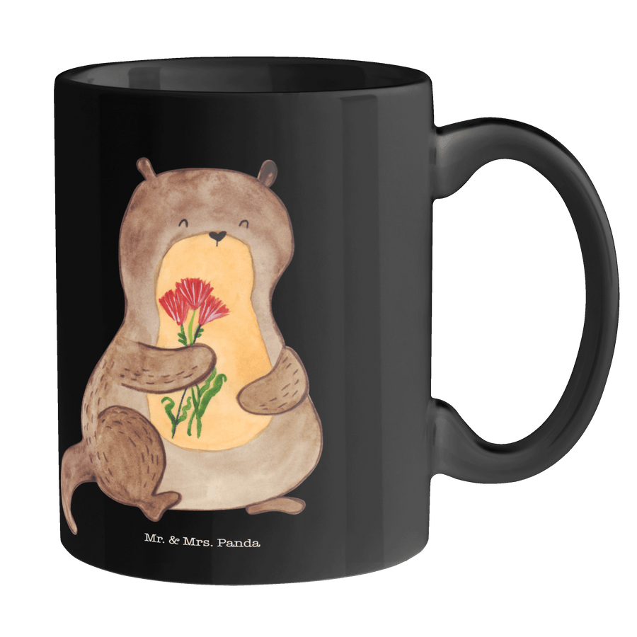 Tasse Otter Blumenstrauß - ohne Spruch - Schwarz