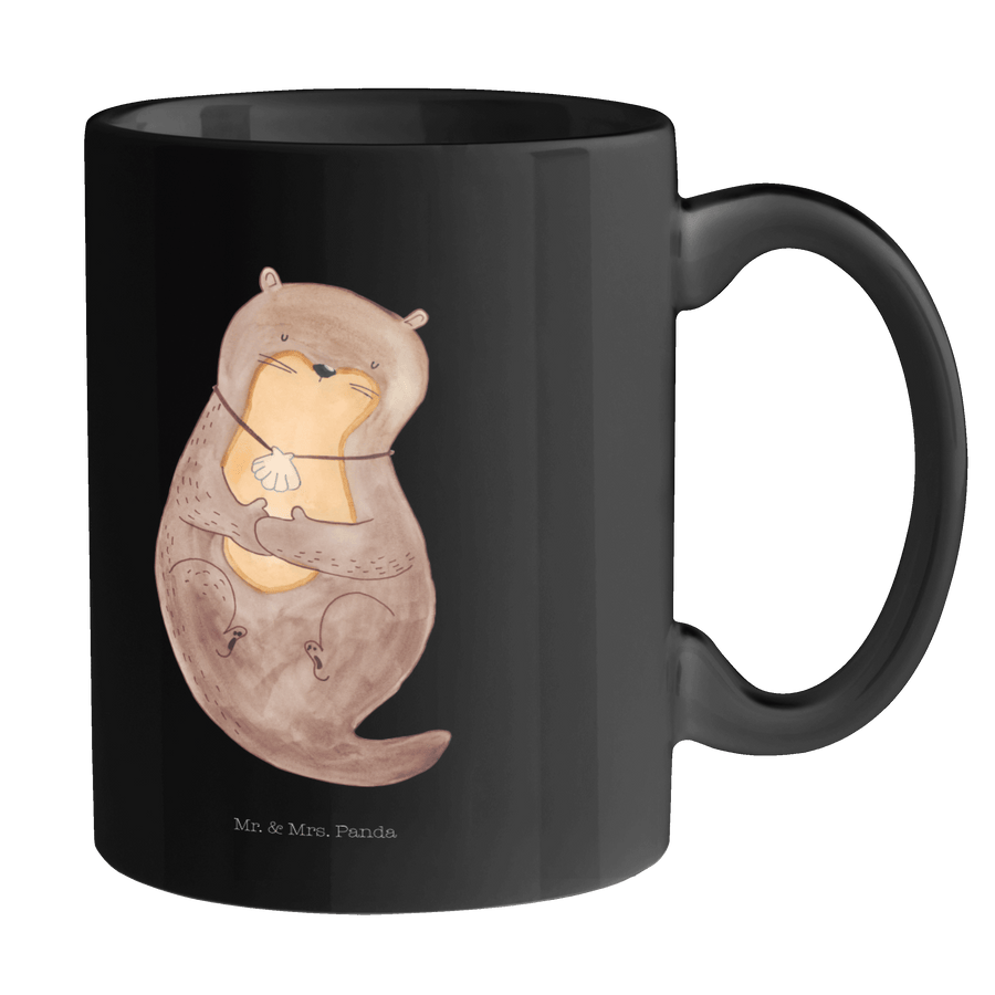 Tasse Otter mit Muschelmedaillon - ohne Spruch - Schwarz
