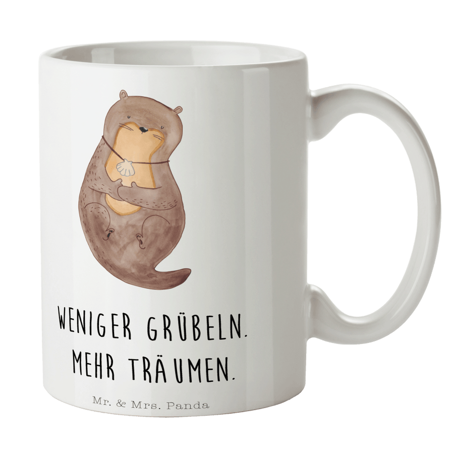Tasse Otter mit Muschelmedaillon - mit Spruch - Weiß