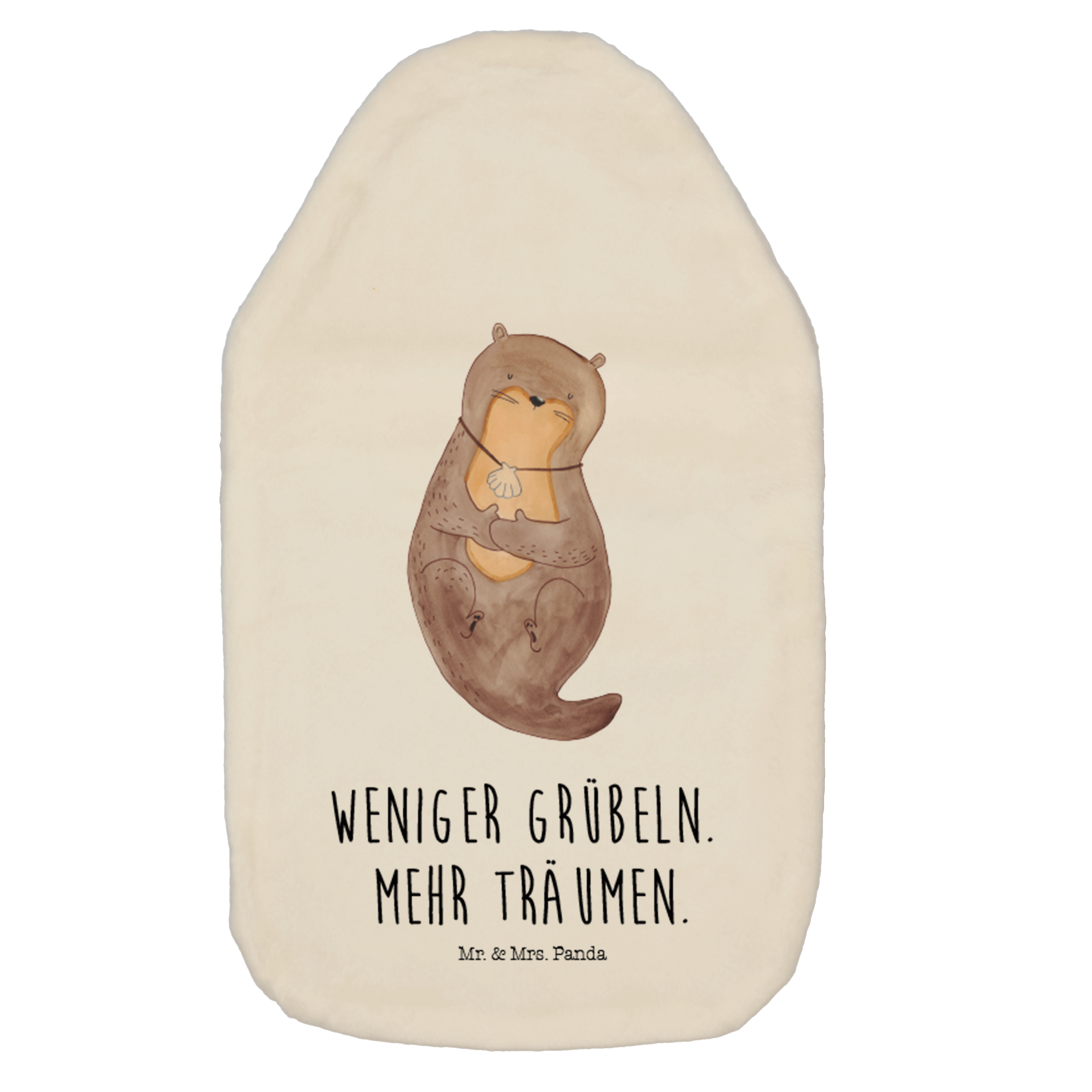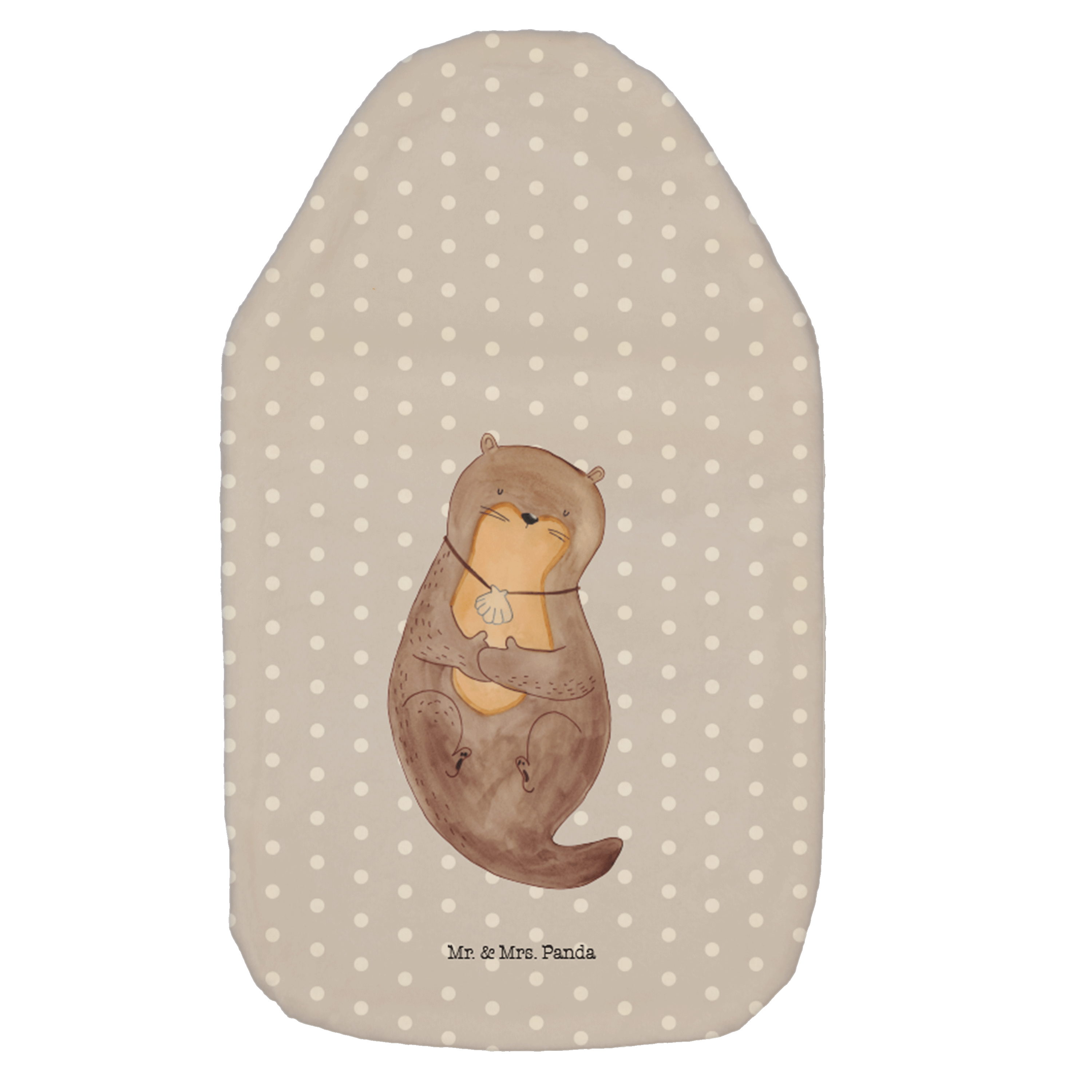 Wärmflasche Otter mit Muschelmedaillon - mit Spruch - Grau Pastell
