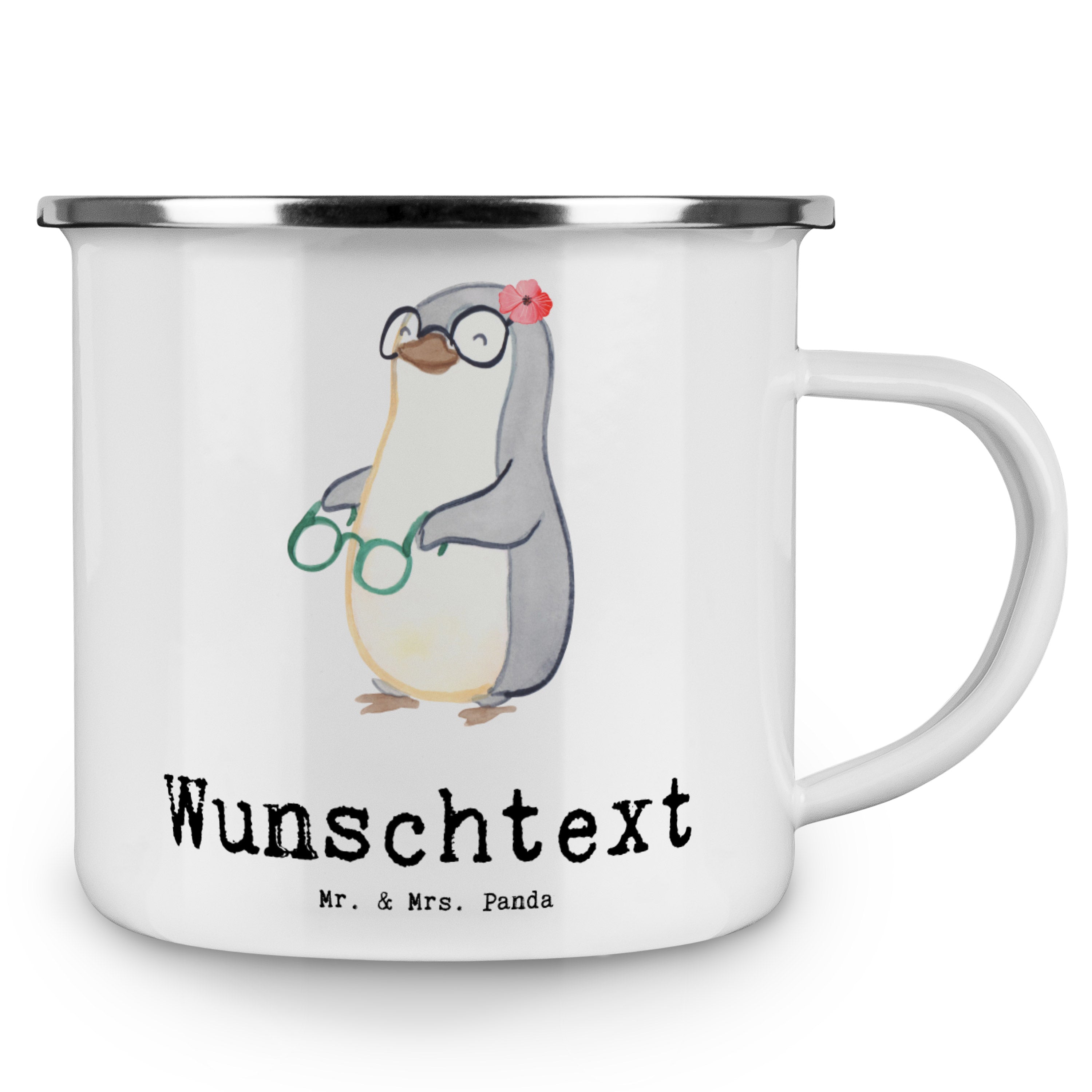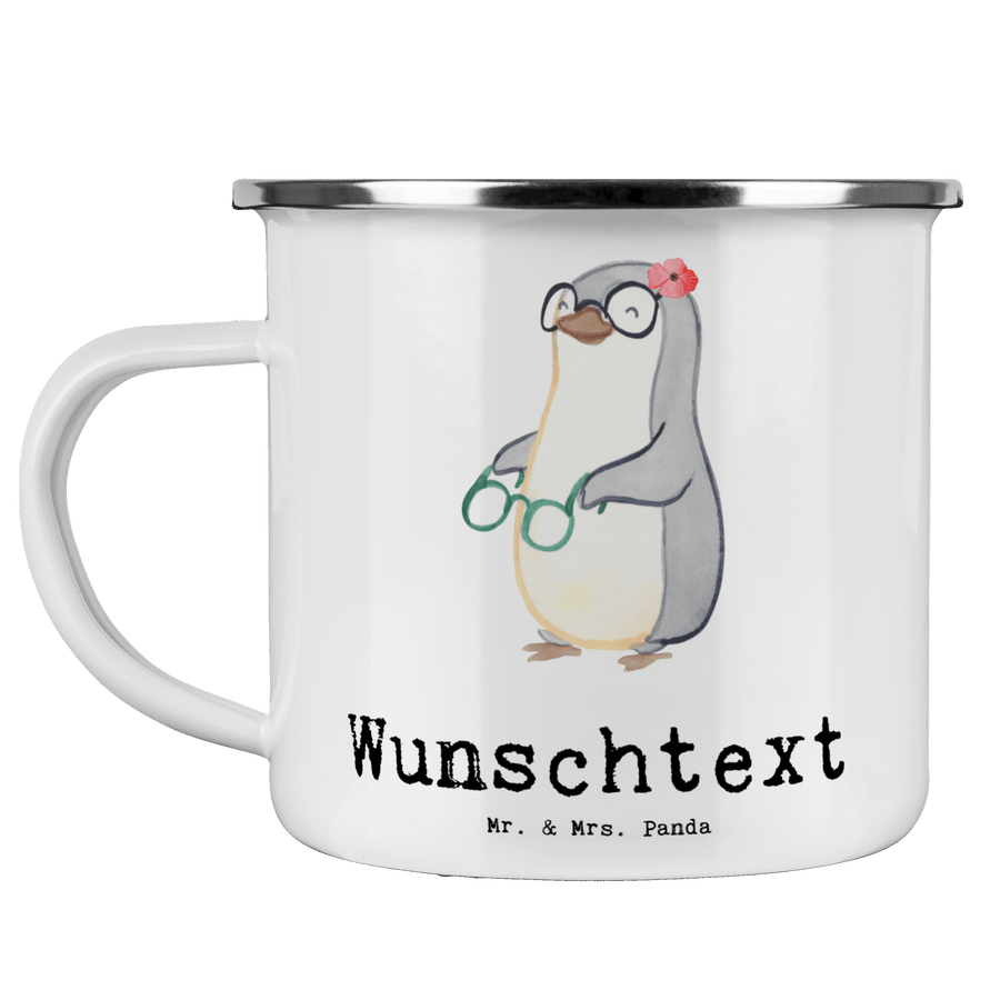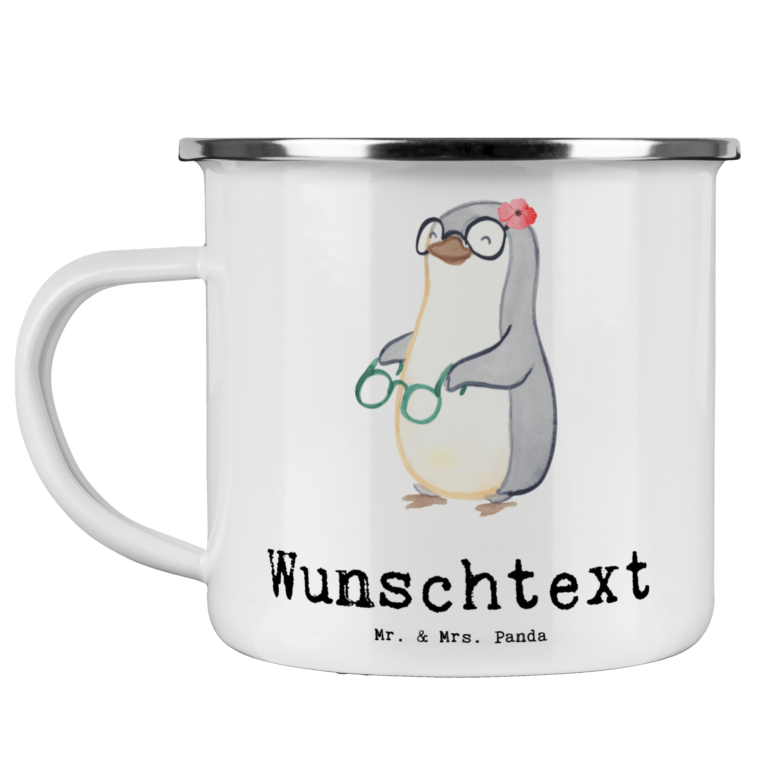 Personalisierte Emaille Tasse Augenoptikerin mit Herz