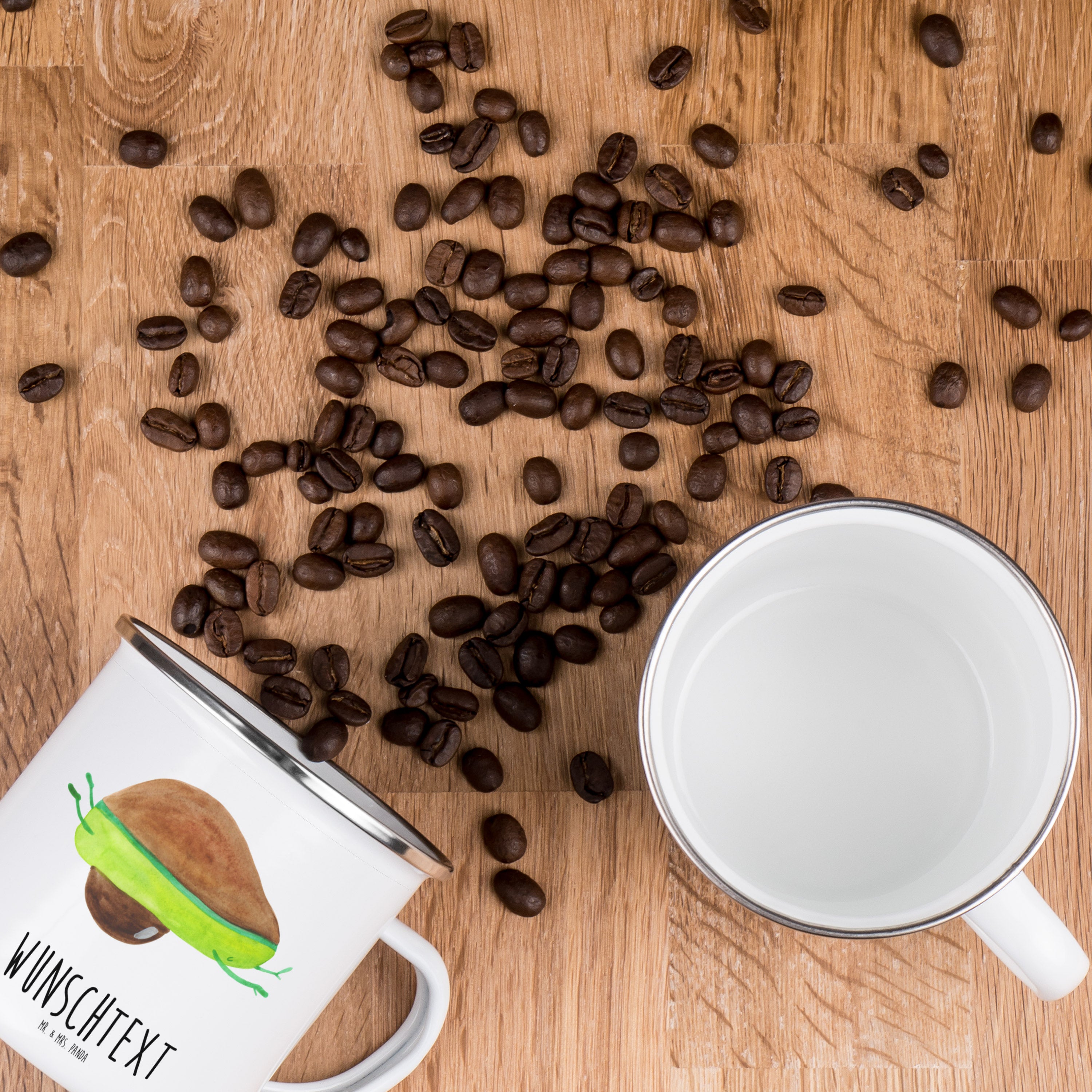 Die Tassen freuen sich über eine liebevolle Handwäsche, und sind, wie jedes Emaillegeschirr, nicht spülmaschinenfest. Für den genüsslichen Kaffee am Morgen ist diese Blechtasse ein echter Hingucker.