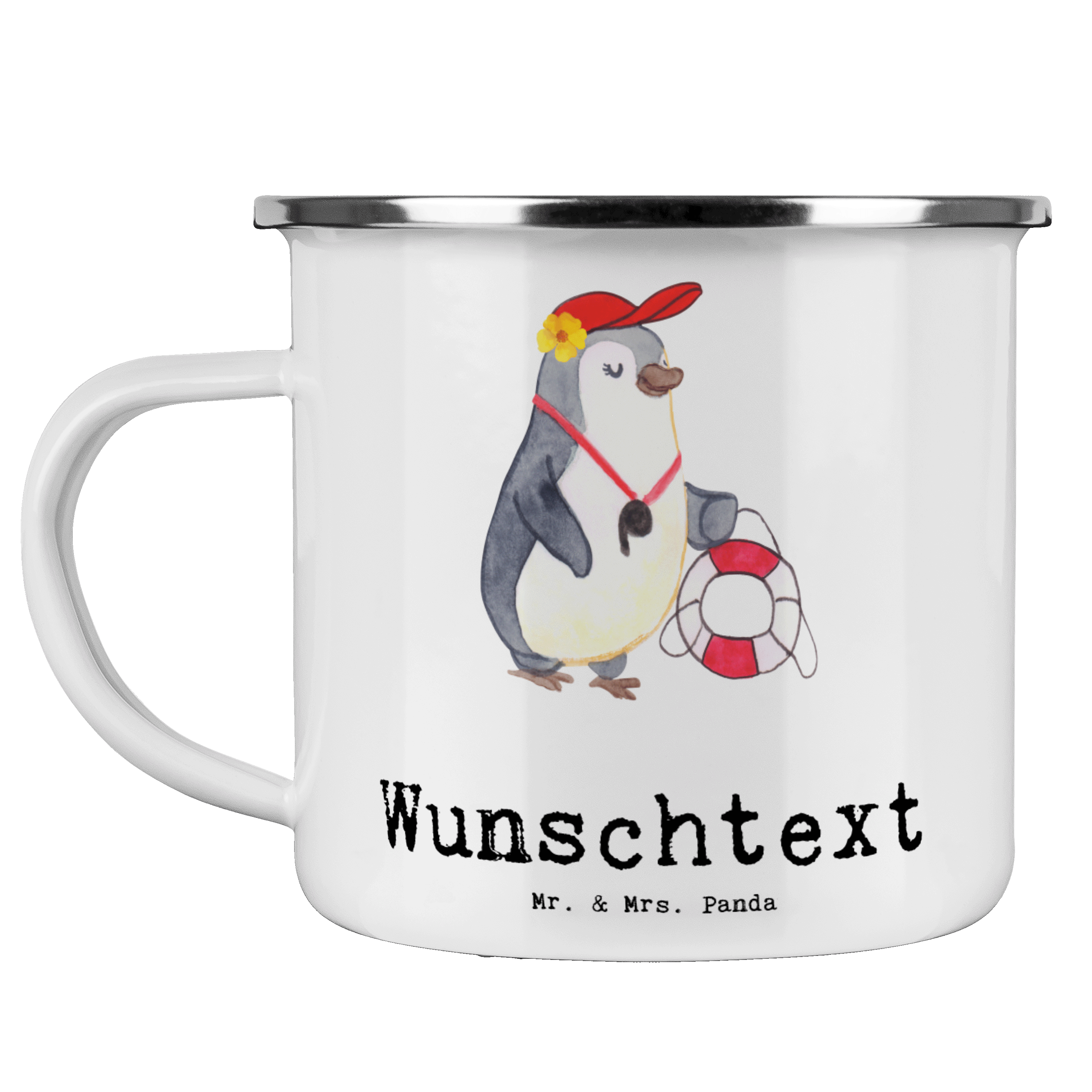 Personalisierte Emaille Tasse Bademeisterin mit Herz