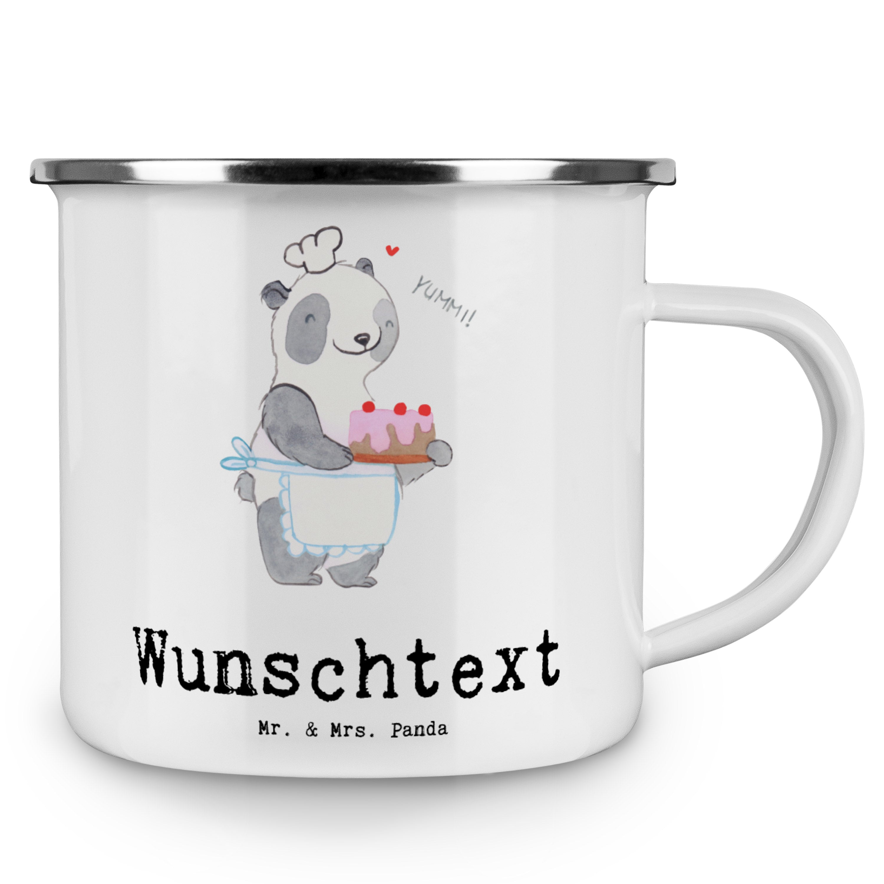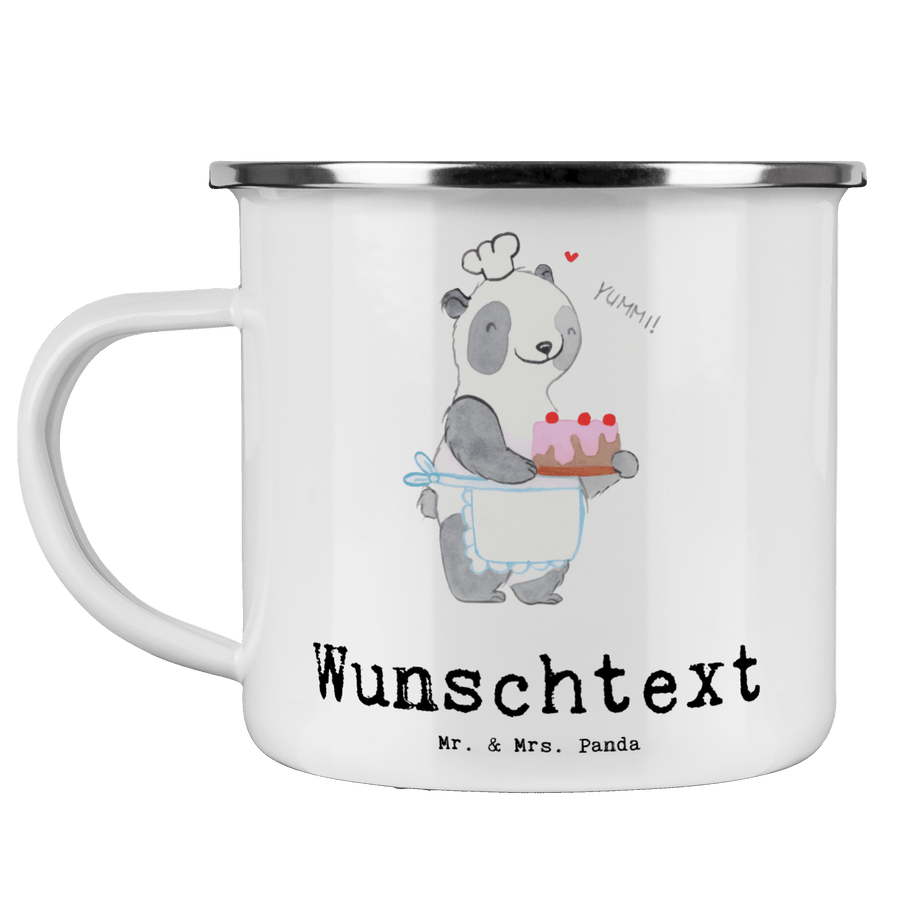 Diese wunderschöne personalisierte Emailletasse von Mr. & Mrs. Panda mit abgesetztem Edelstahl Rand in Emaille Optik ist der perfekte, bruchsichere Begleiter für dein nächstes Abenteuer. Sie wird von uns liebevoll mit deinem Namen oder Wunschnamen bedruckt. Das Füllvolumen des Bechers beträgt 300 ml. So sind die Motivtassen ideal beim Camping als Campingbecher einsetzbar.