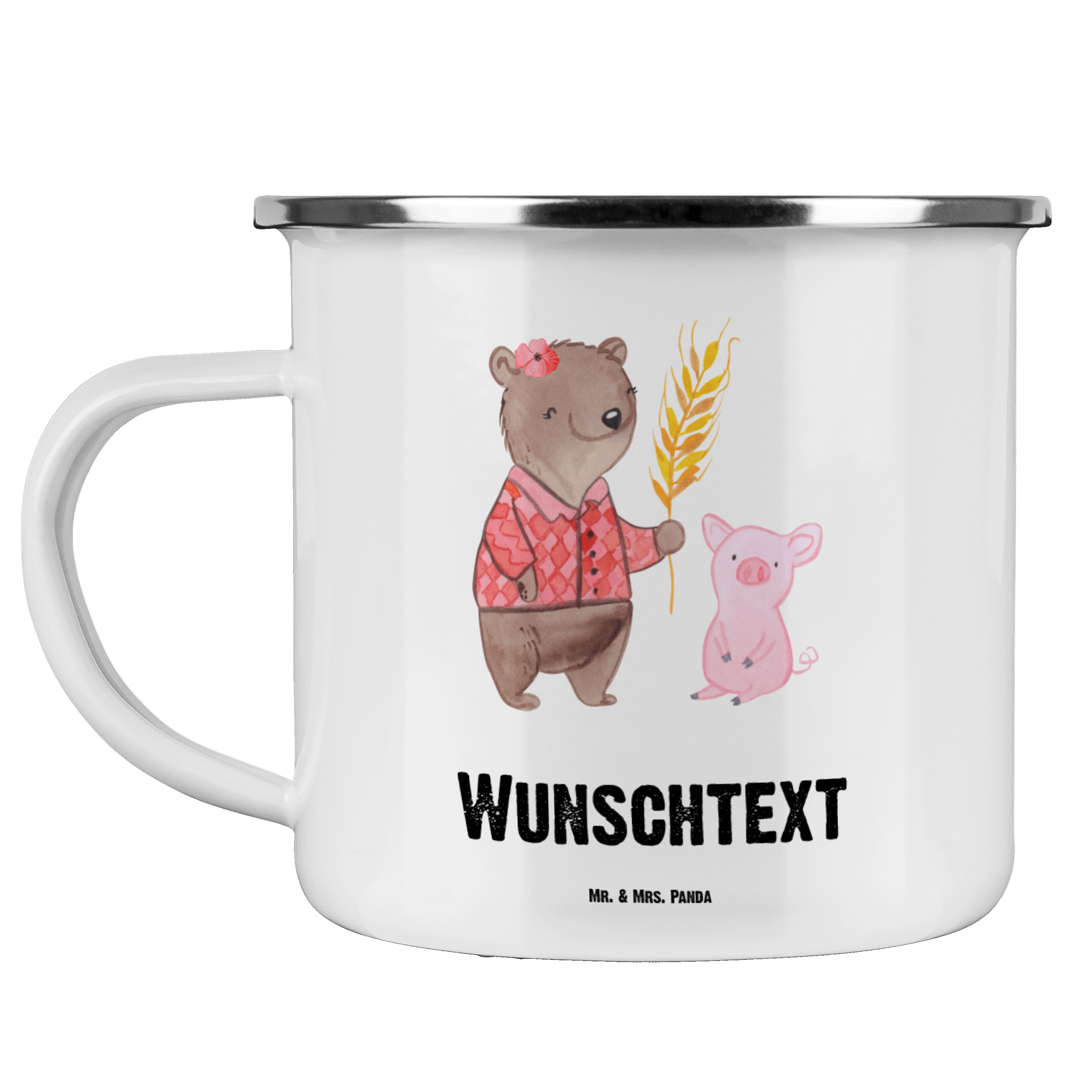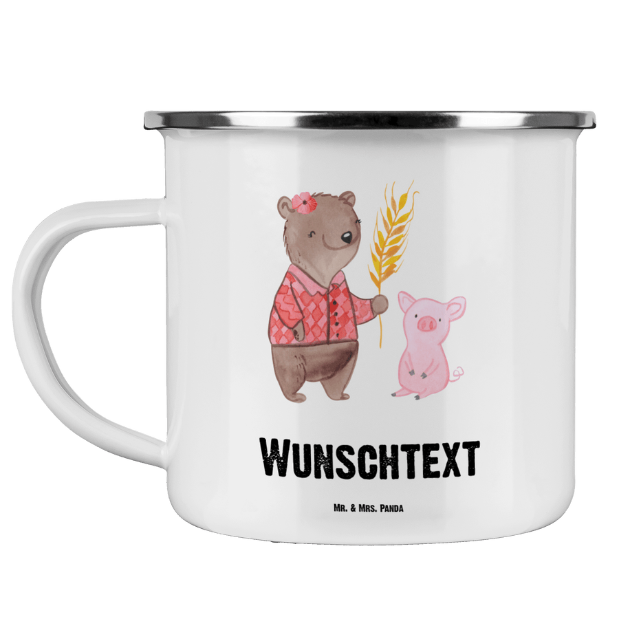 Personalisierte Emaille Tasse Bäuerin mit Herz