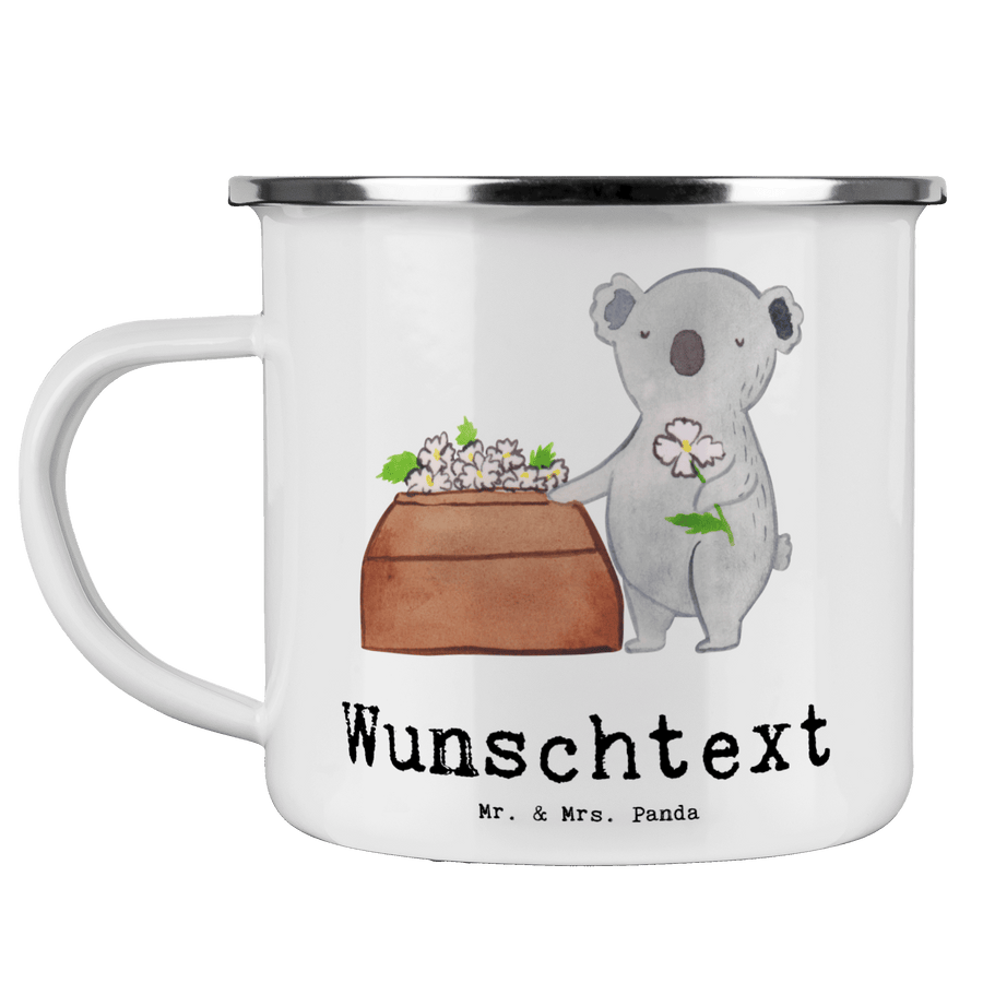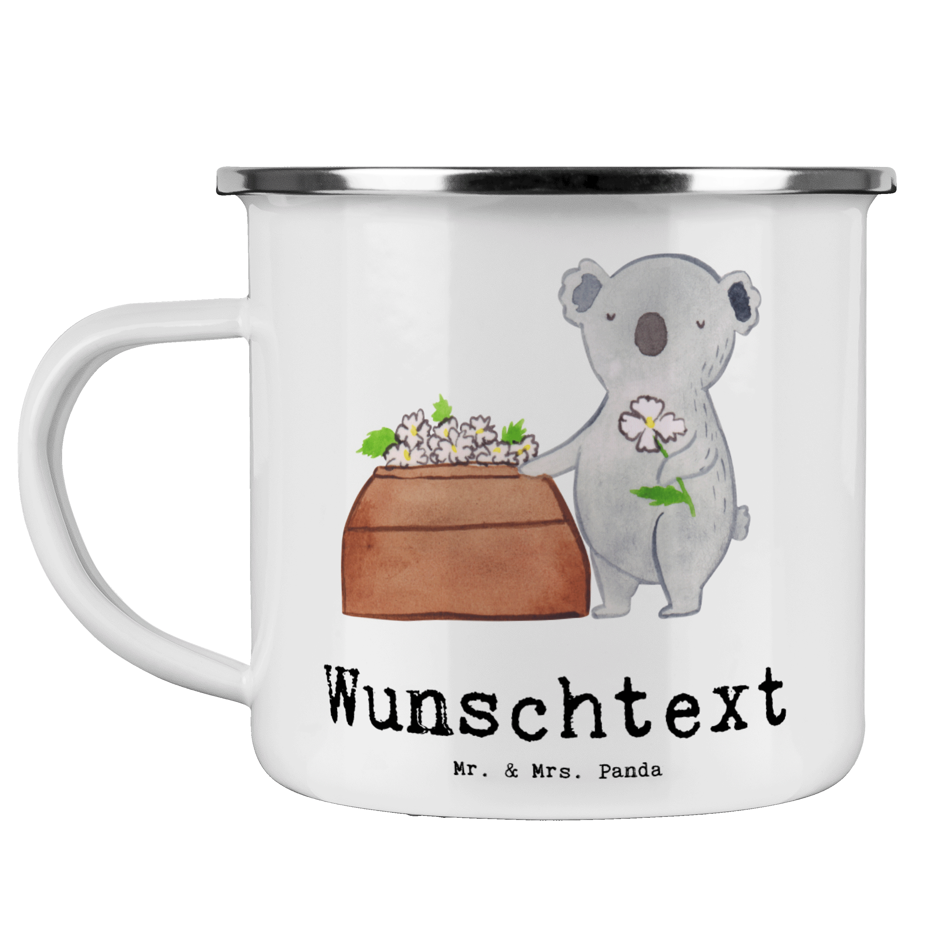 Diese wunderschöne personalisierte Emailletasse von Mr. & Mrs. Panda mit abgesetztem Edelstahl Rand in Emaille Optik ist der perfekte, bruchsichere Begleiter für dein nächstes Abenteuer. Sie wird von uns liebevoll mit deinem Namen oder Wunschnamen bedruckt. Das Füllvolumen des Bechers beträgt 300 ml. So sind die Motivtassen ideal beim Camping als Campingbecher einsetzbar.