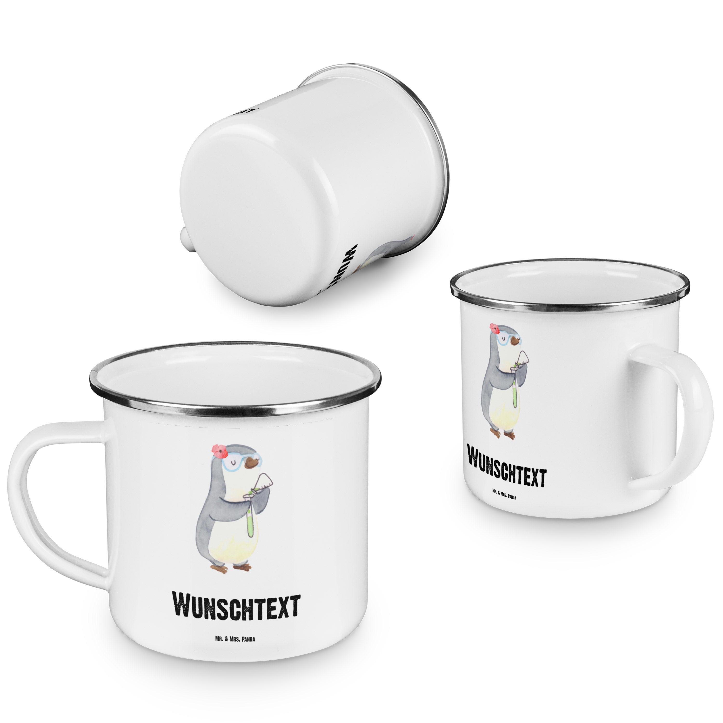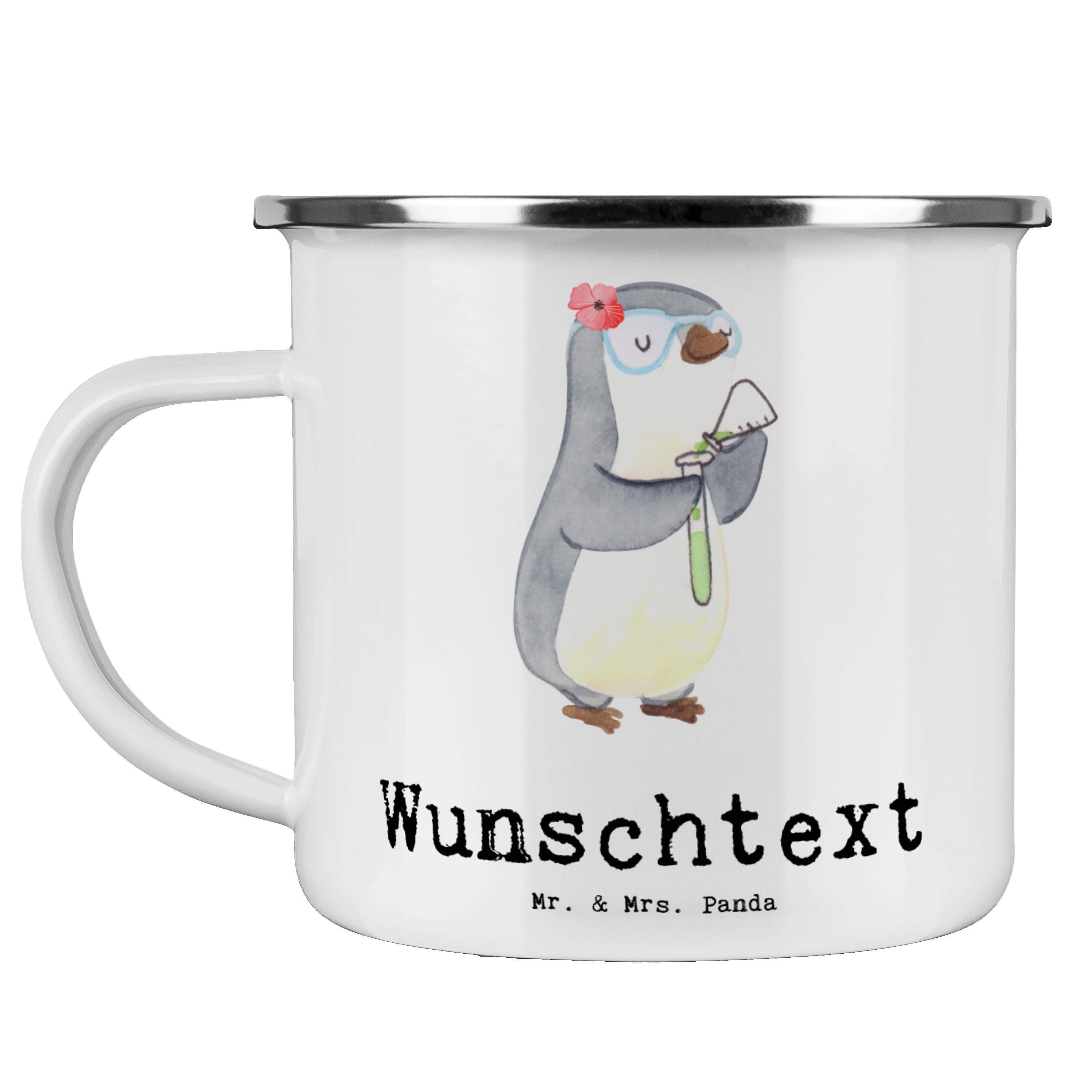 Personalisierte Emaille Tasse Chemielaborantin mit Herz